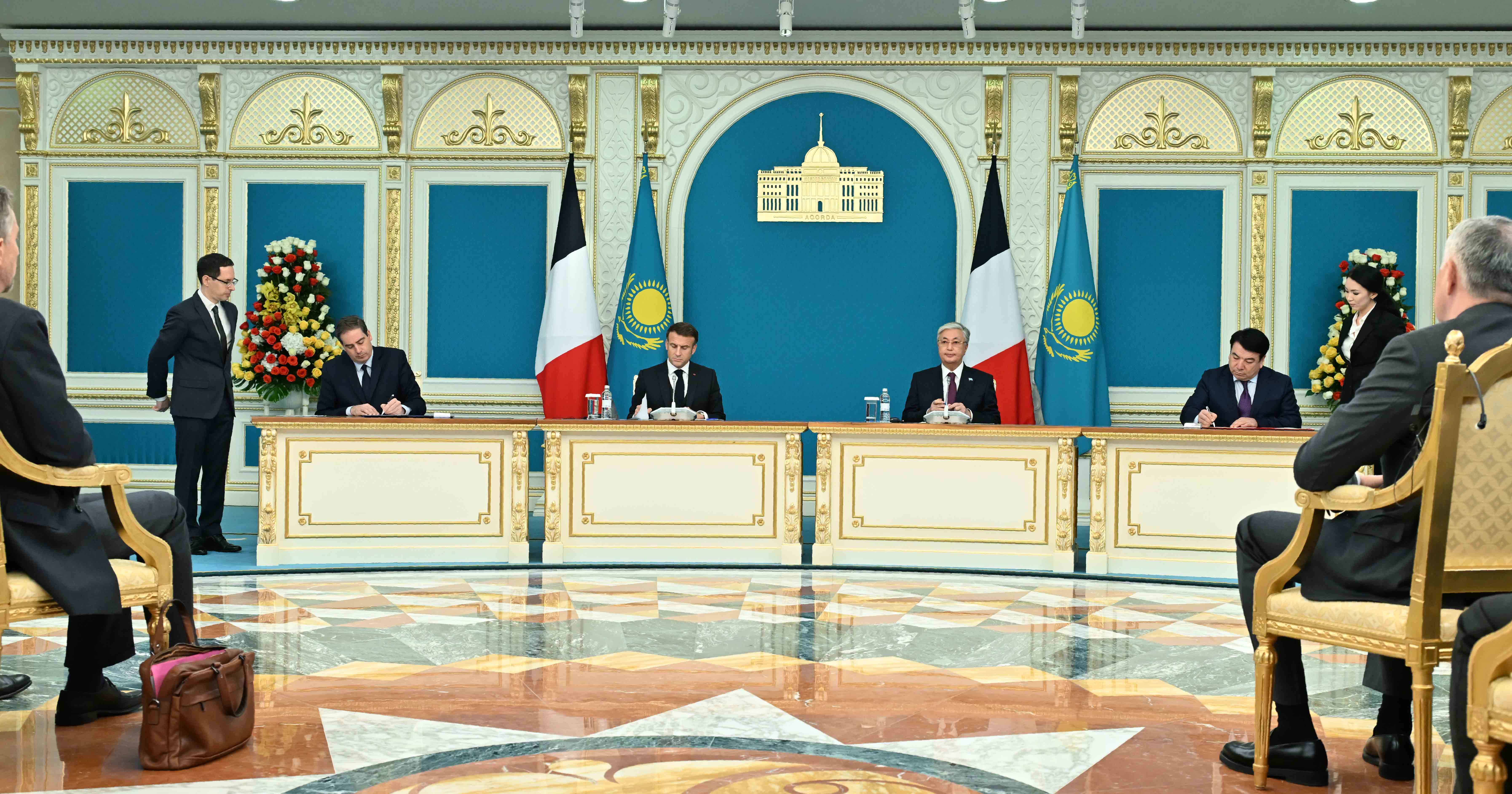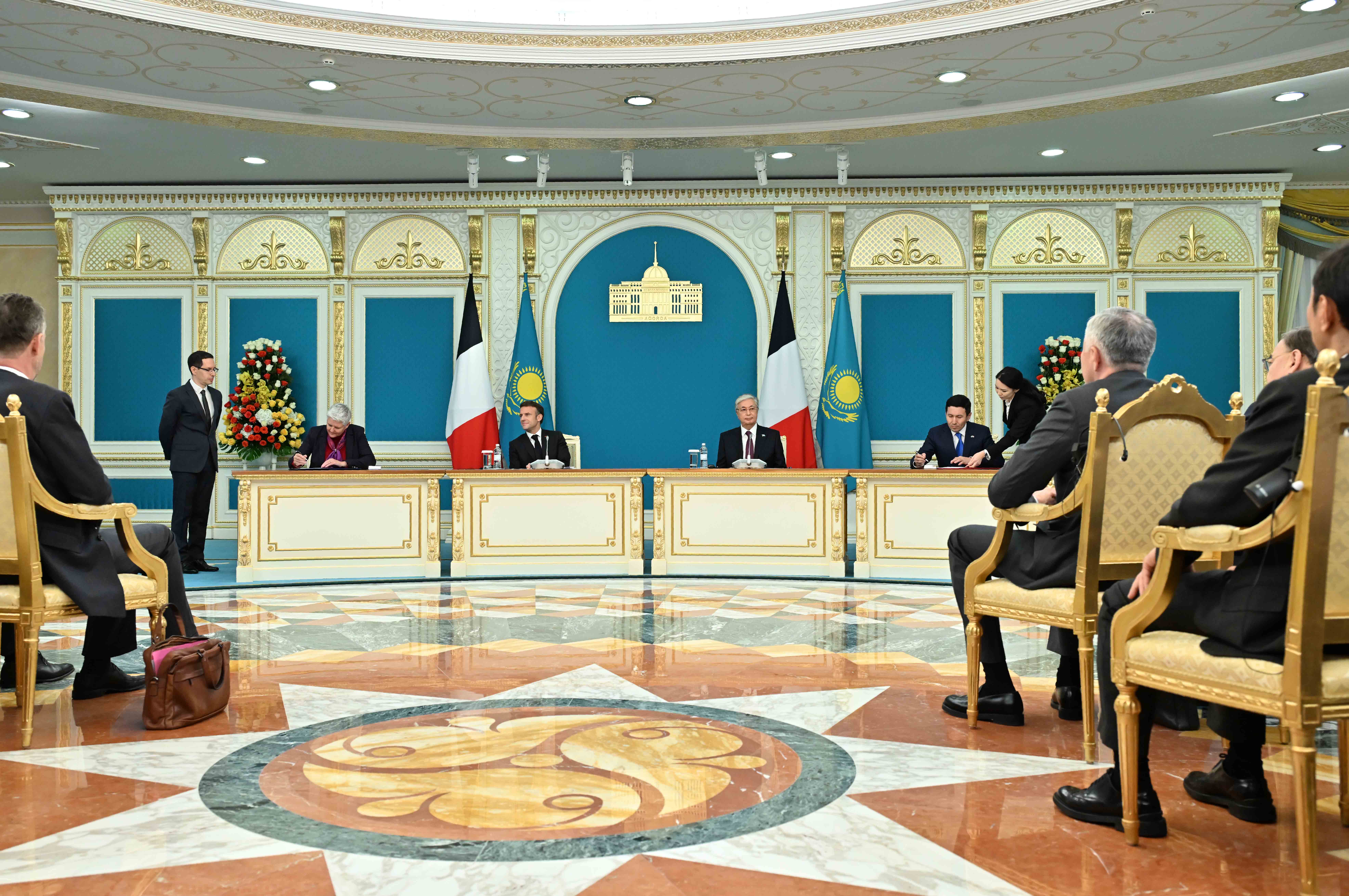 Келіссөздер нәтижесінде Қазақстан мен Франция басшылары Бірлескен мәлімдеме жасады және екі елдің ресми делегация мүшелері мынадай құжаттарға қол қойды: