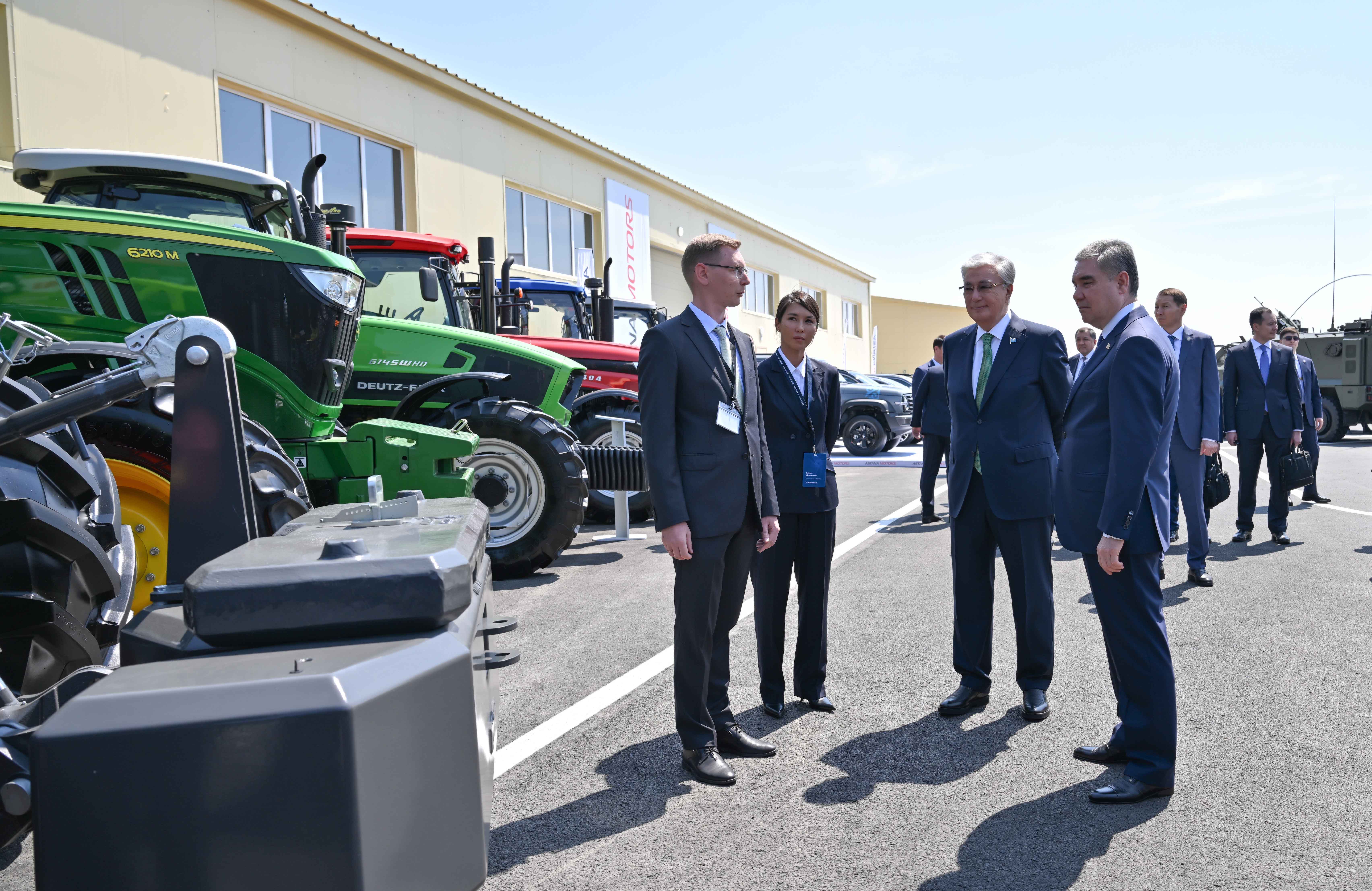 Қасым-Жомарт Тоқаев пен Гурбангулы Бердімұхамедов ғарыш саласында, машина жасау, металлургия, құрылыс индустриясы, жеңіл, тамақ және химия өнеркәсібінде қызмет ететін қазақстандық өндірушілердің көрмесімен танысты.