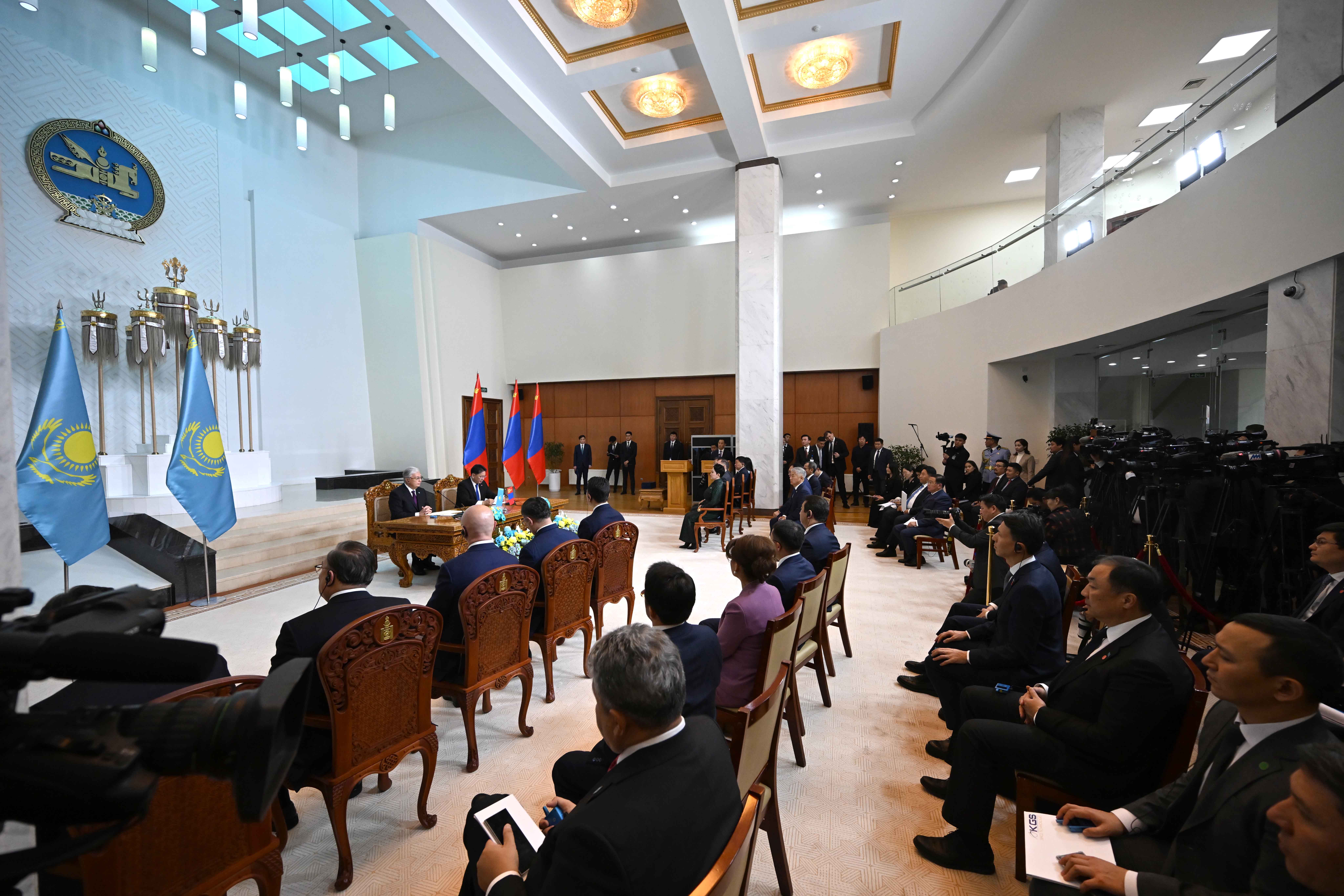 Қазақстан және Моңғолия президенттері келіссөздер қорытындысы бойынша БАҚ өкілдері алдында бірлескен мәлімдеме жасады.