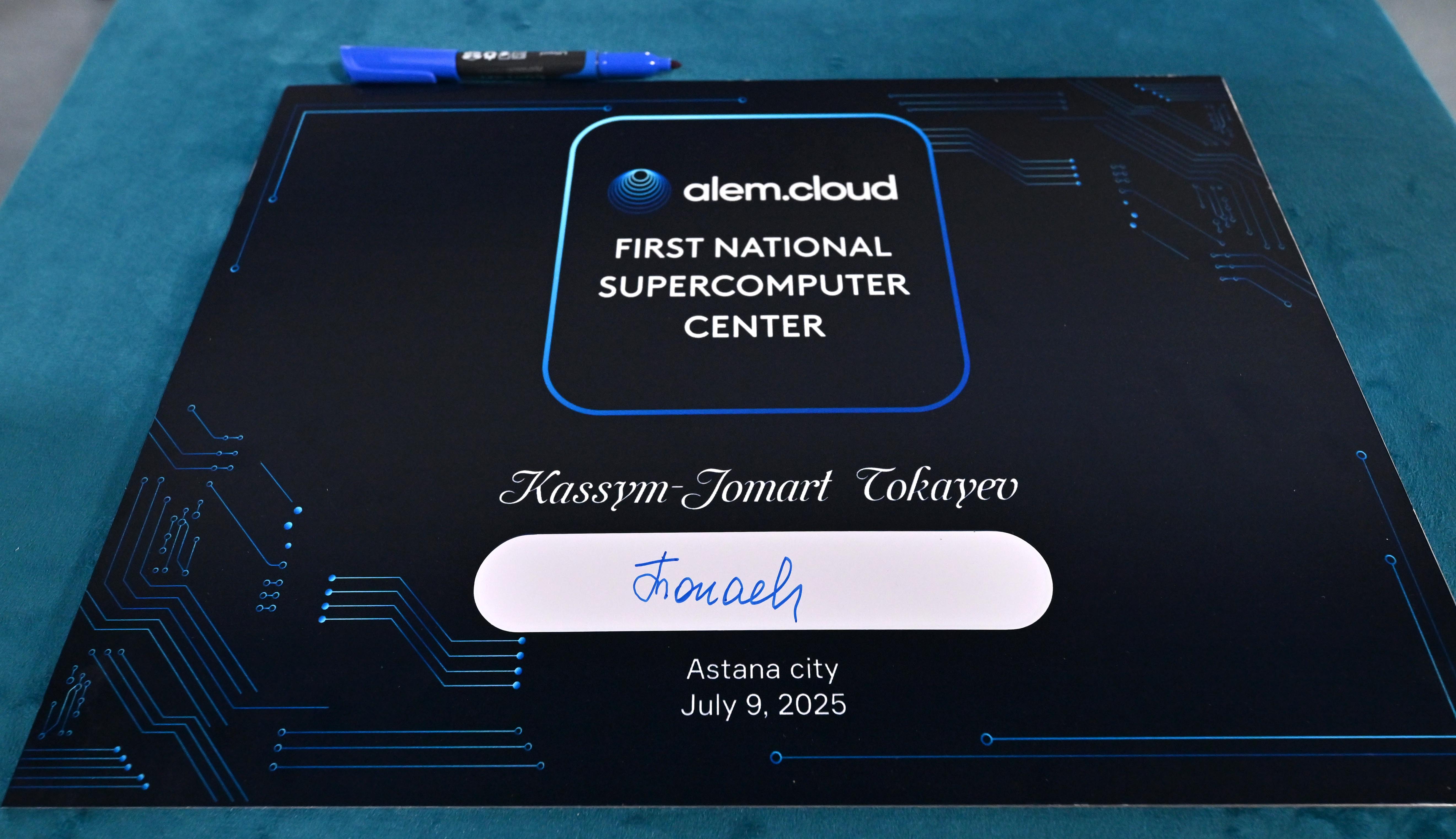 Мемлекет басшысы Alemcloud Ұлттық суперкомпьютер орталығына барып, NVIDIA H200 графикалық процессорлары базасында жасақталған суперкомпьютерді іске қосу рәсіміне қатысты. Жаңа дата-орталықтағы жүйені Цифрлық даму, инновациялар және аэроғарыш өнеркәсібі министрлігі халықаралық серіктестермен бірге орнатып, пайдалануға берді. Жаңа суперкомпьютер кластері FP8 форматында есептеу әдістемесі бойынша 2 экзафлопсқа дейінгі өнімділікті қамтамасыз ете алады. Есептеу қуаты жағынан Орталық Азия өңіріндегі ең үздігі саналады. Қасым-Жомарт Тоқаев суперкомпьютердің іске қосылуы еліміздегі негізгі салаларды цифрландыратын маңызды қадам екенін атап өтті. Бұл Қазақстанның цифрлық технологияларды дамытуда айтарлықтай өркендеуіне ықпал етеді. Суперкомпьютердің есептеу қуатын нейрожелі шешімдерін әзірлеумен айналысатын стартаптар, университеттер мен ғылыми орталықтар, сондай-ақ мемлекеттік мекемелер мен жеке компаниялар пайдалана алады.