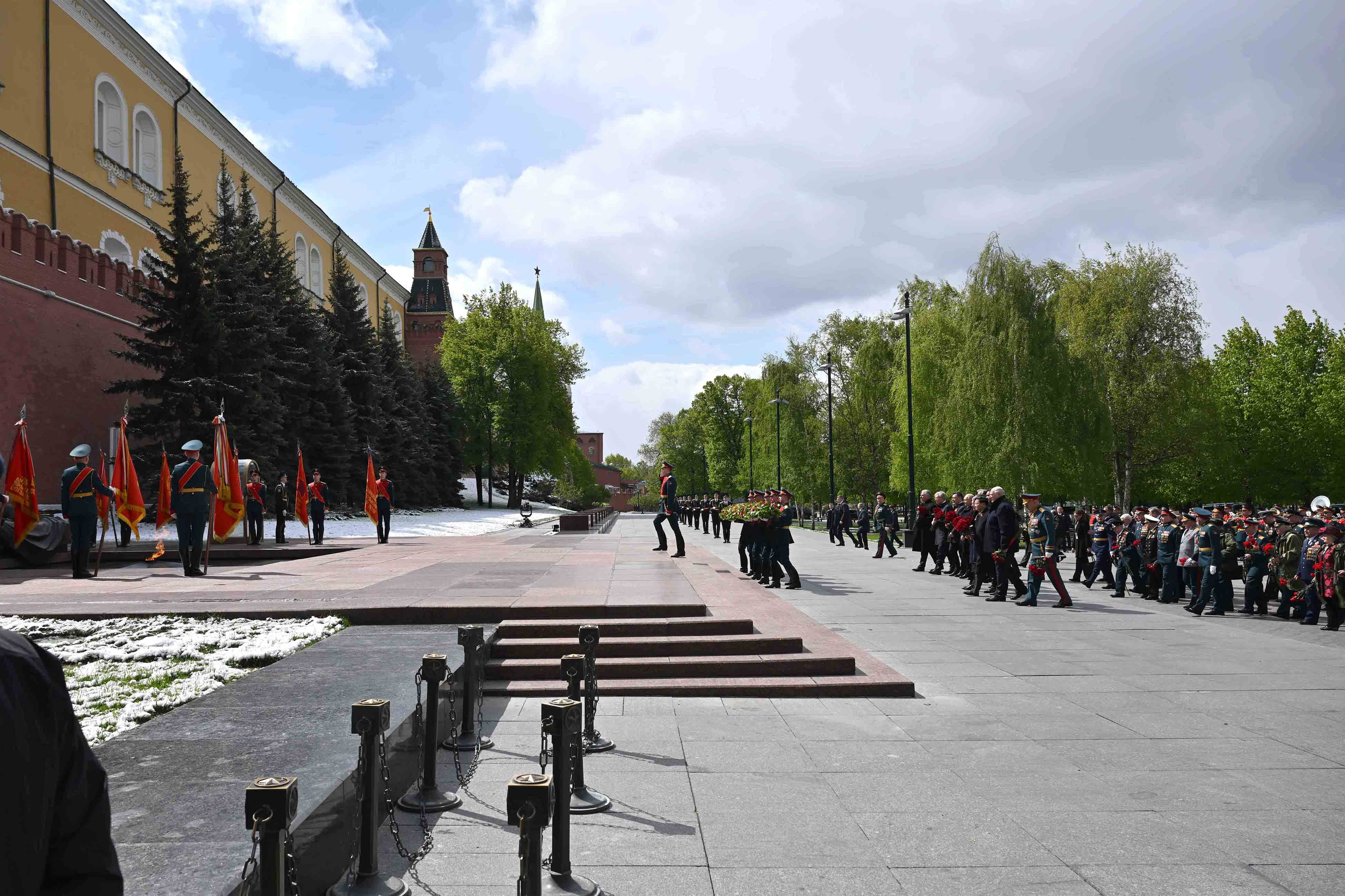 Мемлекет басшысы Жеңістің 79 жылдығына орай Мәскеудегі Қызыл алаңда өткен әскери парадқа барды. Сондай-ақ Белгісіз жауынгердің бейітіне гүл шоғын қою рәсіміне қатысты.