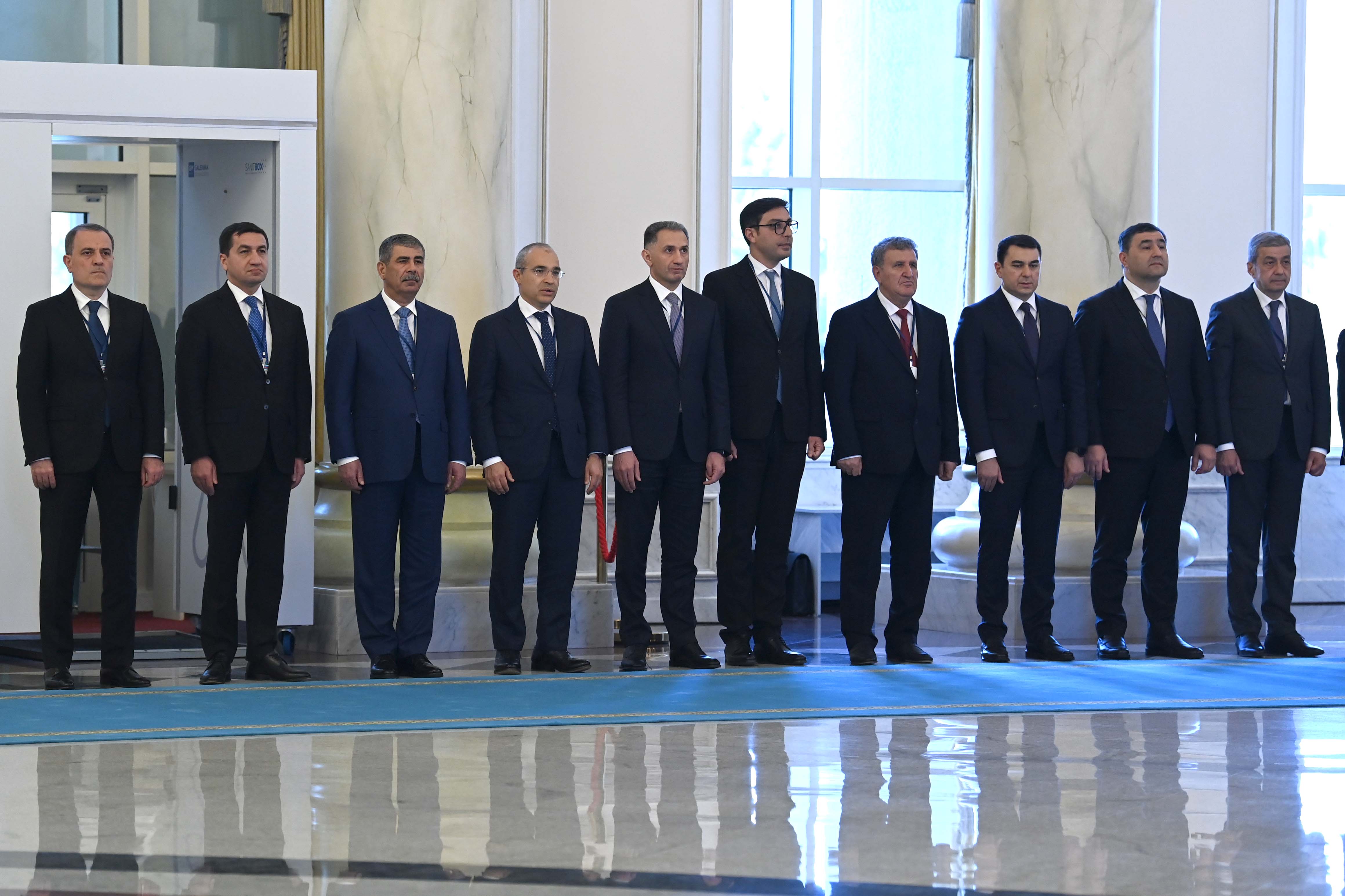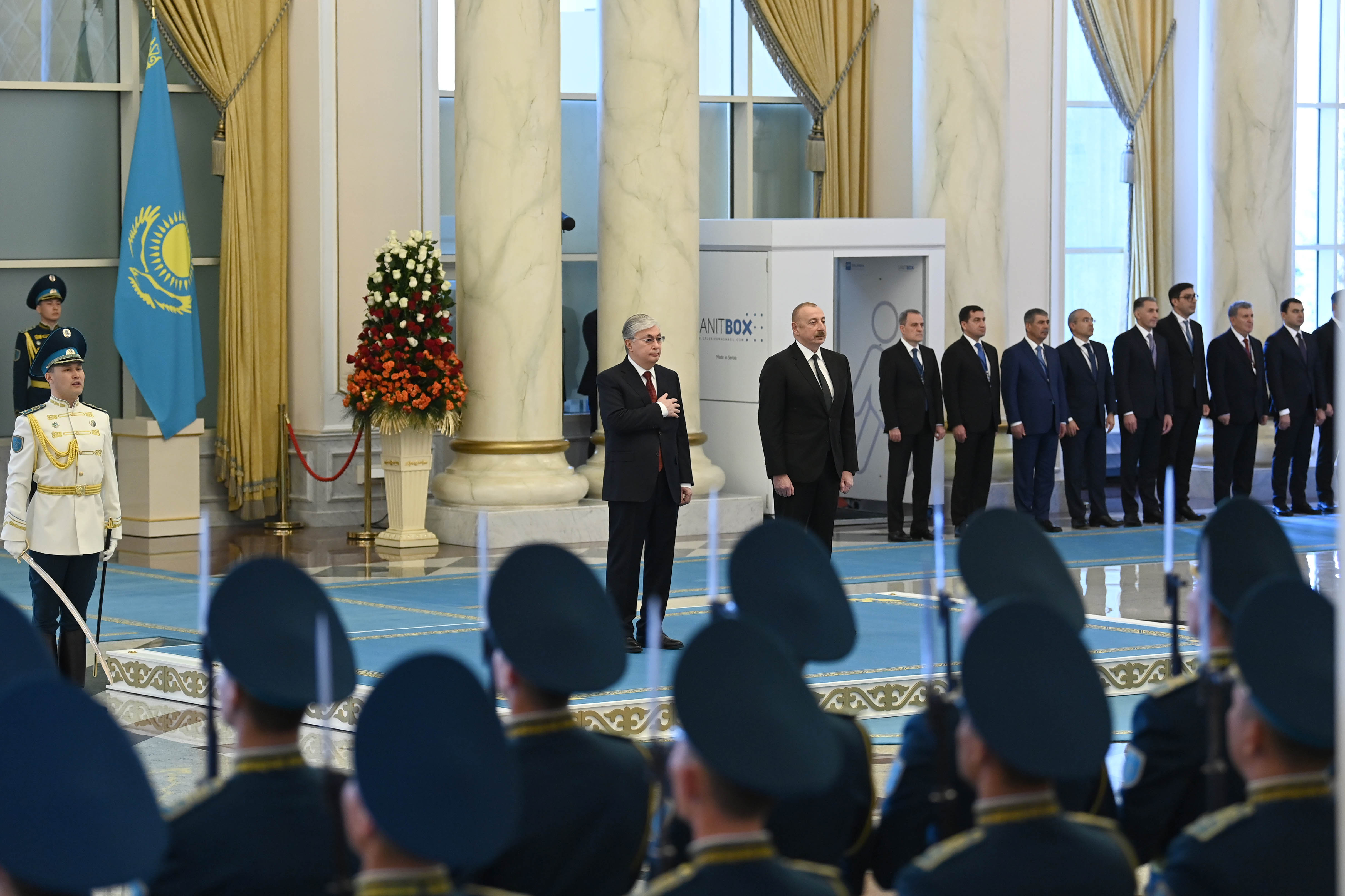 Келіссөздер алдында «Ақорда» резиденциясында ресми қарсы алу рәсімі өтті. Қасым-Жомарт Тоқаев пен Ильхам Әлиев бір-біріне ресми делегация мүшелерін таныстырды. Құрмет қарауылының бастығы мемлекеттер басшыларына рапорт беріп, екі елдің мемлекеттік әнұрандары шырқалды. Содан кейін президенттер шағын құрамда келіссөз жүргізді.