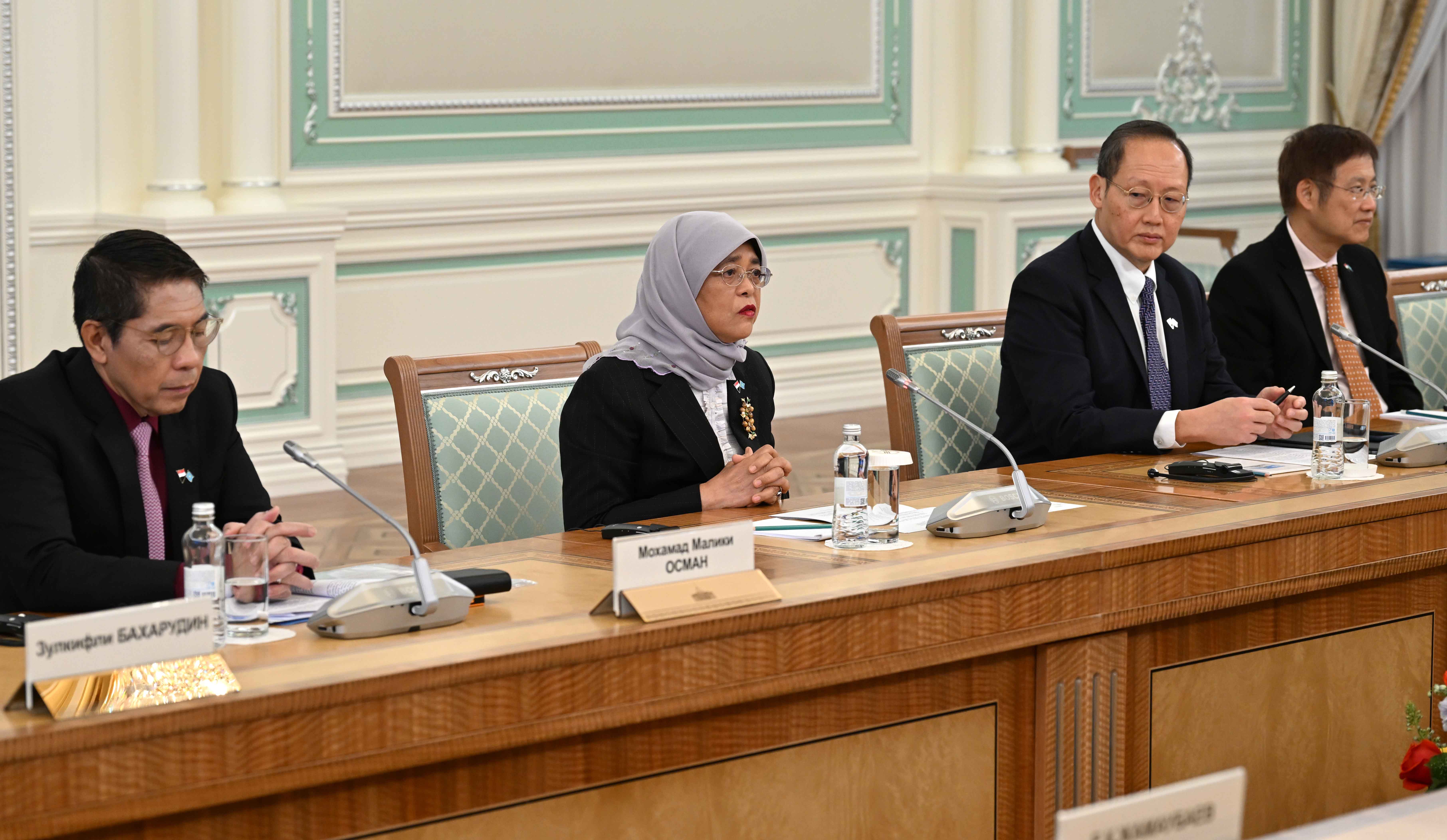 Өз кезегінде Халима Якоб мемлекеттік сапармен келуге шақырғаны, сондай-ақ өзіне және сингапурлық делегацияға қонақжайлық көрсеткені үшін Қасым-Жомарт Тоқаевқа алғыс айтты. Сингапур Президенті екі ел арасындағы саяси диалог пен өзара тиімді серіктестіктің деңгейін жоғары бағалады.
