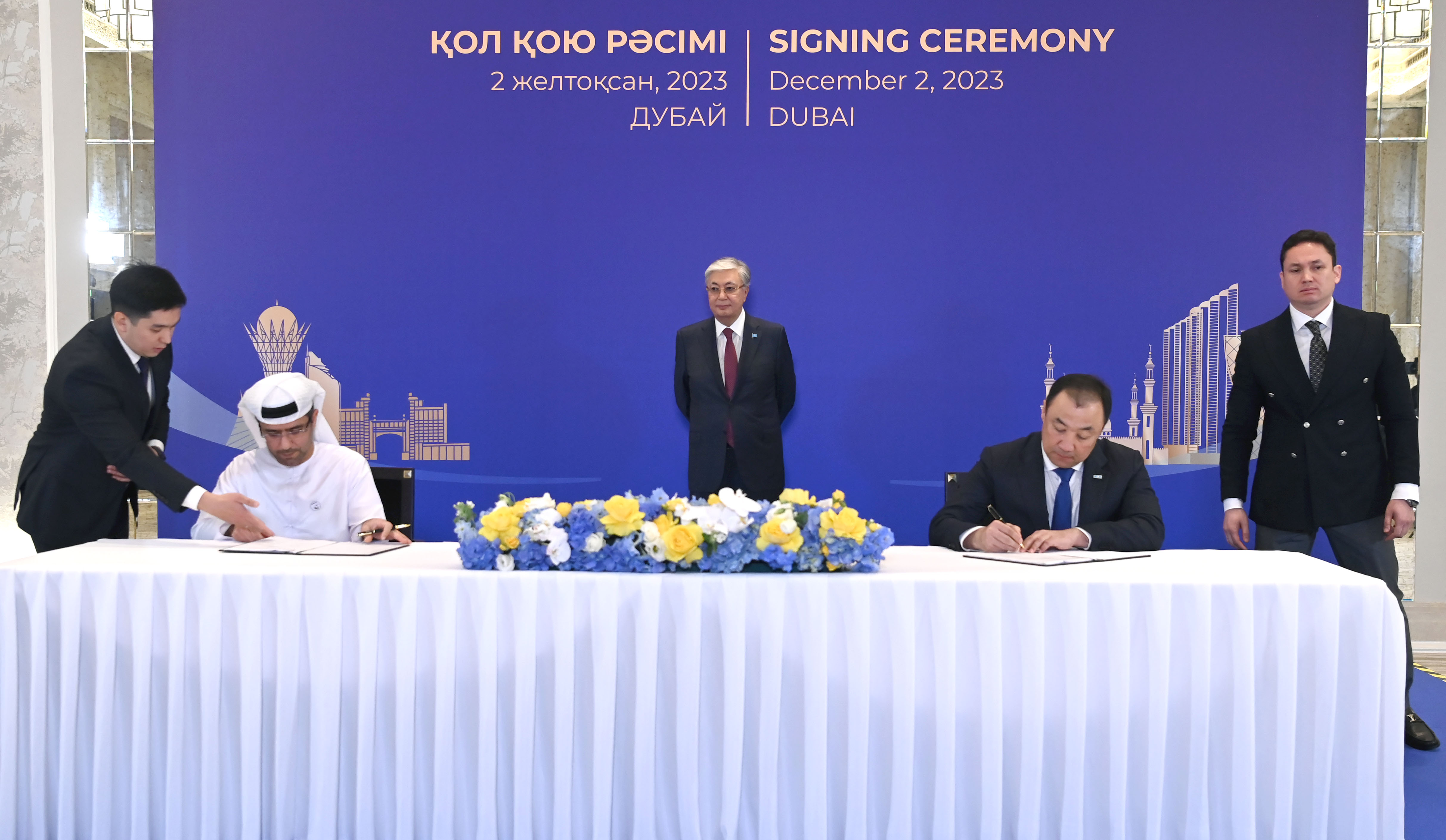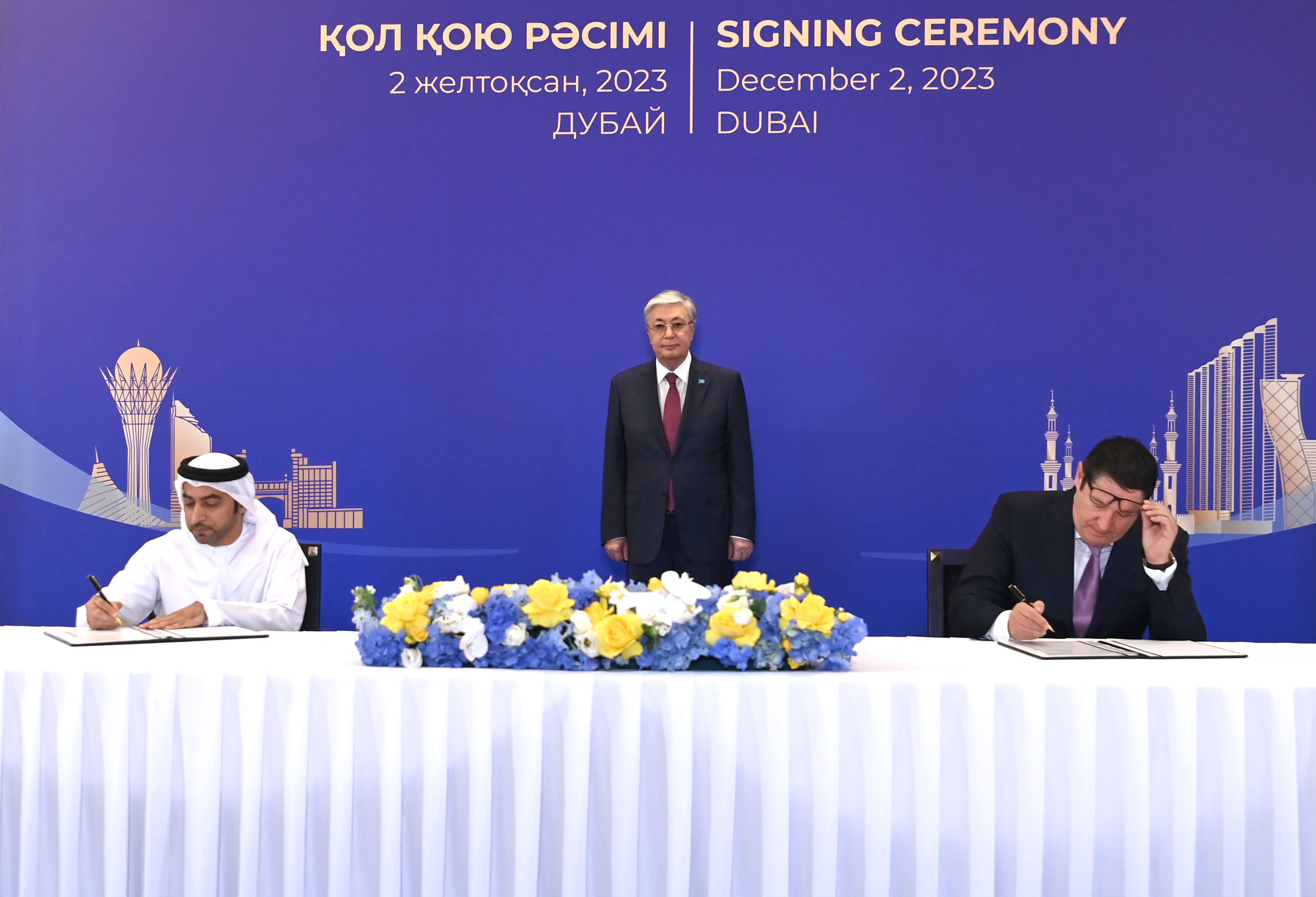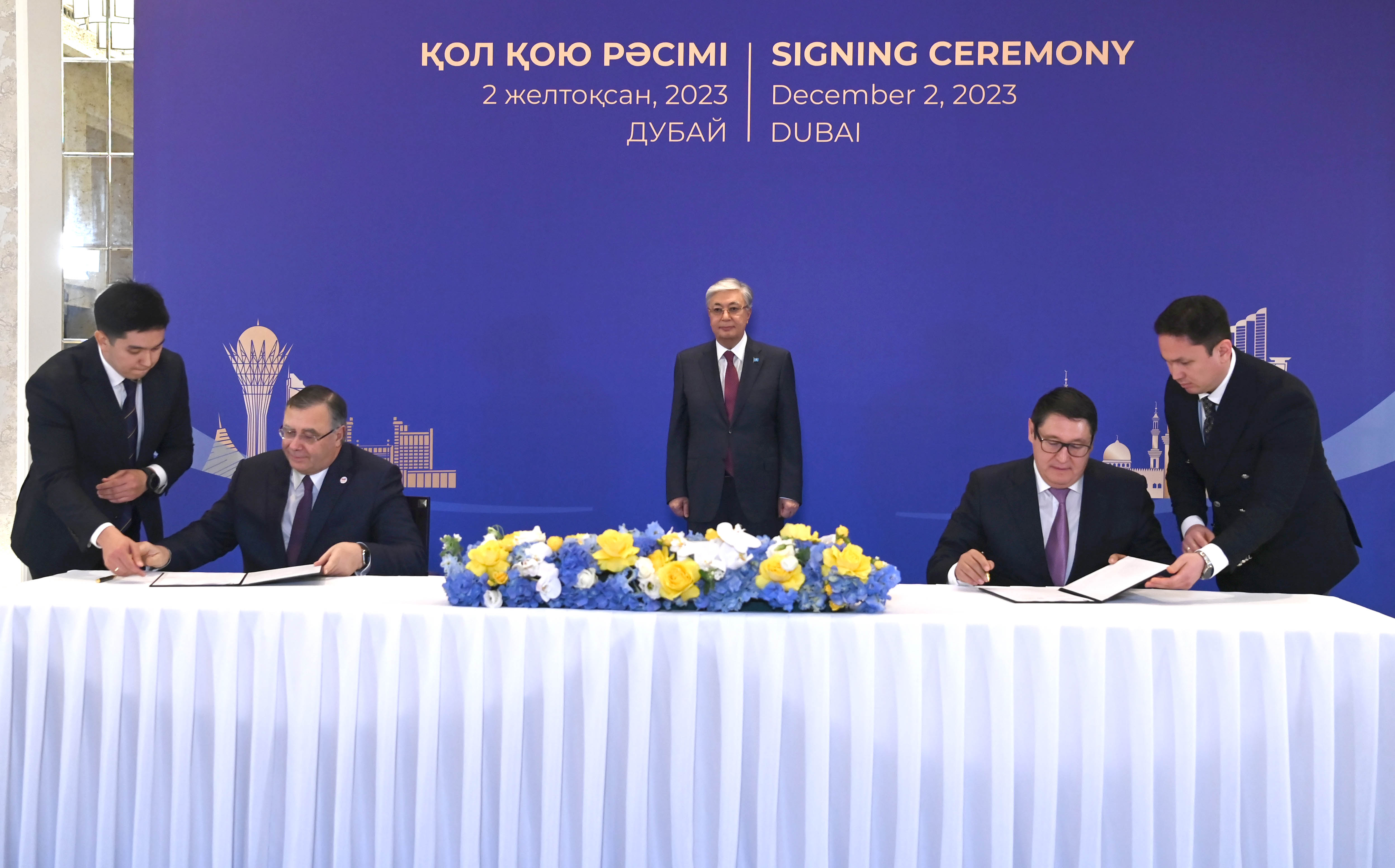 Қасым-Жомарт Тоқаев Дубайда өтіп жатқан Климат жөніндегі дүниежүзілік саммит (СОР28) аясында Қазақстанның және басқа да елдердің мемлекеттік органдары мен бизнес-құрылымдары арасындағы бірқатар келісімге қол қою рәсіміне қатысты.