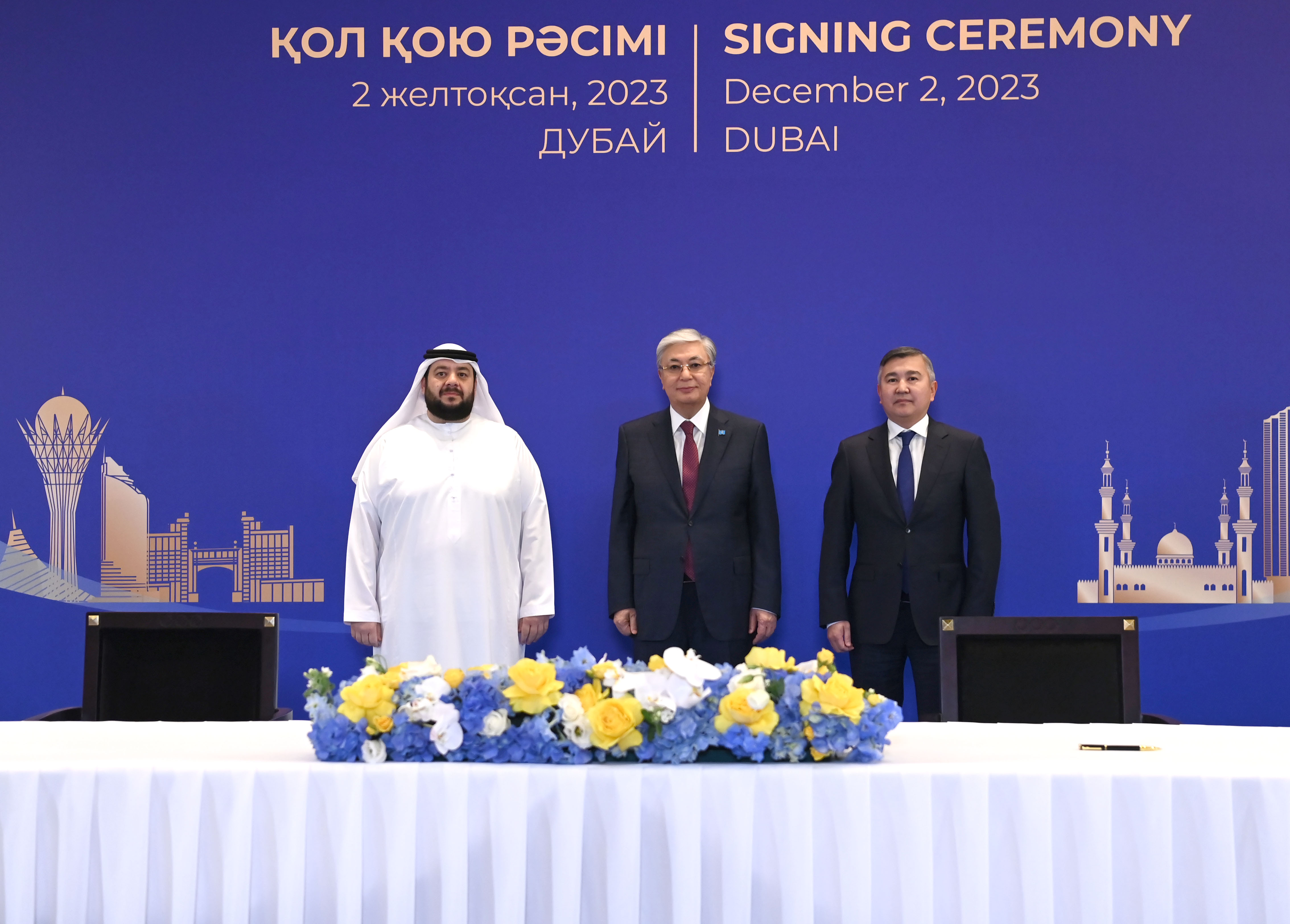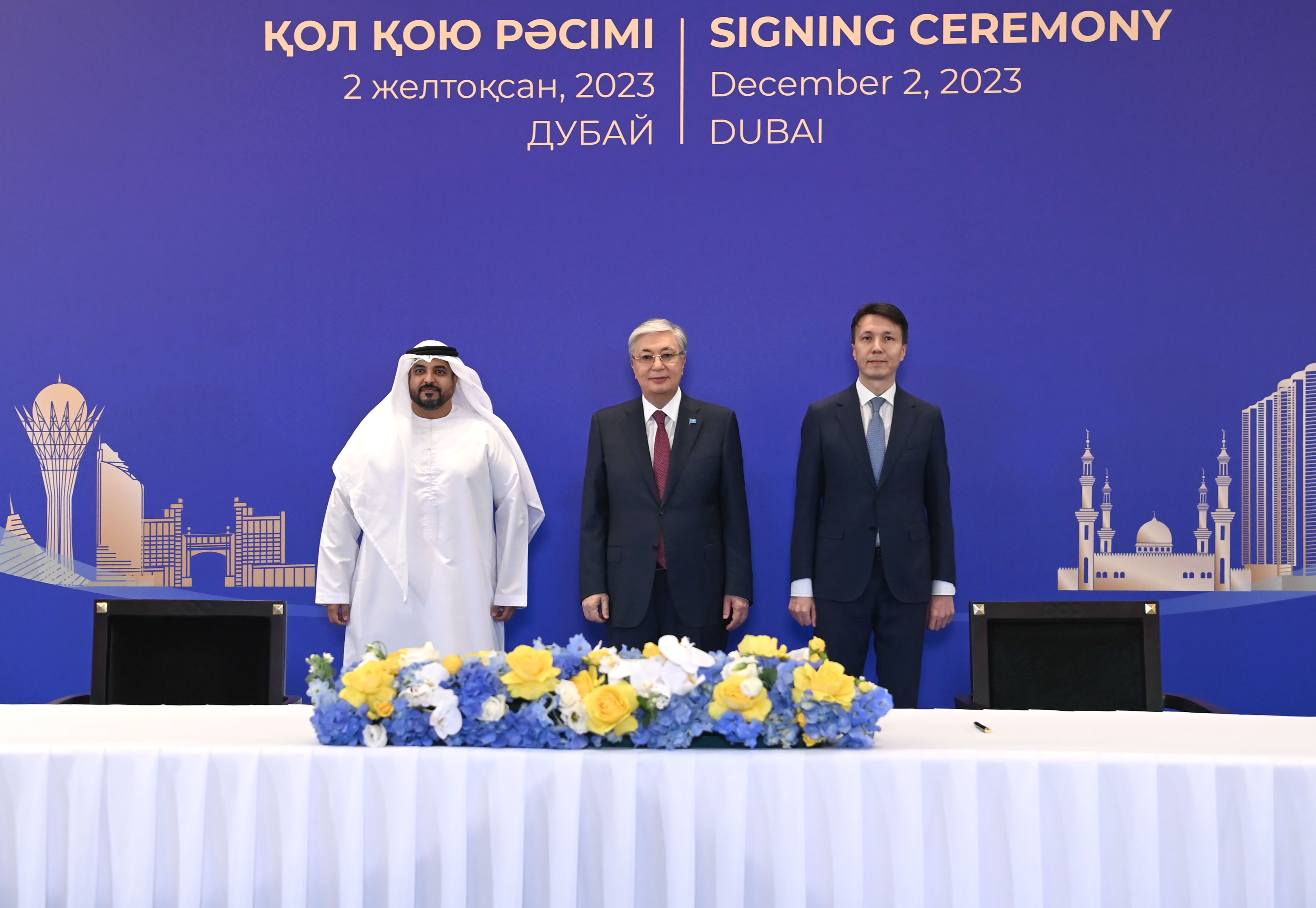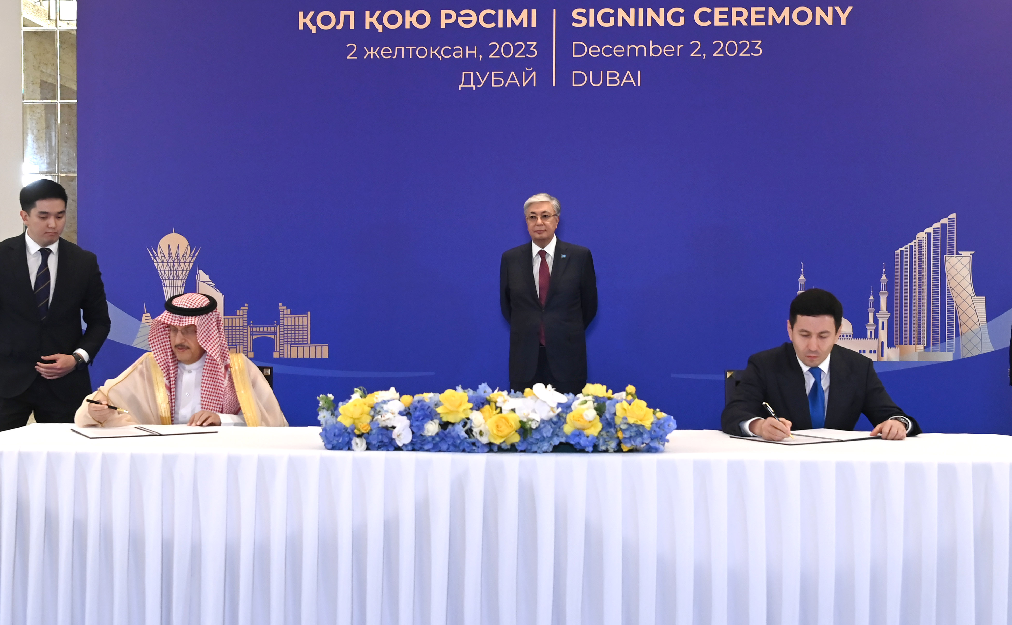 Қасым-Жомарт Тоқаев Дубайда өтіп жатқан Климат жөніндегі дүниежүзілік саммит (СОР28) аясында Қазақстанның және басқа да елдердің мемлекеттік органдары мен бизнес-құрылымдары арасындағы бірқатар келісімге қол қою рәсіміне қатысты.