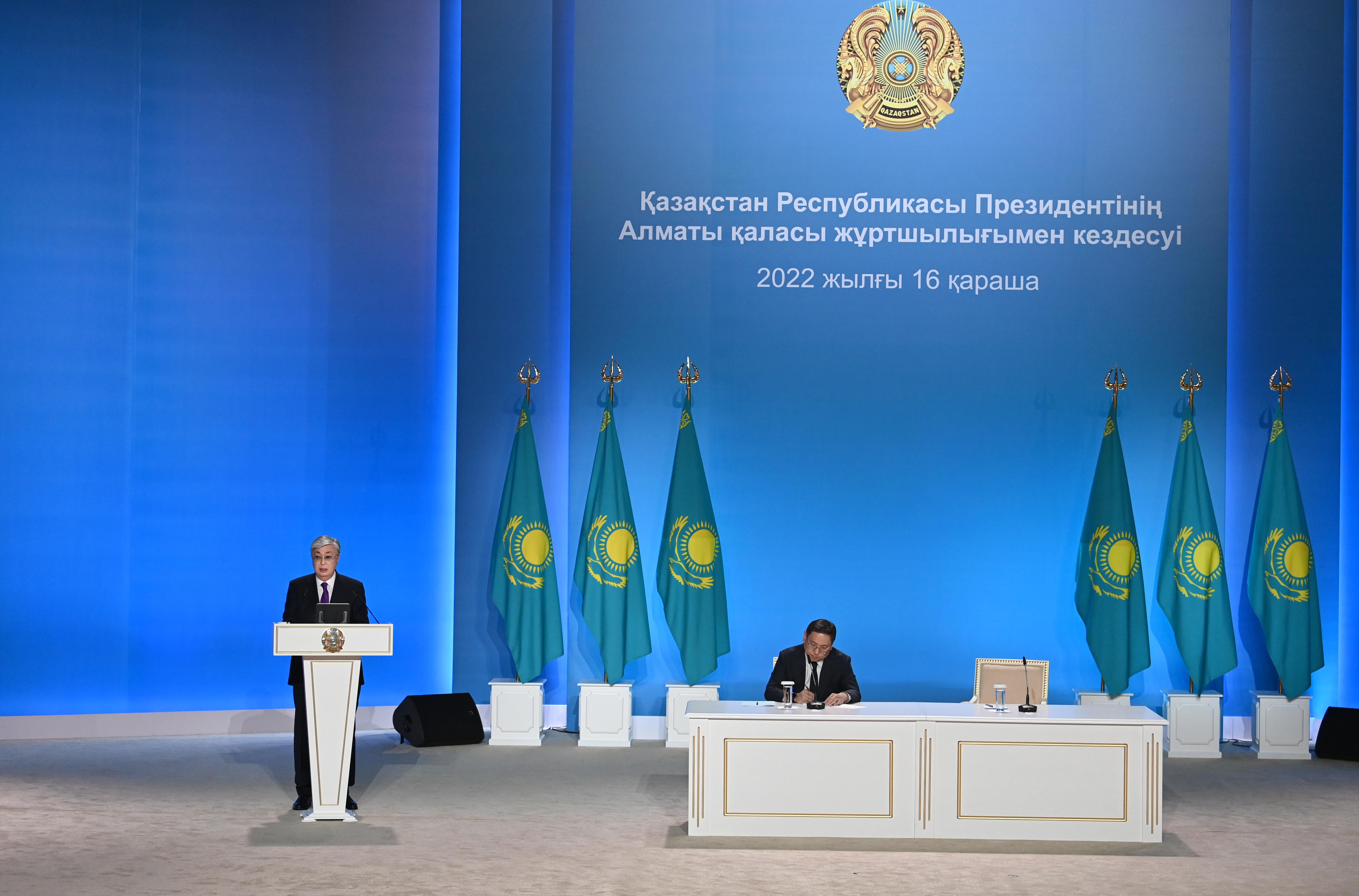 Президент қала жұртшылығымен кездесу барысында Алматының ел тарихында айрықша орын алатынын атап өтіп, осы қалада Егемендік декларациясы мен Қазақстанның Тәуелсіздігі жарияланғанын айтты.