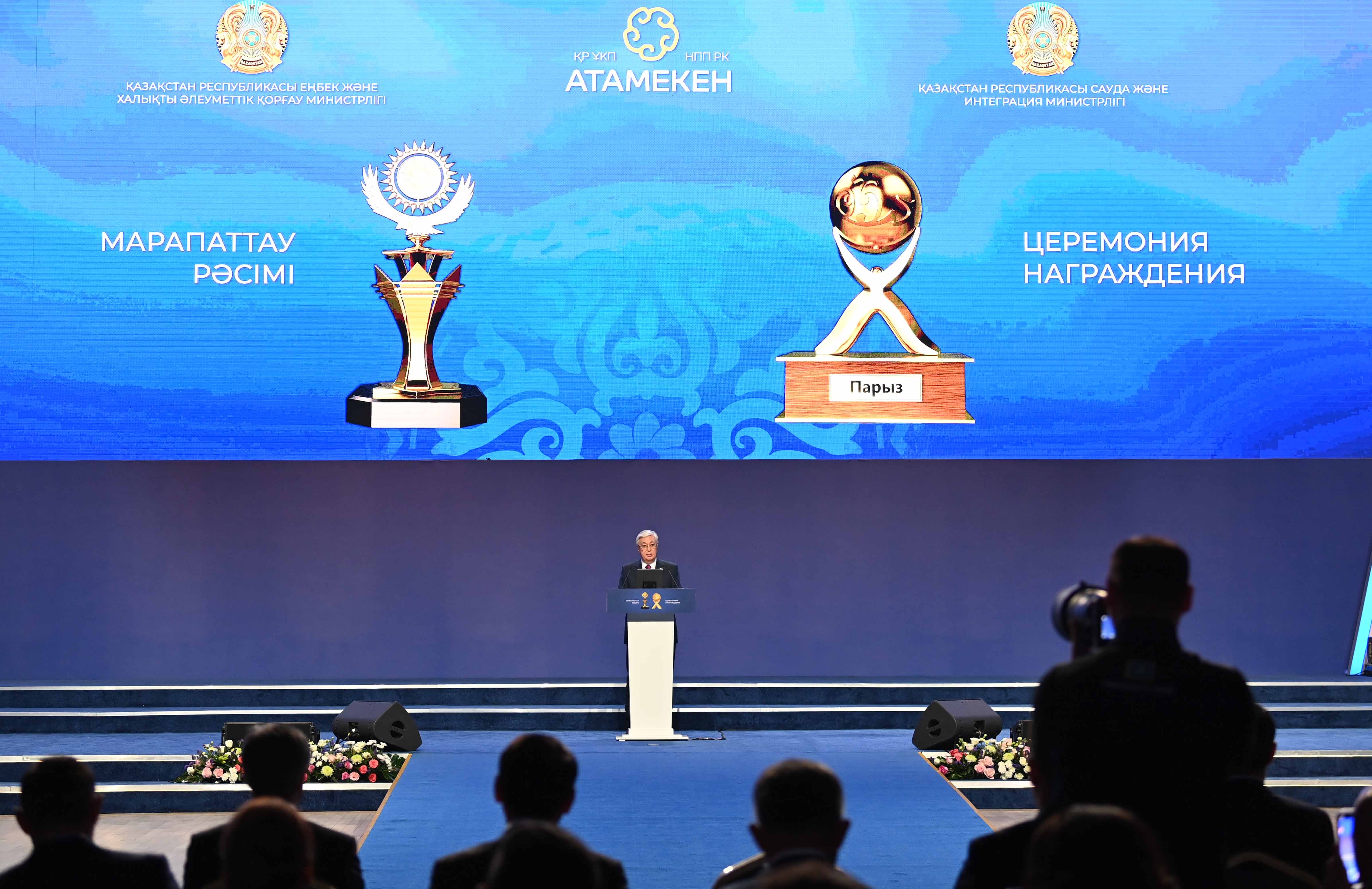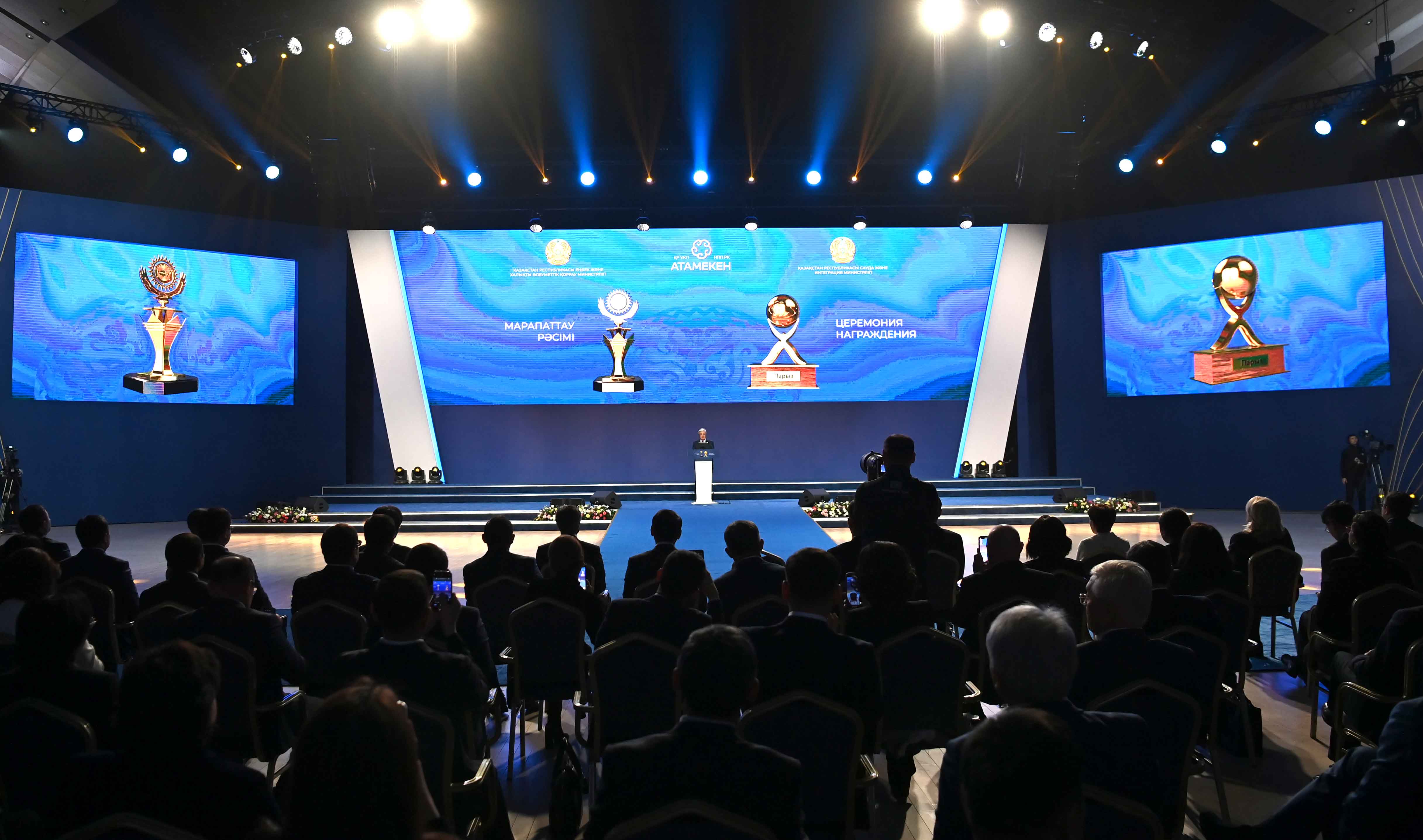 Президент «Алтын сапа» және «Парыз», «Қазақстанның үздік тауары» байқауларының жеңімпаздарын – ел дамуына елеулі үлес қосқан кәсіпкерлерді салтанатты түрде марапаттау рәсіміне қатысушыларды құттықтады.
