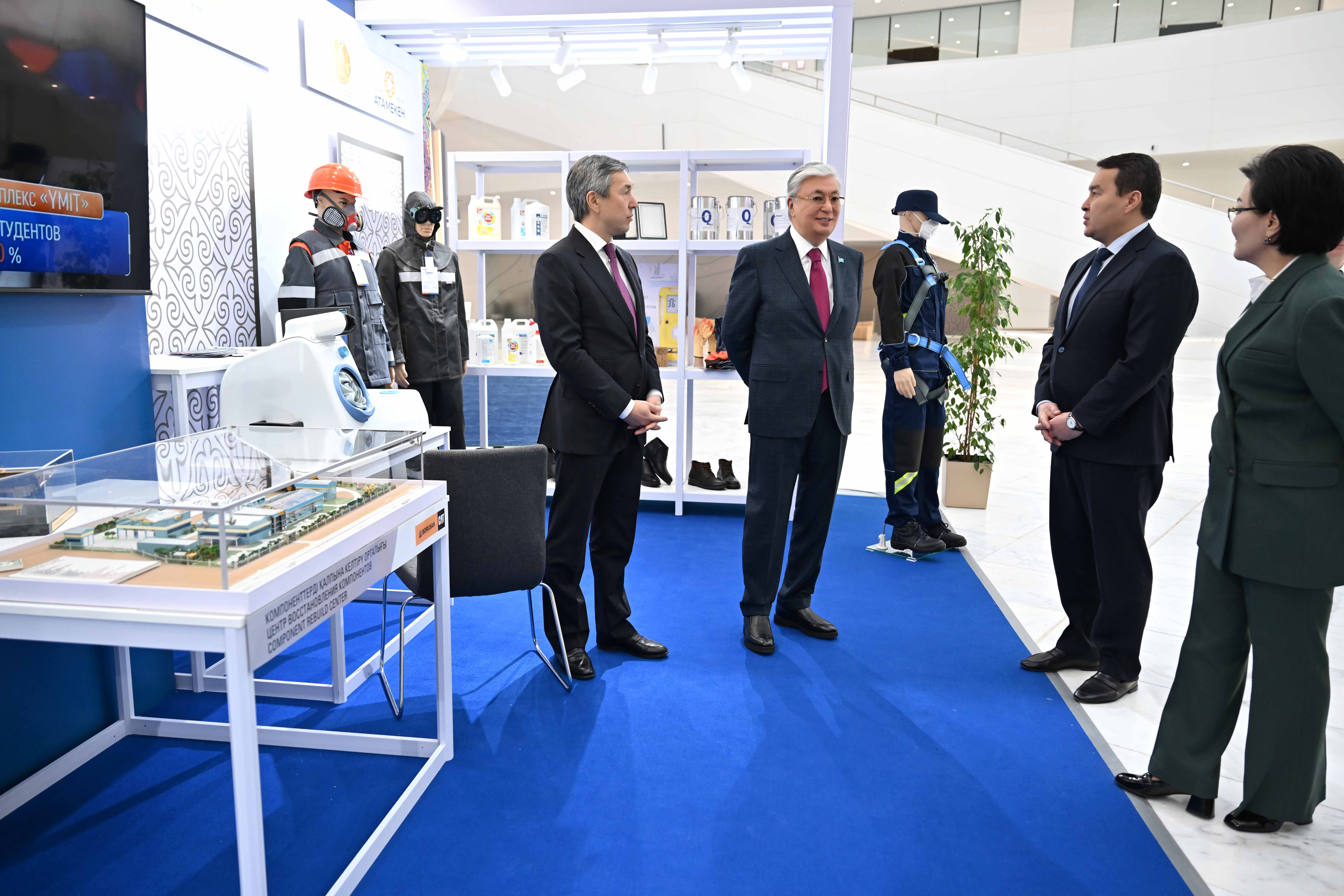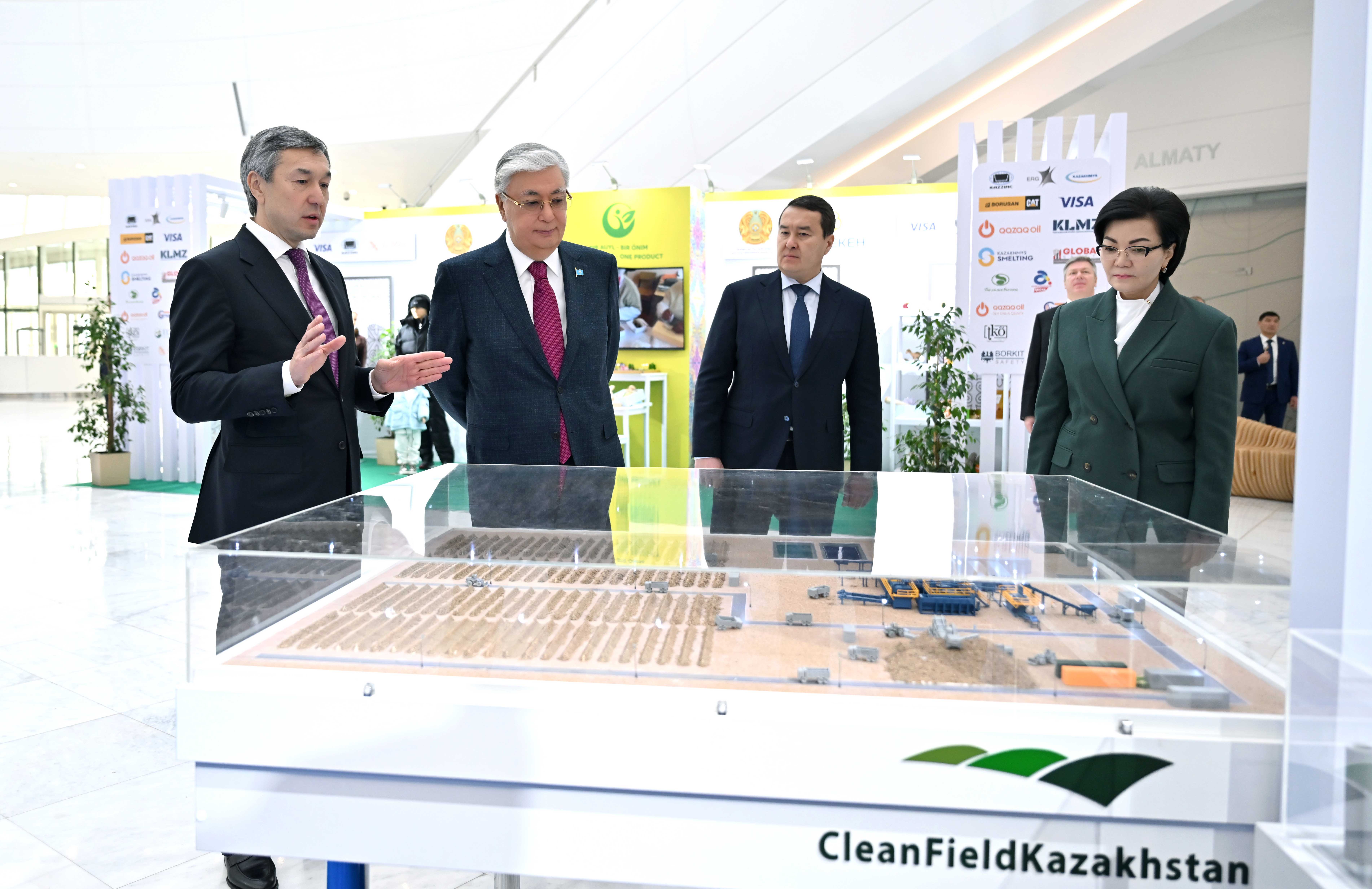 Салтанатты шара алдында Мемлекет басшысы «Бір ауыл – бір өнім» жобасымен, сондай-ақ «Global Safety», «CleanField Kazakhstan», «Borusan Cat» және «Med 365» секілді отандық компаниялардың өнімдері  қойылған көрмемен танысты.