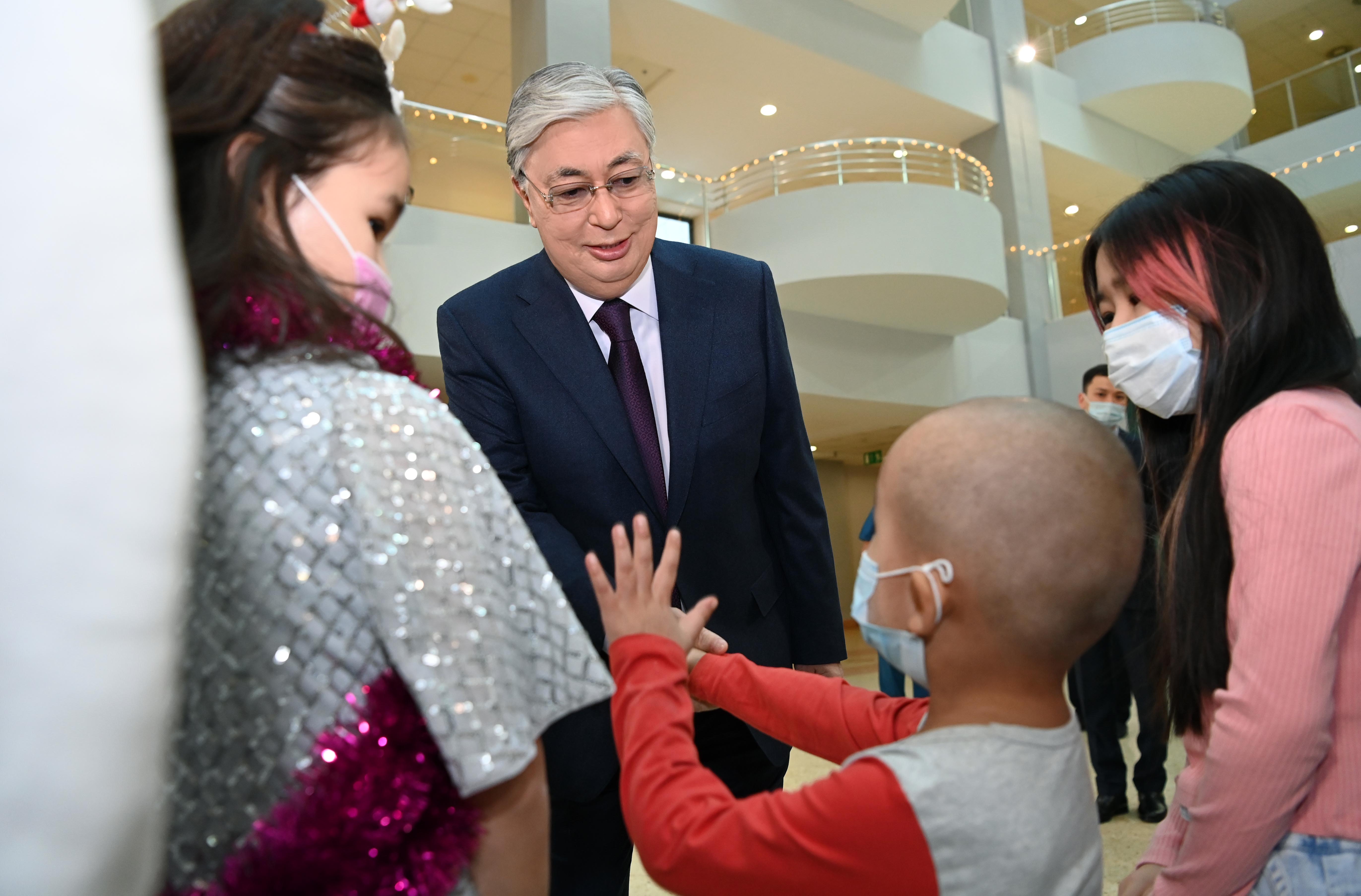 Президент республиканың әр өңірінен келіп, ем алып жатқан балалармен және олардың ата-аналарымен әңгімелесті. Мемлекет басшысы жеткіншектердің тезірек сауығып кетуіне тілектестік білдірді. Қасым-Жомарт Тоқаев Балалар жылының аясында білім, денсаулық сақтау, спорт және басқа да салаларда жеткіншектерге көңіл бөлінгенін айтып, бұдан әрі де қолдау шаралары жалғасатынын жеткізді.