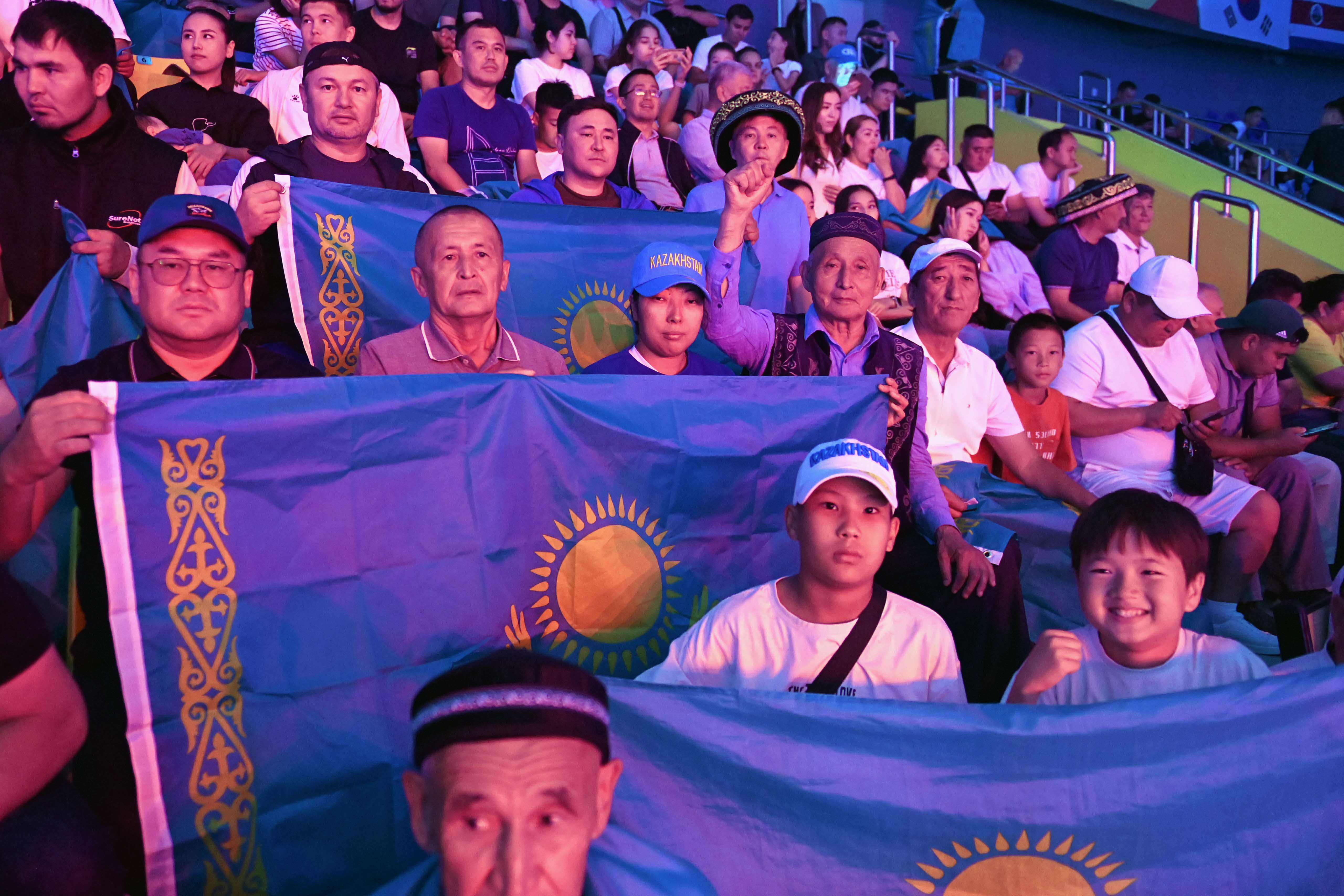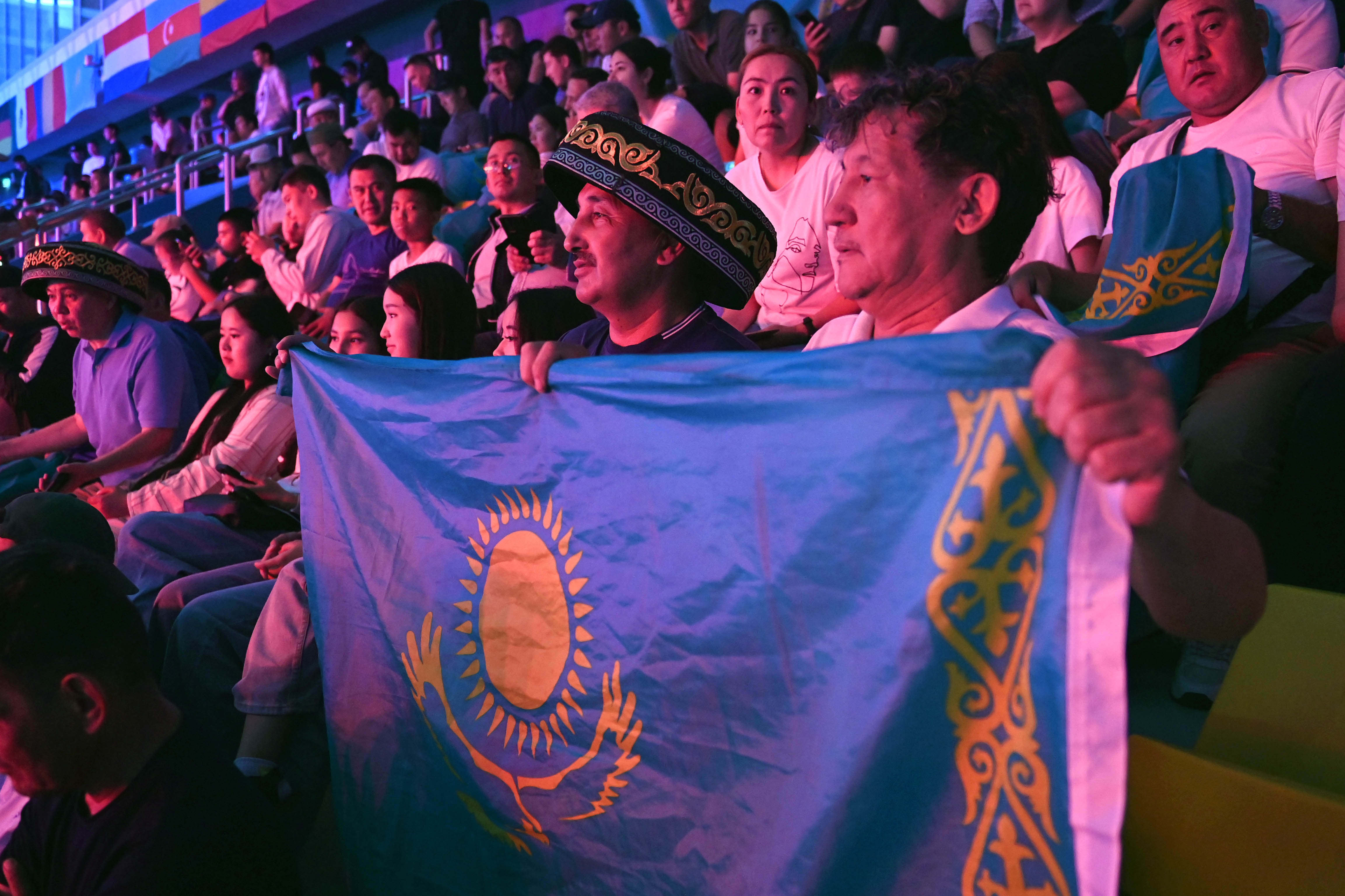 Президент Қасым-Жомарт Тоқаев бокстан Әлем кубогының финалын Жақсылық Үшкемпіров атындағы Жекпе-жек сарайында жанкүйерлермен бірге тамашалады.