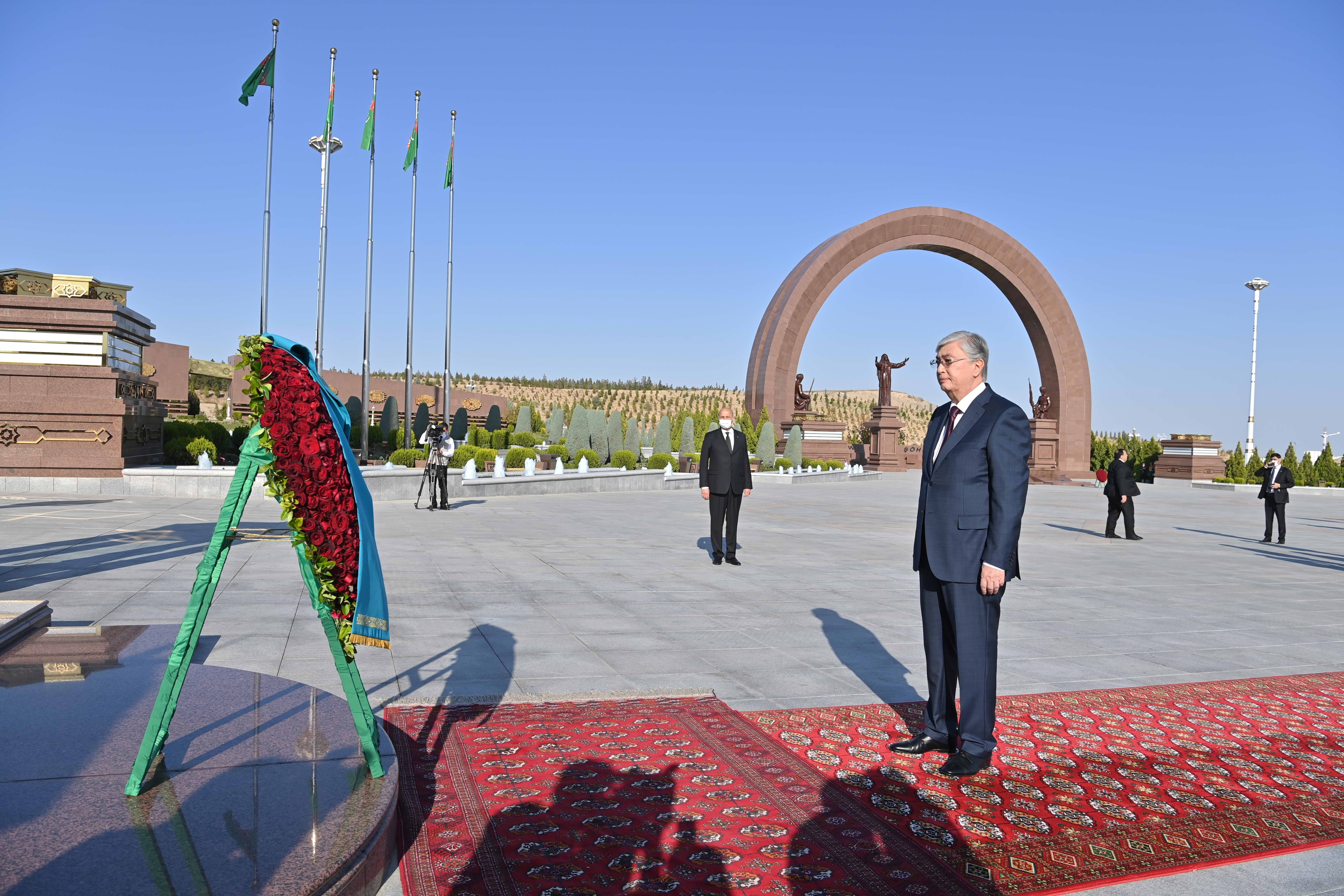 Ашхабад қаласы, Түрікменстан Қазақстан Президенті Түрікменстанға мемлекеттік сапары аясында 1881 жылғы шайқасты, 1941-1945 жылдардағы Ұлы Отан соғысында қаза тапқандарды және 1948 жылғы Ашхабад жер сілкінісінің құрбандарын еске алуға арналған тарихи кешенге барды. Кешенде аталған оқиғаларда қаза тапқандар мен батырларға қойылған ескерткіштер, монументтер бар. «Қасиетті Отан» музейінде Мемлекет басшысына Ұлы Отан соғысындағы әскери оқиғалардың макеттері мен жер сілкінісінің экспонаттары таныстырылды. Қасым-Жомарт Тоқаев құрметті қонақтар кітабына қолтаңбасын қалдырды.