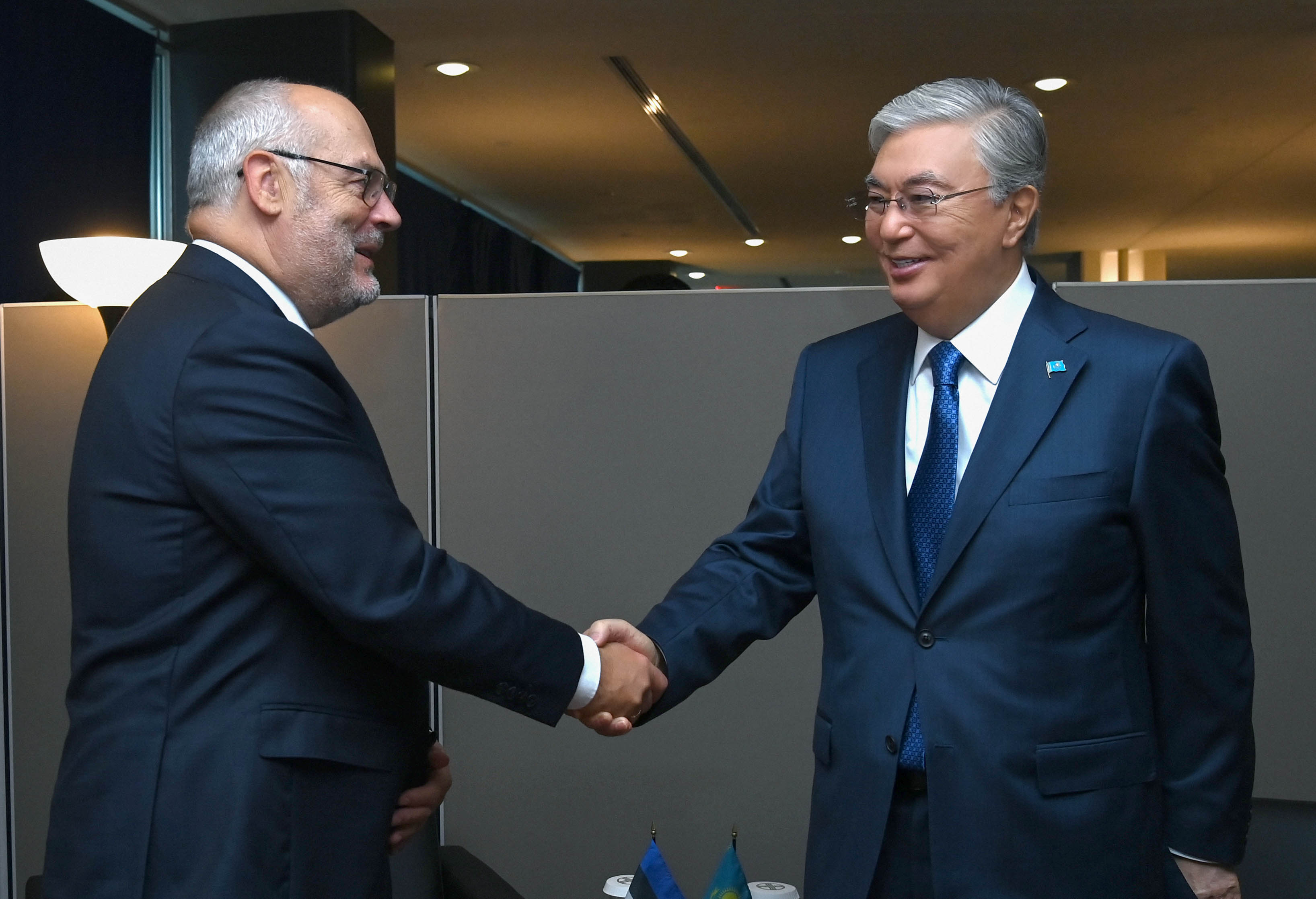 АҚШ, Нью-Йорк қаласы, БҰҰ штаб-пәтері Қасым-Жомарт Тоқаев БҰҰ Бас Ассамблеясының 78-сессиясы аясында Эстония Президенті Алар Кариспен де келіссөз жүргізді. Кездесу барысында екі мемлекеттің түрлі саладағы ынтымақтастығын нығайту перспективалары талқыланды. Қасым-Жомарт Тоқаев эстониялық әріптесіне Қазақстанда жүргізіліп жатқан ауқымды әлеуметтік-экономикалық өзгерістер, соның ішінде шетелден инвестиция тартуға және инвесторларды қорғауға бағытталған шаралар жөнінде мәлімет берді. Тараптар өзара ортақ мүддені көздейтін салалардағы ынтымақтастықты одан әрі нығайтуға ниетті екенін растады және бір-бірін өз елдеріне арнайы сапармен келуге шақырды. Сонымен қатар президенттер халықаралық күн тәртібіндегі өзекті мәселелерді және БҰҰ, Еуропалық Одақ, ЕЫҚҰ аясындағы көпжақты қатынастарды қарастырды.