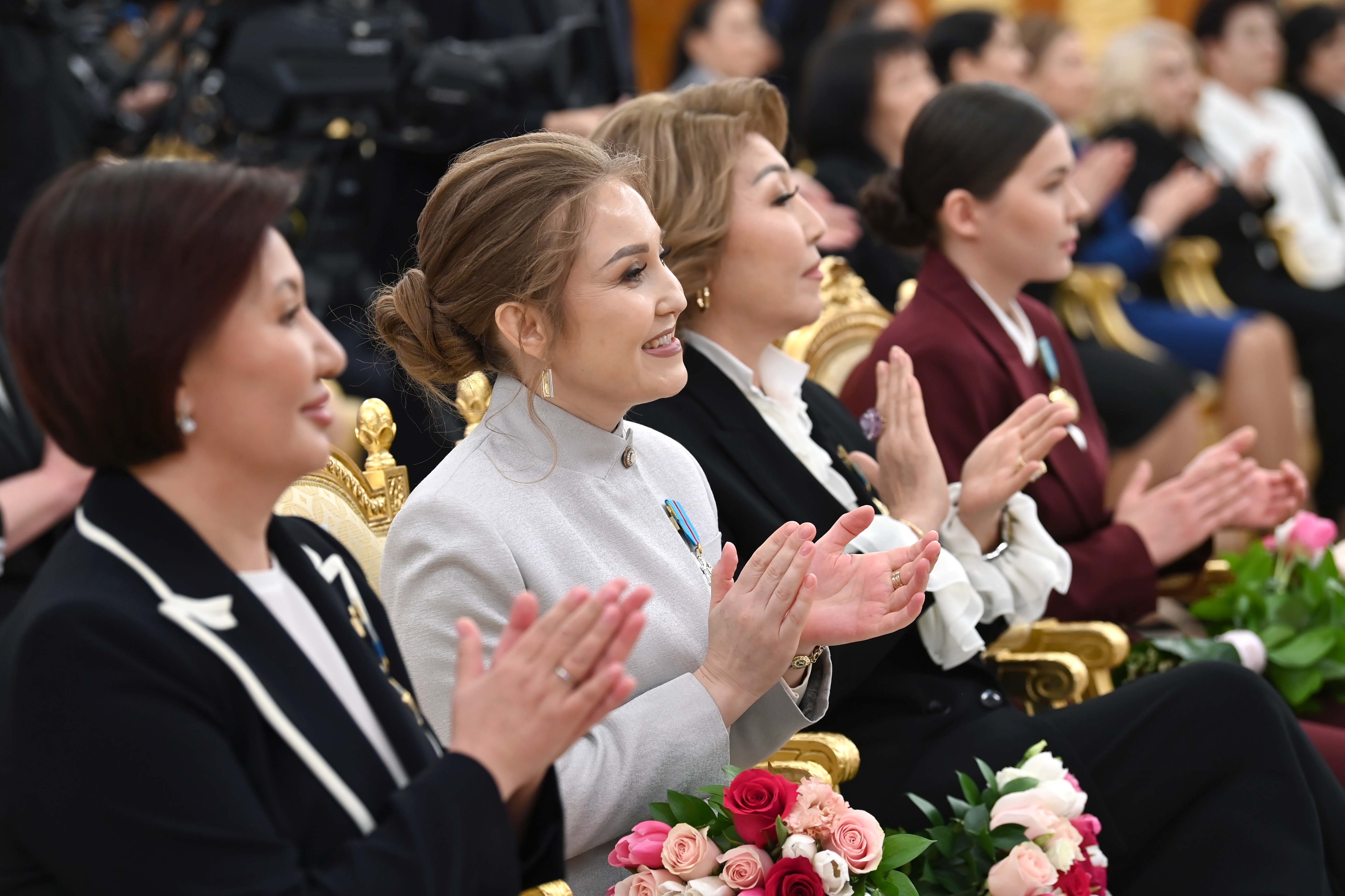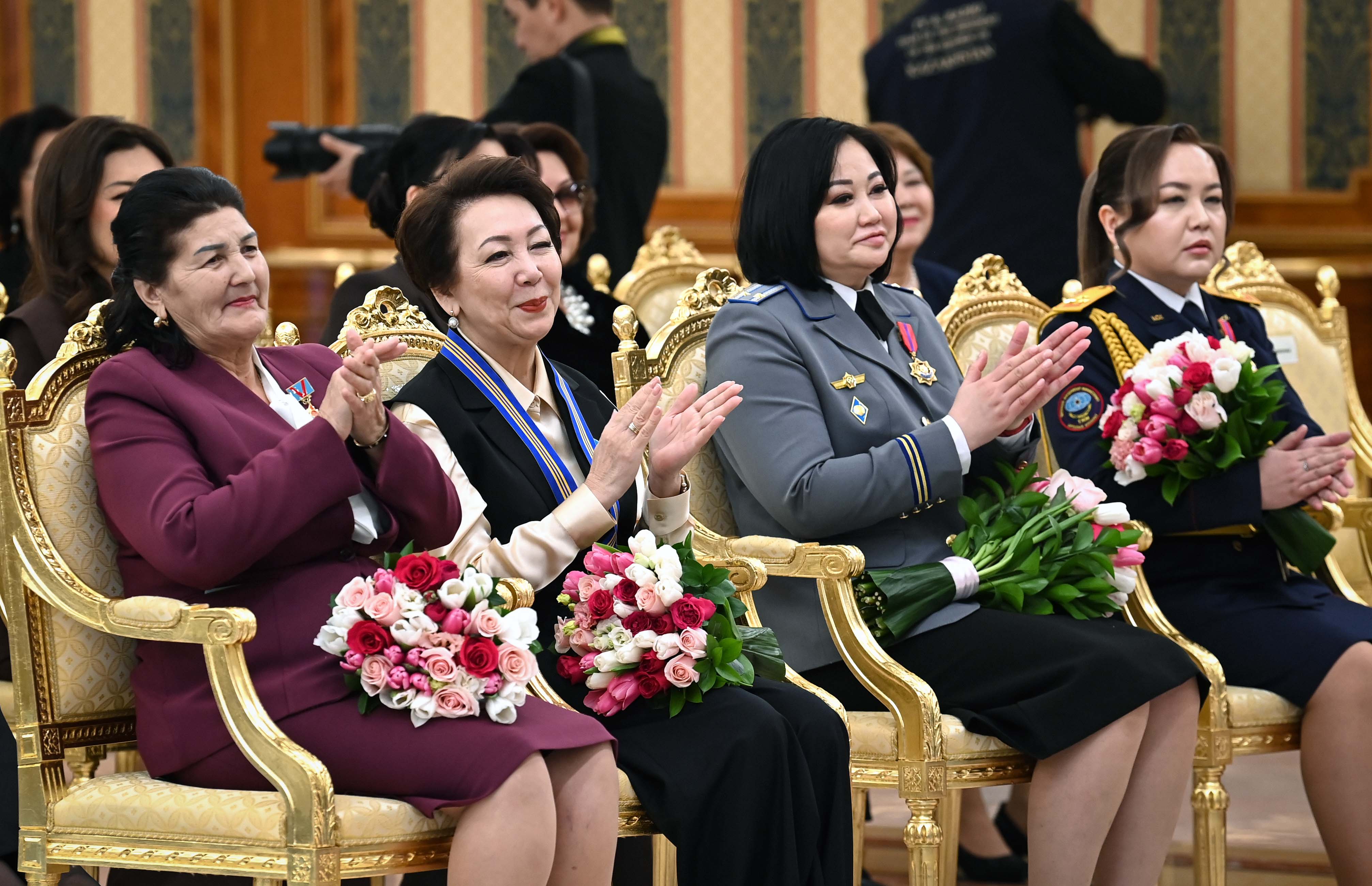 Президент мерекелік жиында Қазақстанның әлеуметтік-экономикалық және мәдени дамуына елеулі үлес қосып, өз кәсібінде жоғары табысқа жеткен әйелдерді мемлекеттік наградамен марапаттады.