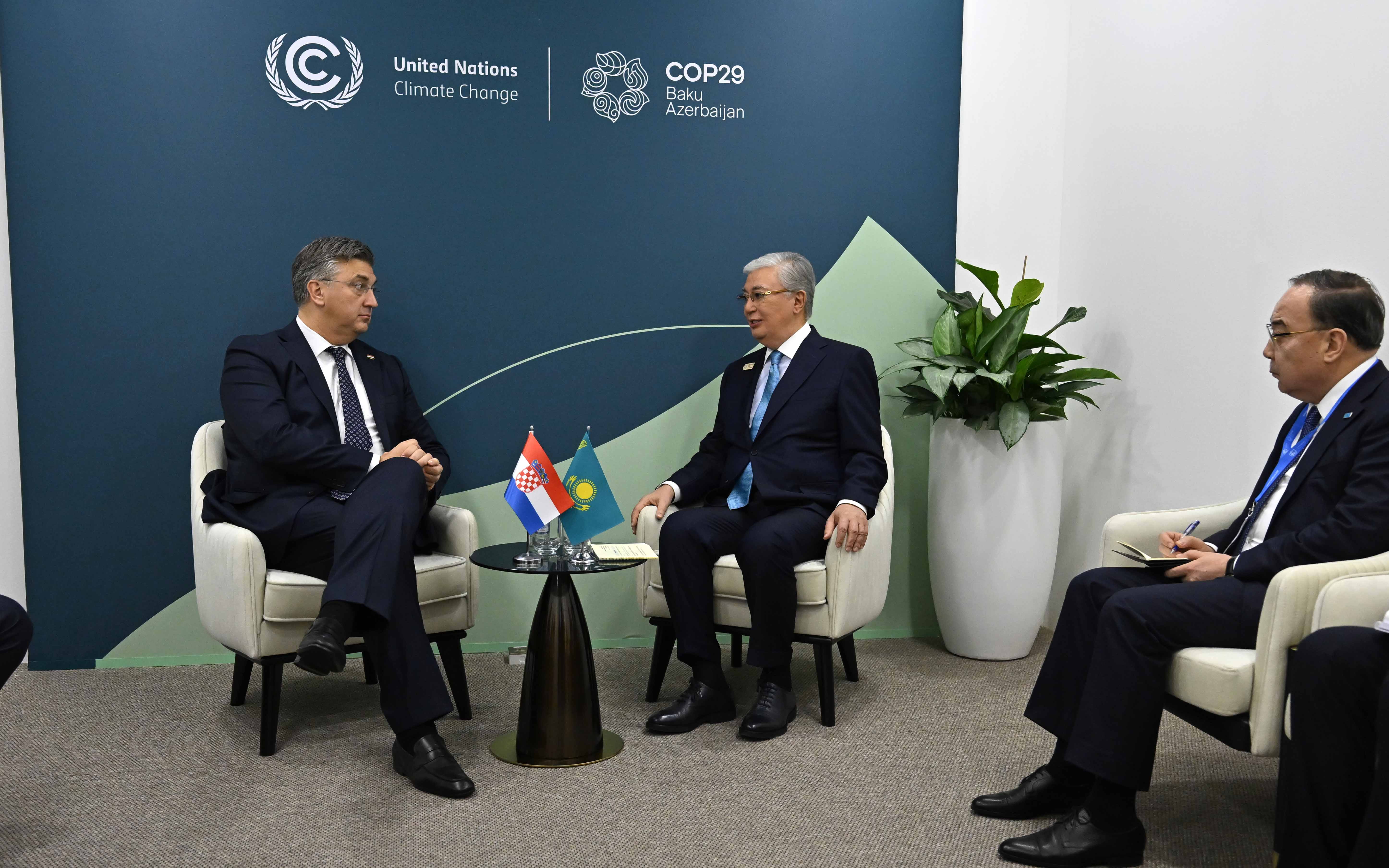 Әзербайжан, Баку қаласы Президент Хорватияны Қазақстанның Еуропа Одағындағы сенімді серіктесі ретінде атап өтті. Қасым-Жомарт Тоқаев пен Андрей Пленкович екіжақты қарым-қатынасты, соның ішінде сауда-экономика, инвестиция және мәдени-гуманитарлық ықпалдастықтың қазіргі жай-күйін талқылады. Кездесуде энергетика секторындағы бірлескен инвестициялық жобаларды жүзеге асыруға баса назар аударылды. Мемлекет басшысы Қазақстанда жұмыс істеп жатқан хорватиялық компанияларға қолдау білдірді. Бұдан бөлек, виза режимін оңтайландыру мәселесі қарастырылды. Орайлы сәтті пайдалана отырып, Қасым-Жомарт Тоқаев Хорватия Премьер-министрін келесі жылы өтетін Астана халықаралық форумына шақырды. Ал Андрей Пленкович Қазақстан Президентіне Хорватияға сапармен келуге ұсыныс білдірді.