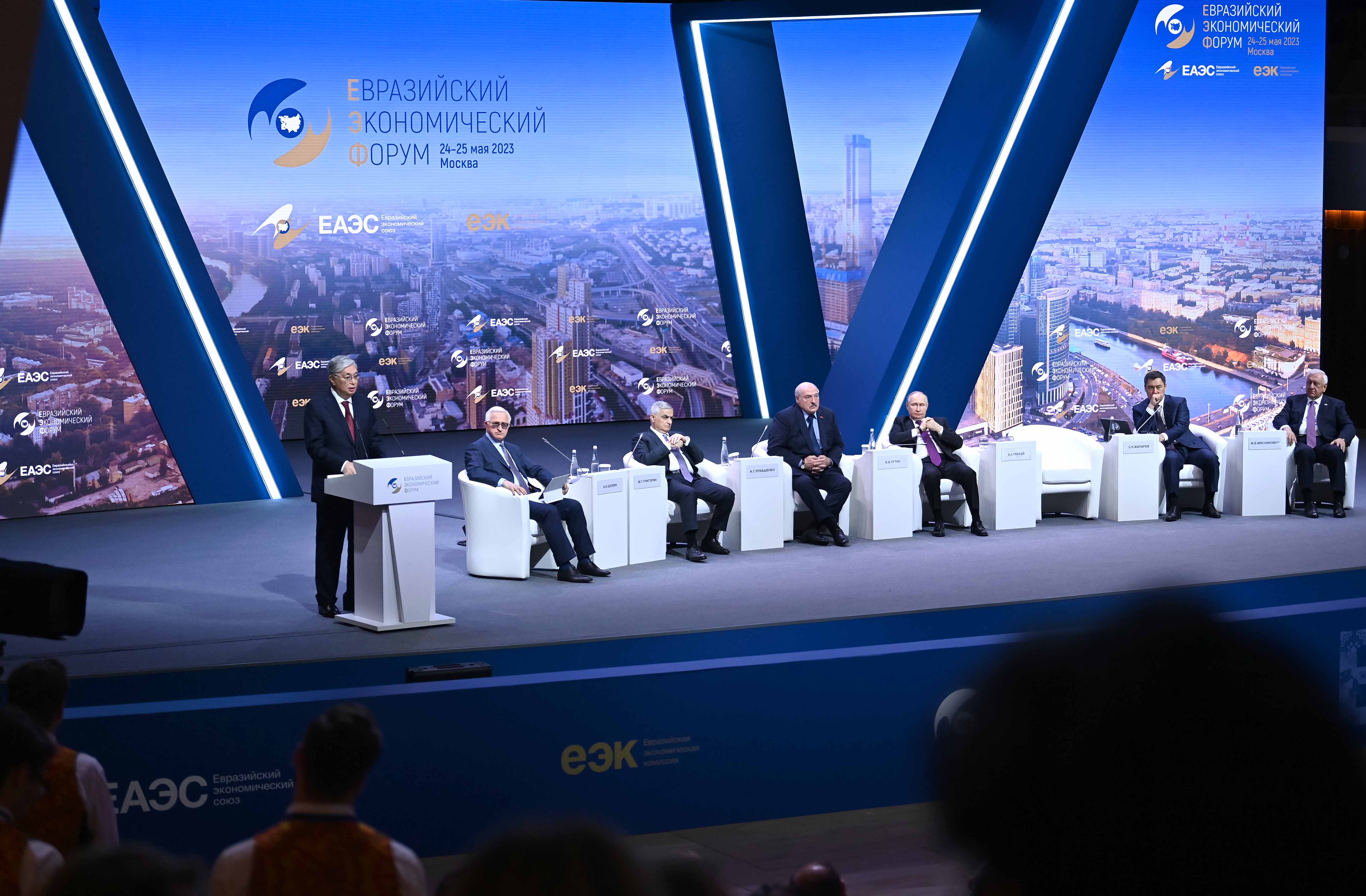 Президент Қасым-Жомарт Тоқаев «Көпполярлы әлемдегі еуразиялық интеграция» атты ІІ Еуразиялық экономикалық форумның пленарлық отырысына қатысты. Жиын сұрақ-жауап форматында өтті.