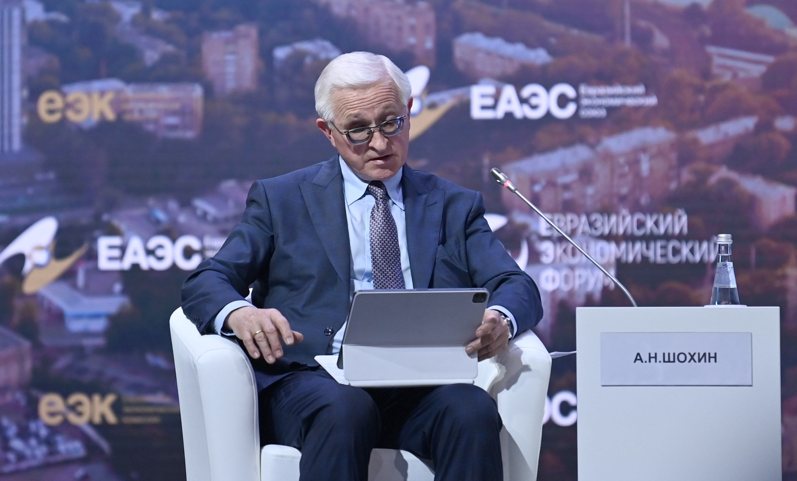 Модератор Александр Шохин Мемлекет басшысына Еуразиялық экономикалық одақтың 2025 жылға дейінгі қабылданған стратегиясында өзара инфрақұрылым байланысы, «Солтүстік – Оңтүстік» және «Батыс – Шығыс» дәліздері және үшінші елдермен арадағы қатынастар секілді перспективті бағыттар қамтылған ба деген сұрақ қойды.