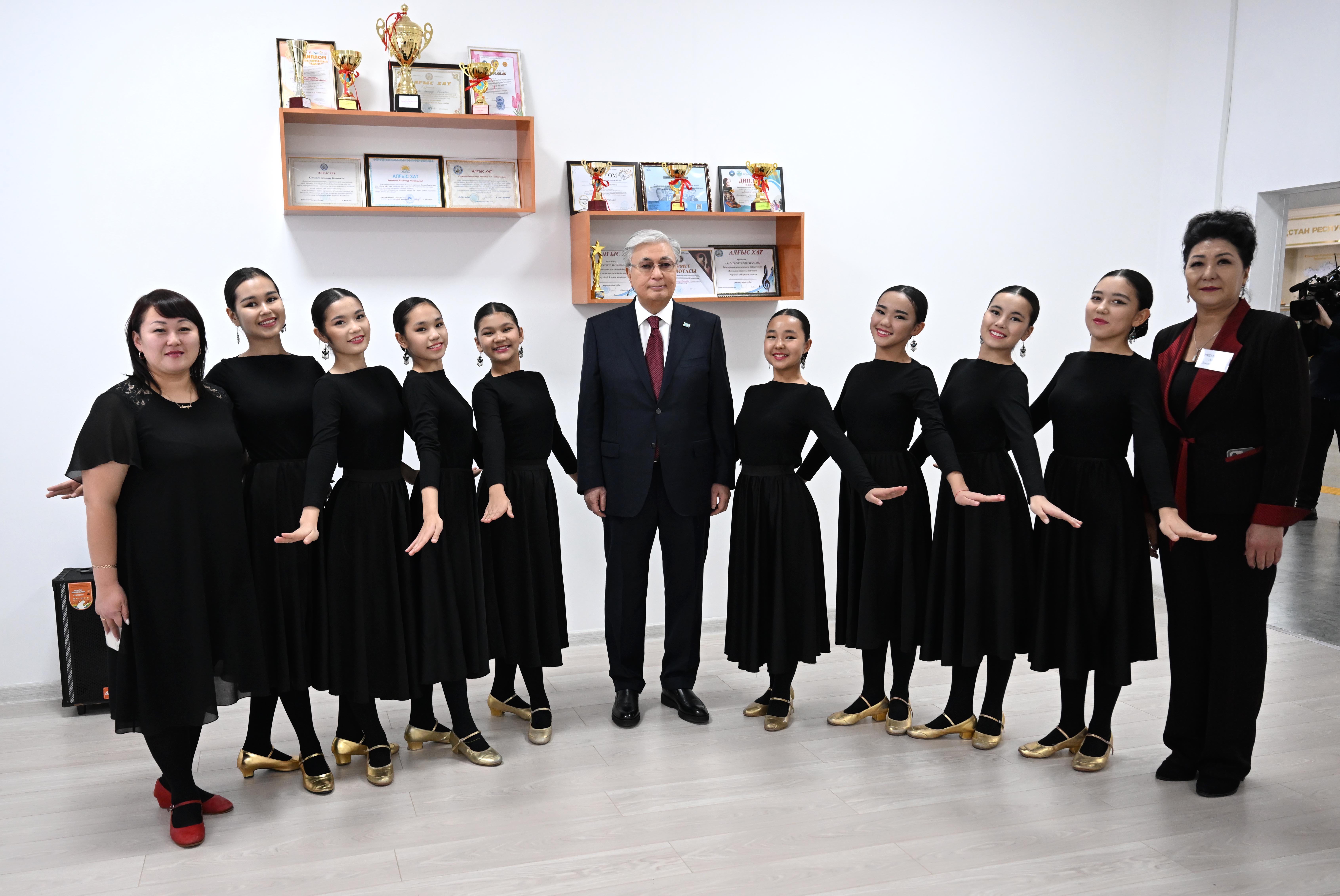 Мемлекет басшысы ауыл кітапханасымен танысты. Сондай-ақ өнерпаз балалармен жүздесіп, еліміздің лайықты азаматы болып өсуіне тілектестік білдірді.