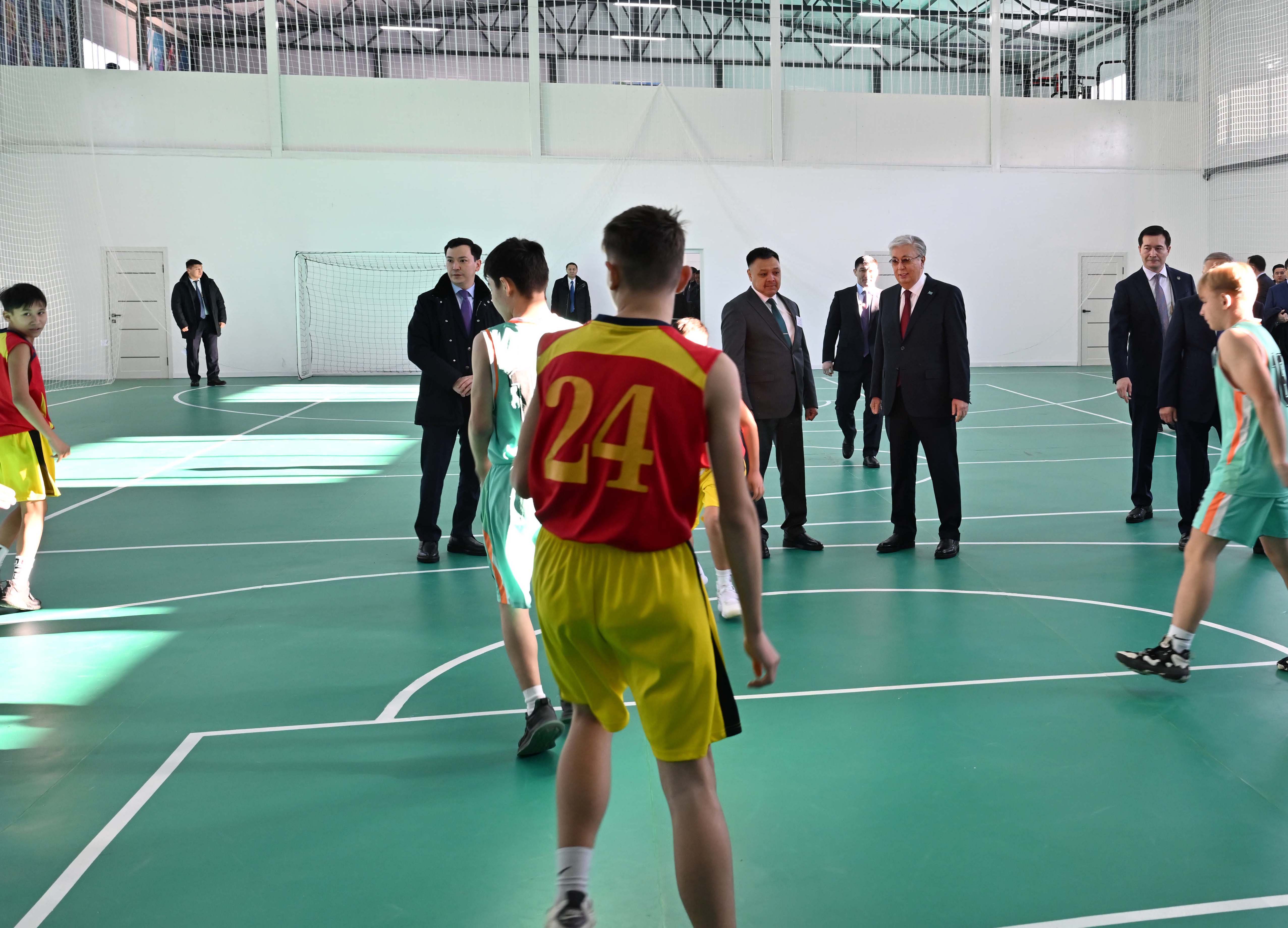 Президент ауыл балаларымен әңгімелесіп, мемлекет тарапынан өскелең ұрпақтың алаңсыз білім алуына, спортпен айналысуына қолайлы жағдай жасалатынын жеткізді.
