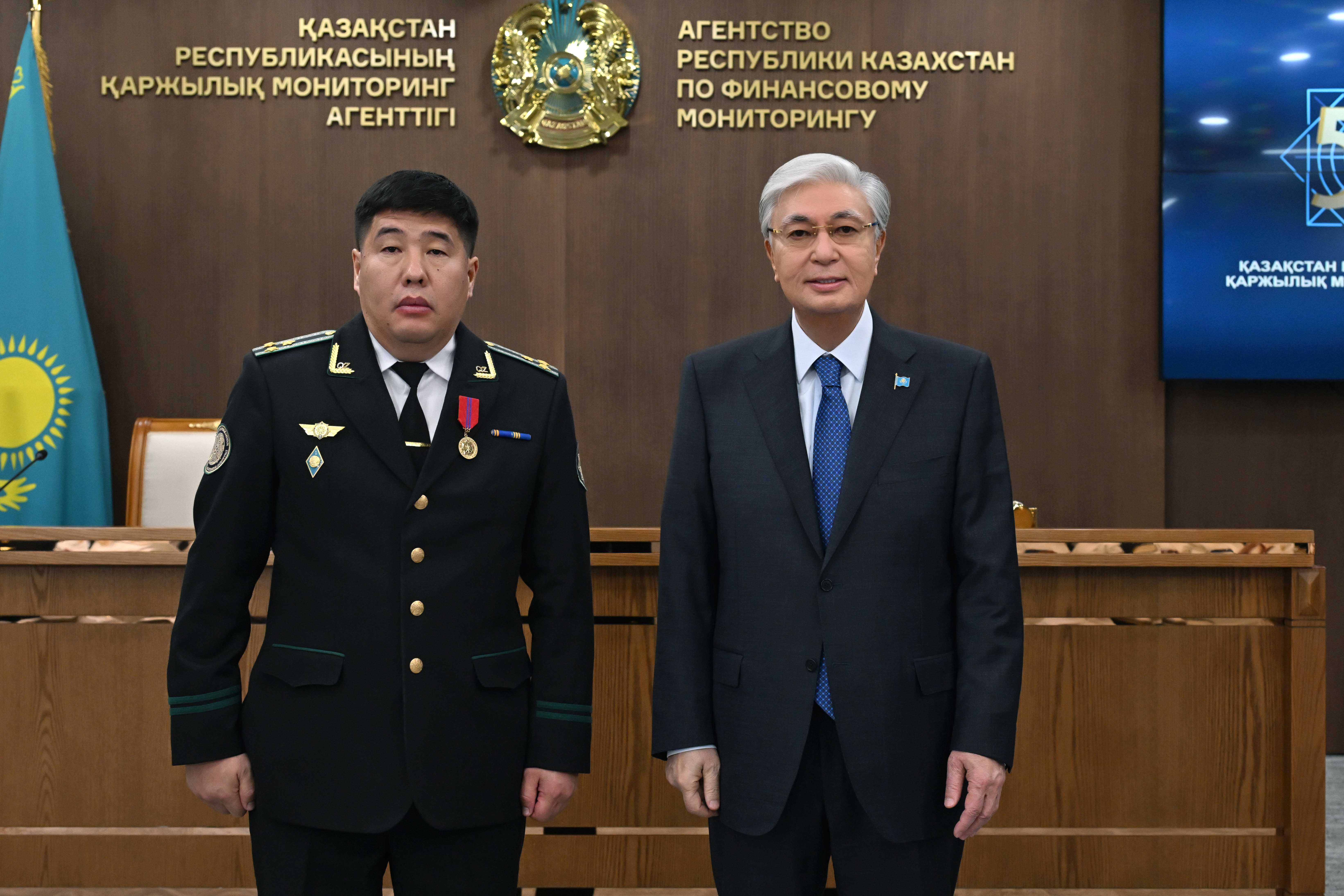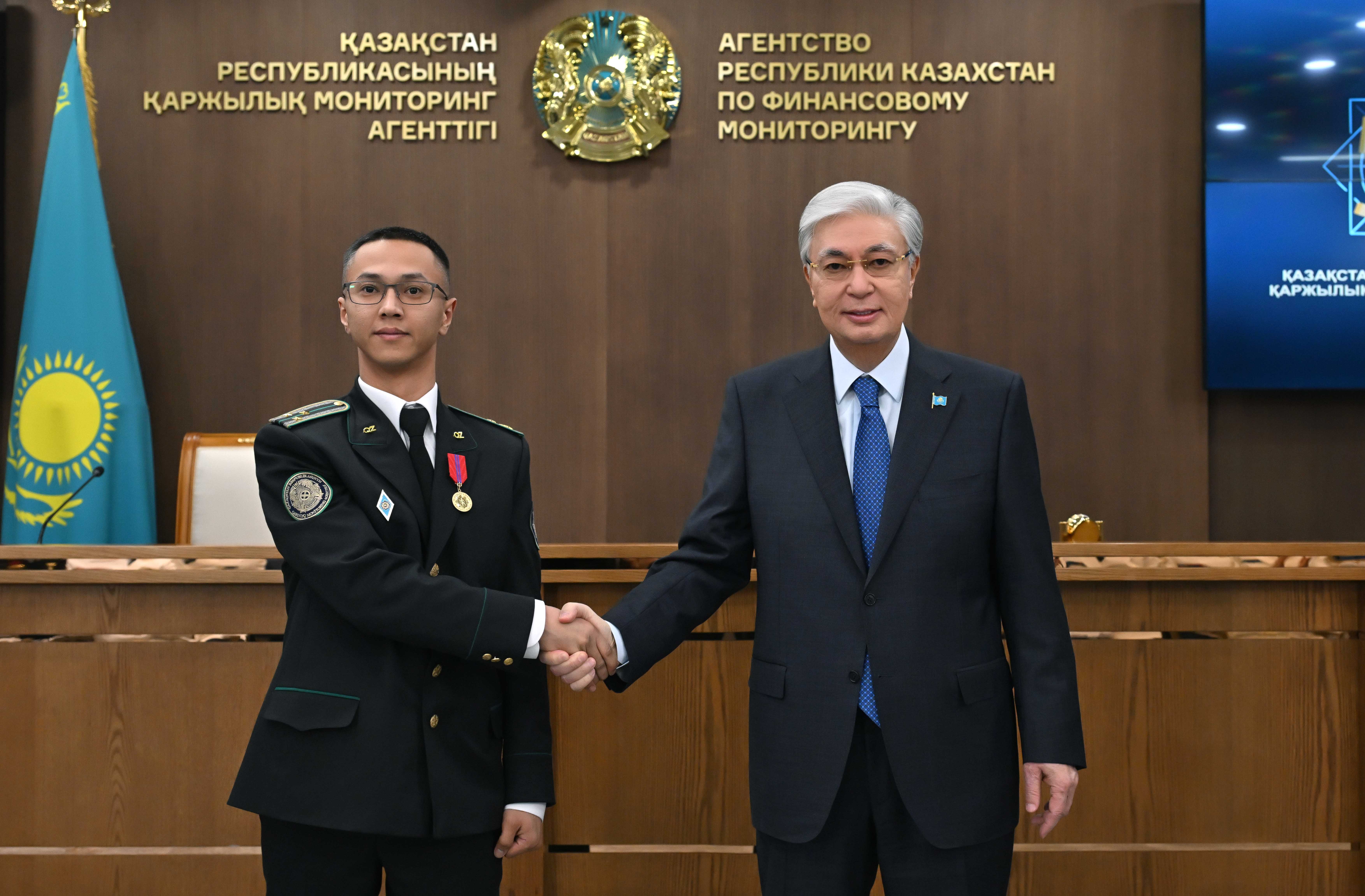 Президент қызметтік борышын үлгілі атқарғаны үшін Қаржылық мониторинг агенттігінің бір топ қызметкерін мемлекеттік наградамен марапаттады.