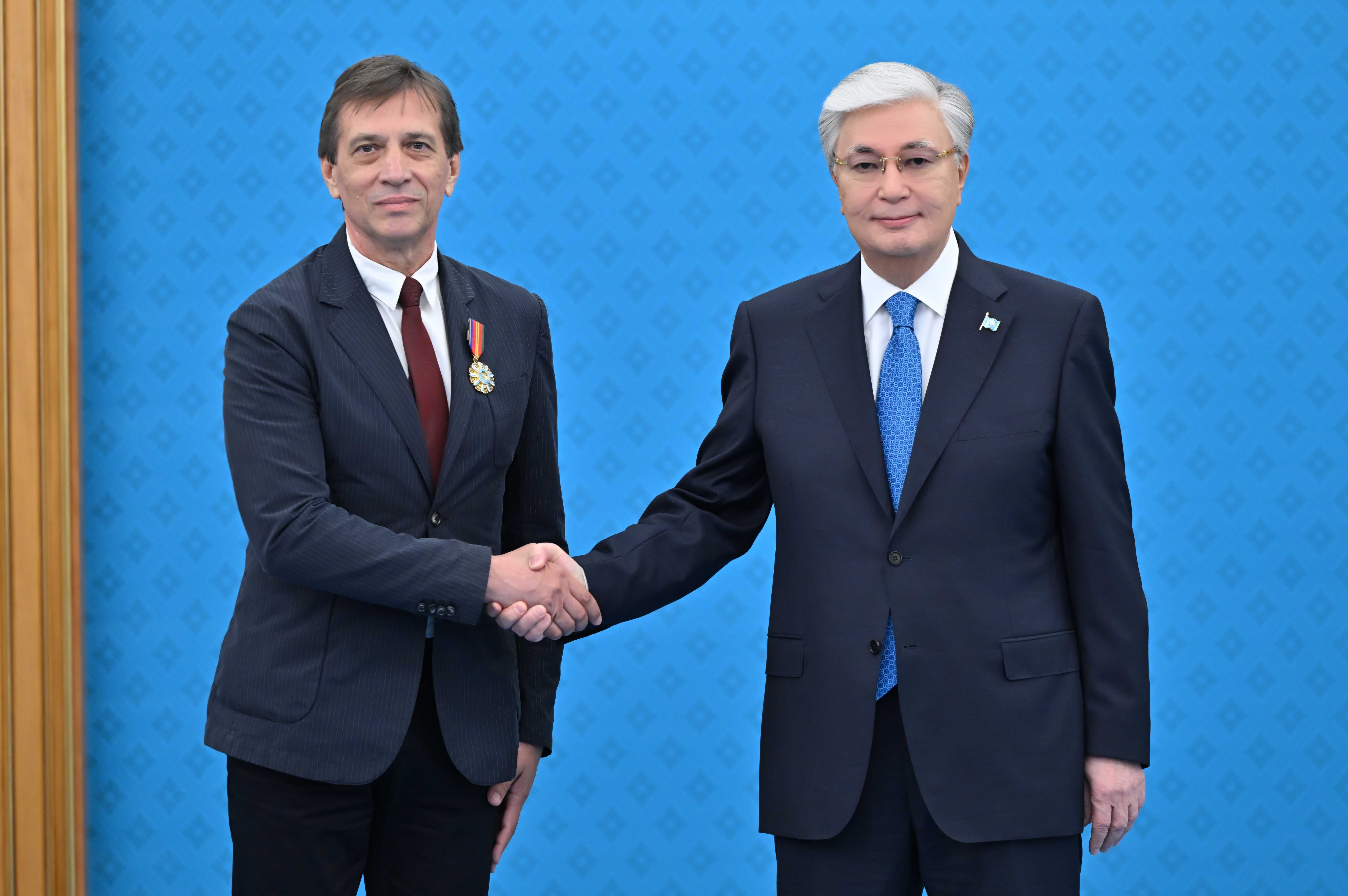 – Бүгін ұлттық өнердің майталманы Қайрат Байбосыновқа «Қазақстанның Еңбек Ері» атағы беріледі. Халқымыздың жан-дүниесін айшықтай көрсететін халық өнері әрдайым төрде болуы керек. Бұл марапат – әйгілі әншінің өлшеусіз еңбегі мен ұлттық өнерімізге деген ерекше құрметтің белгісі, – деді Қасым-Жомарт Тоқаев.