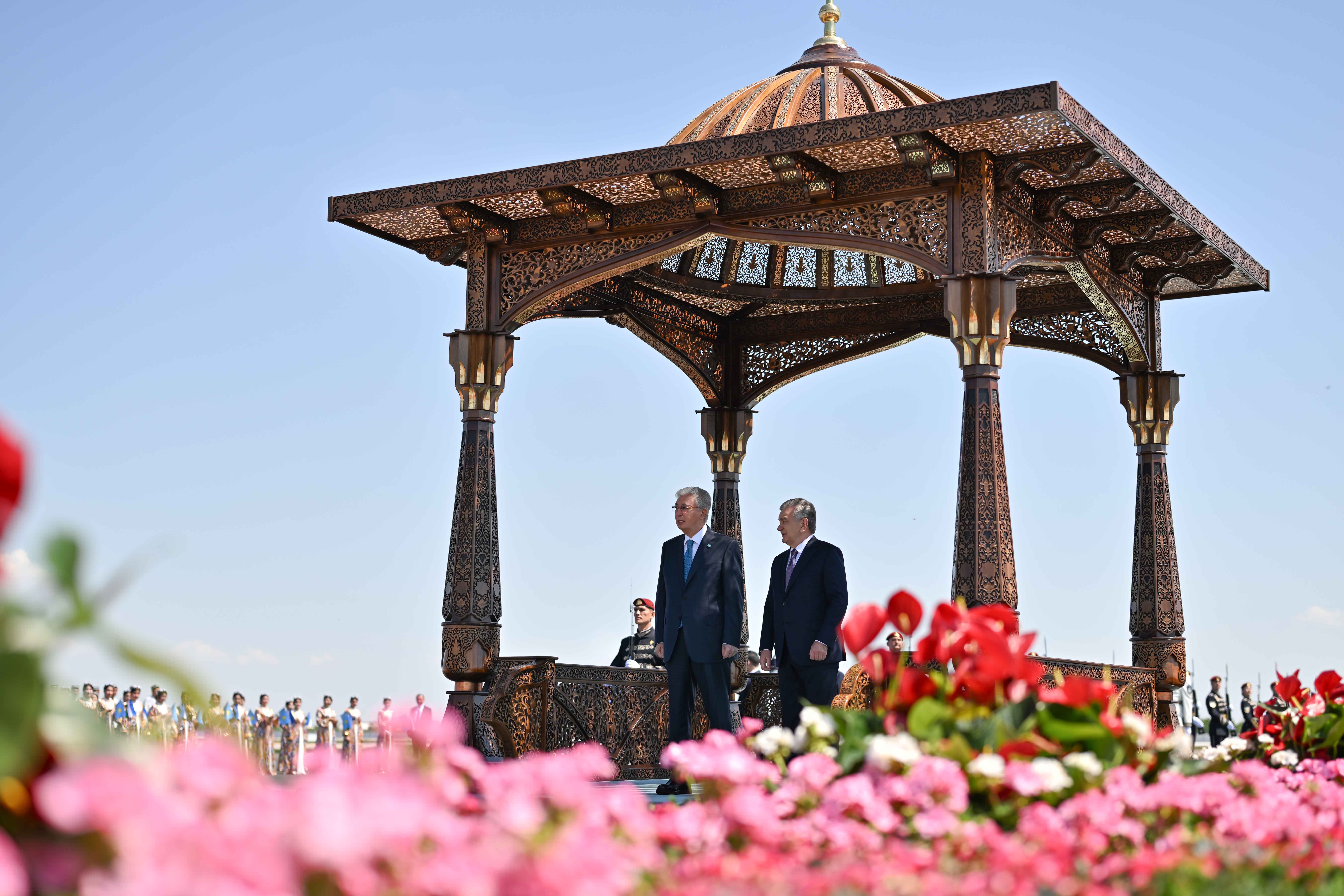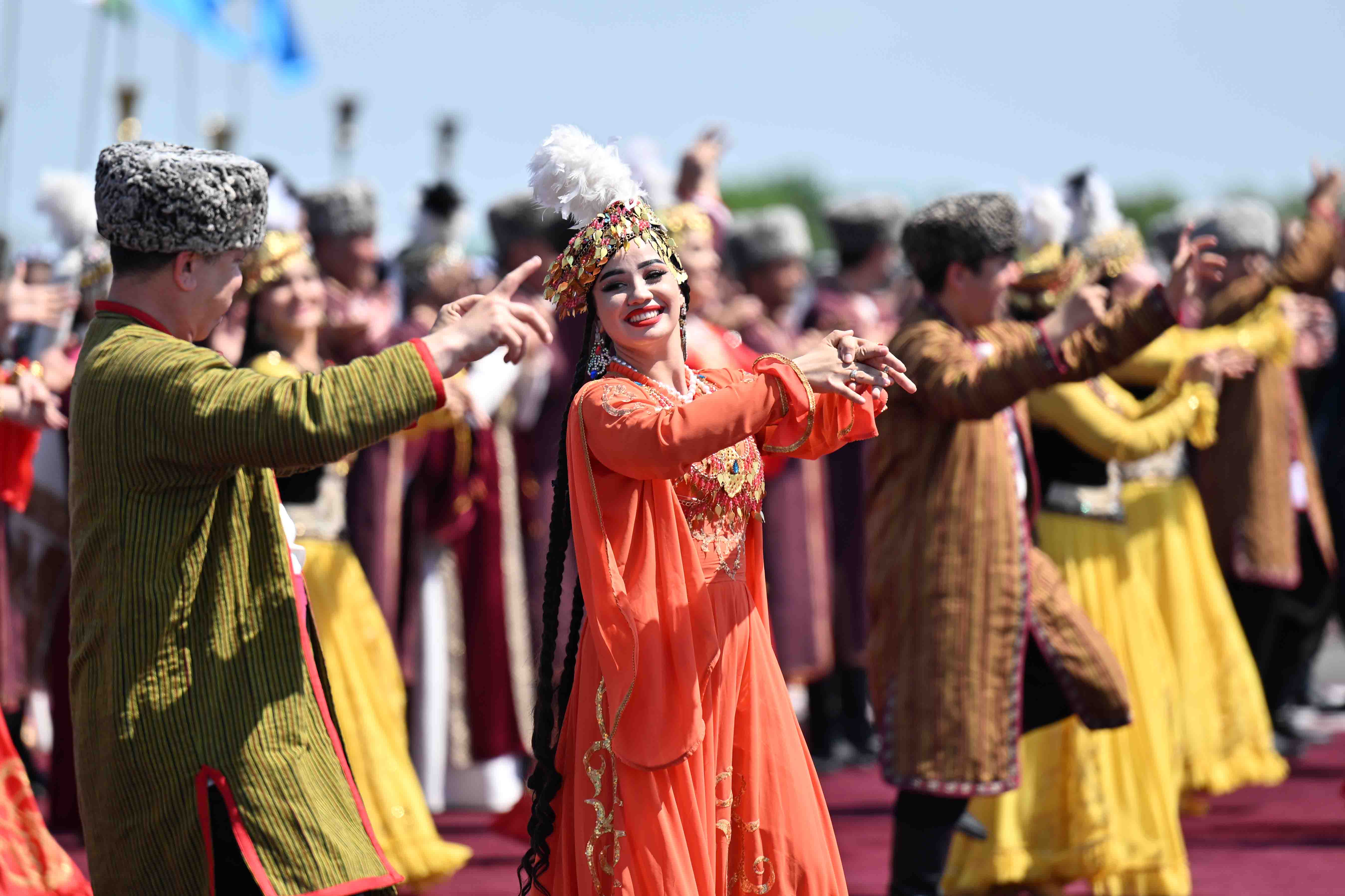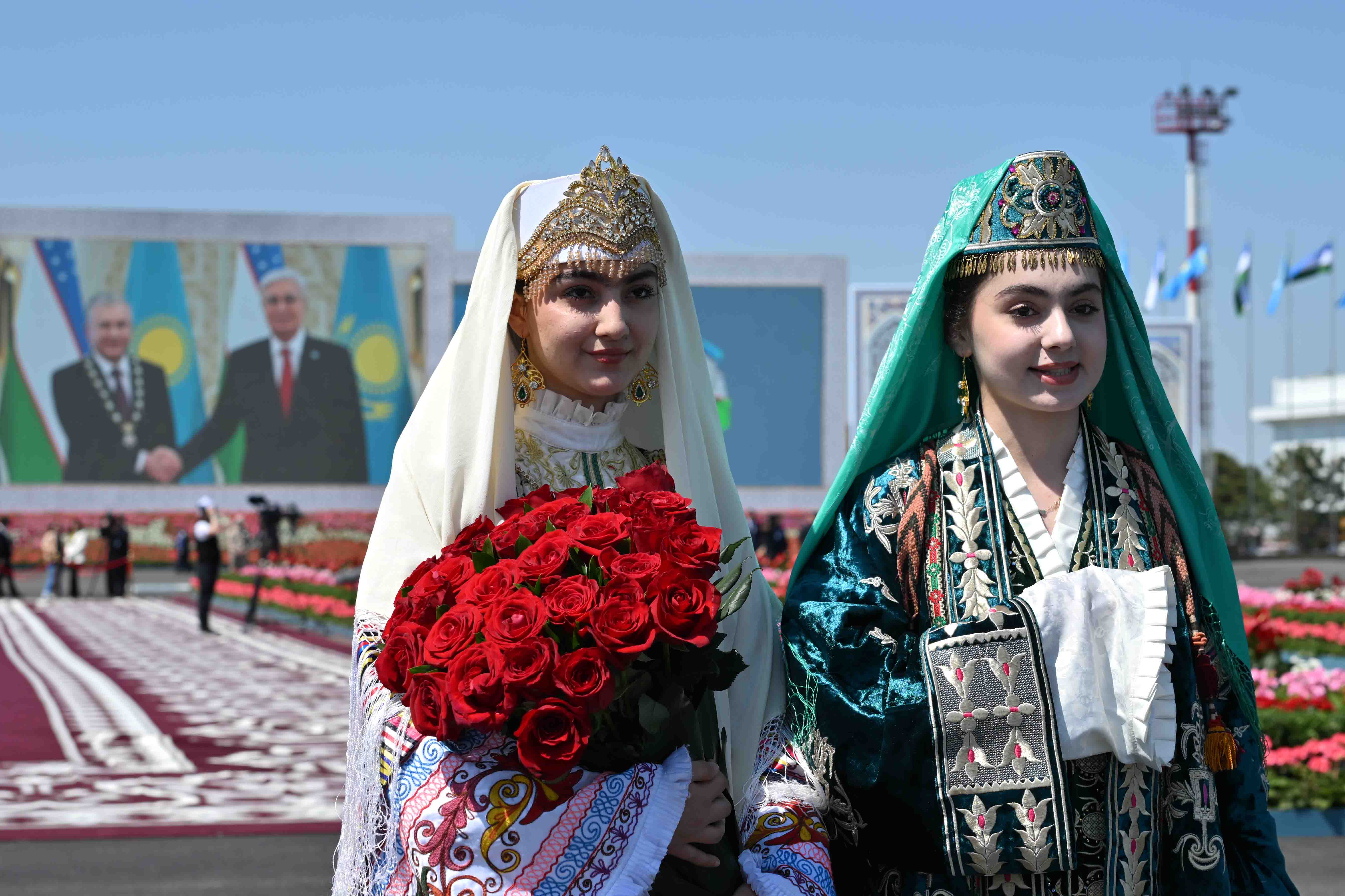 Салтанатты қарсы алу рәсімінде Қазақстан Президентінің құрметіне ұлттық ән мен би орындалды.