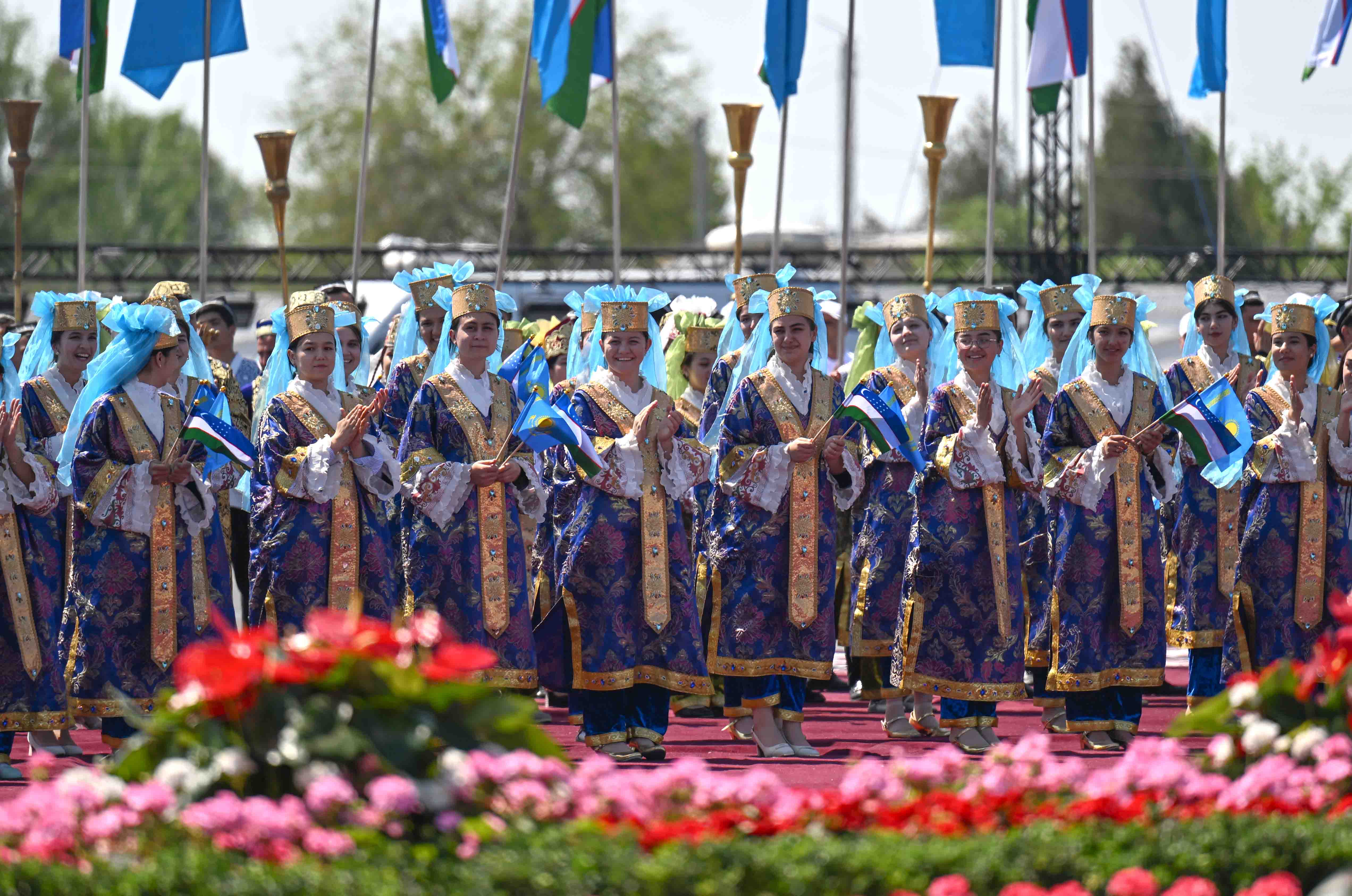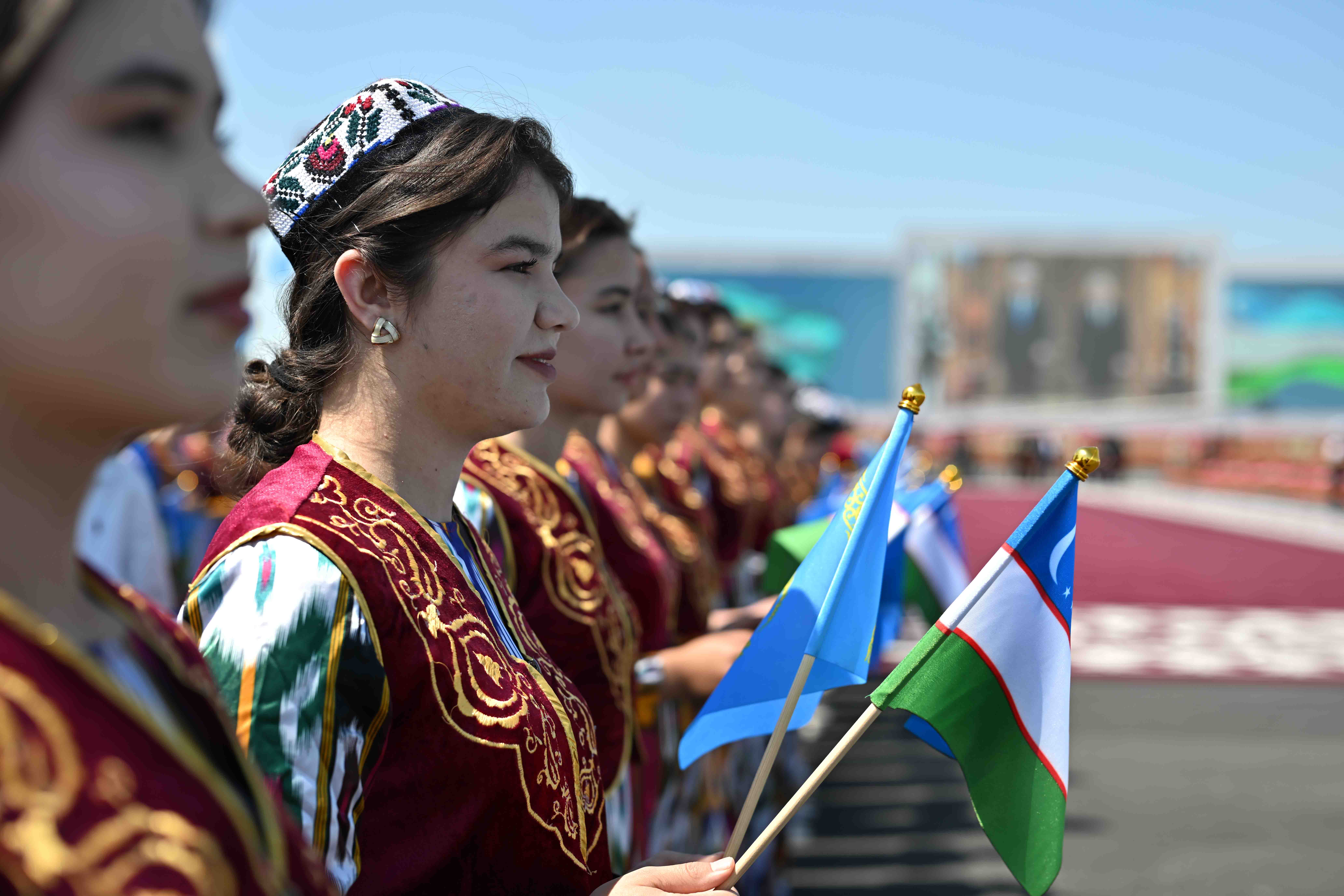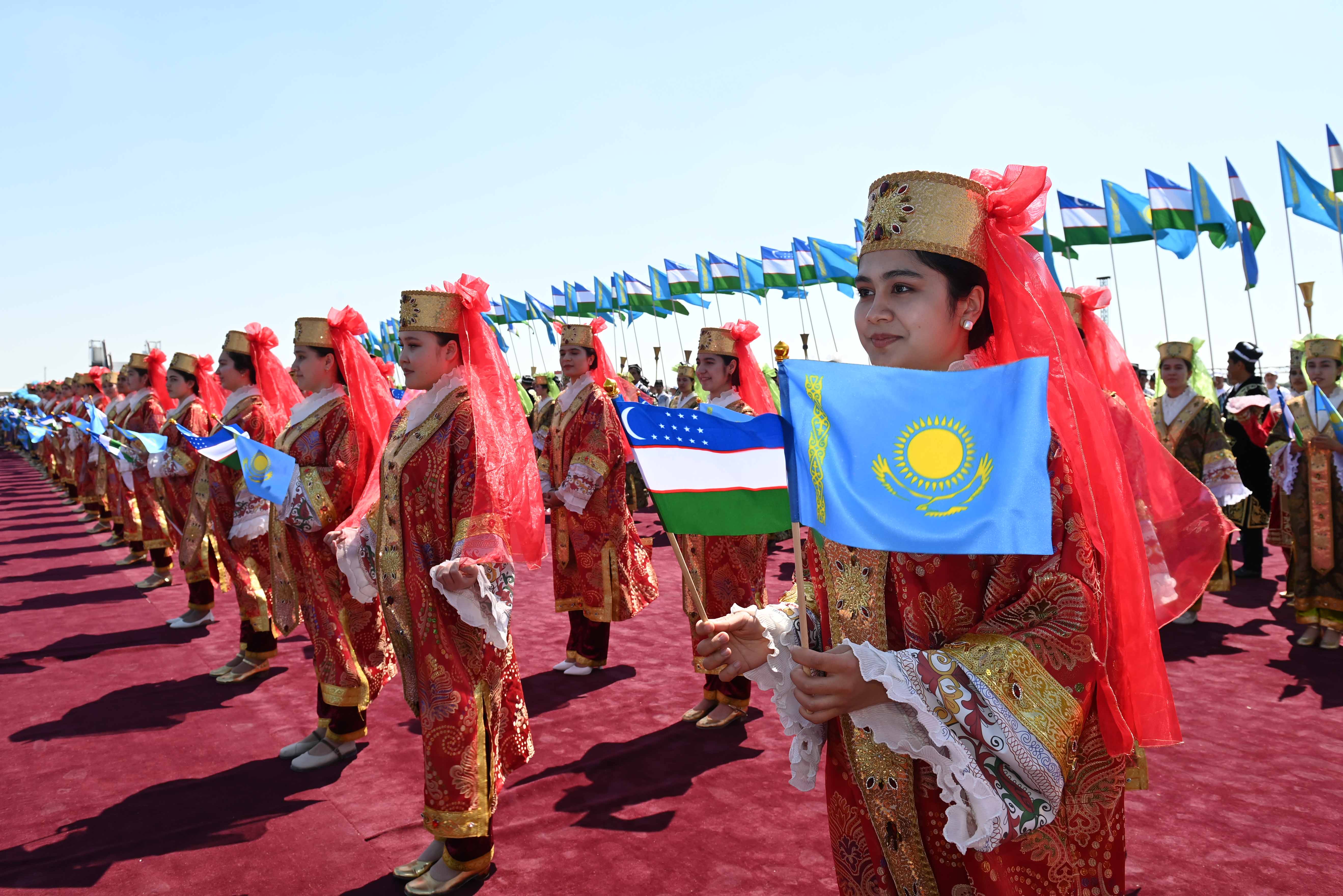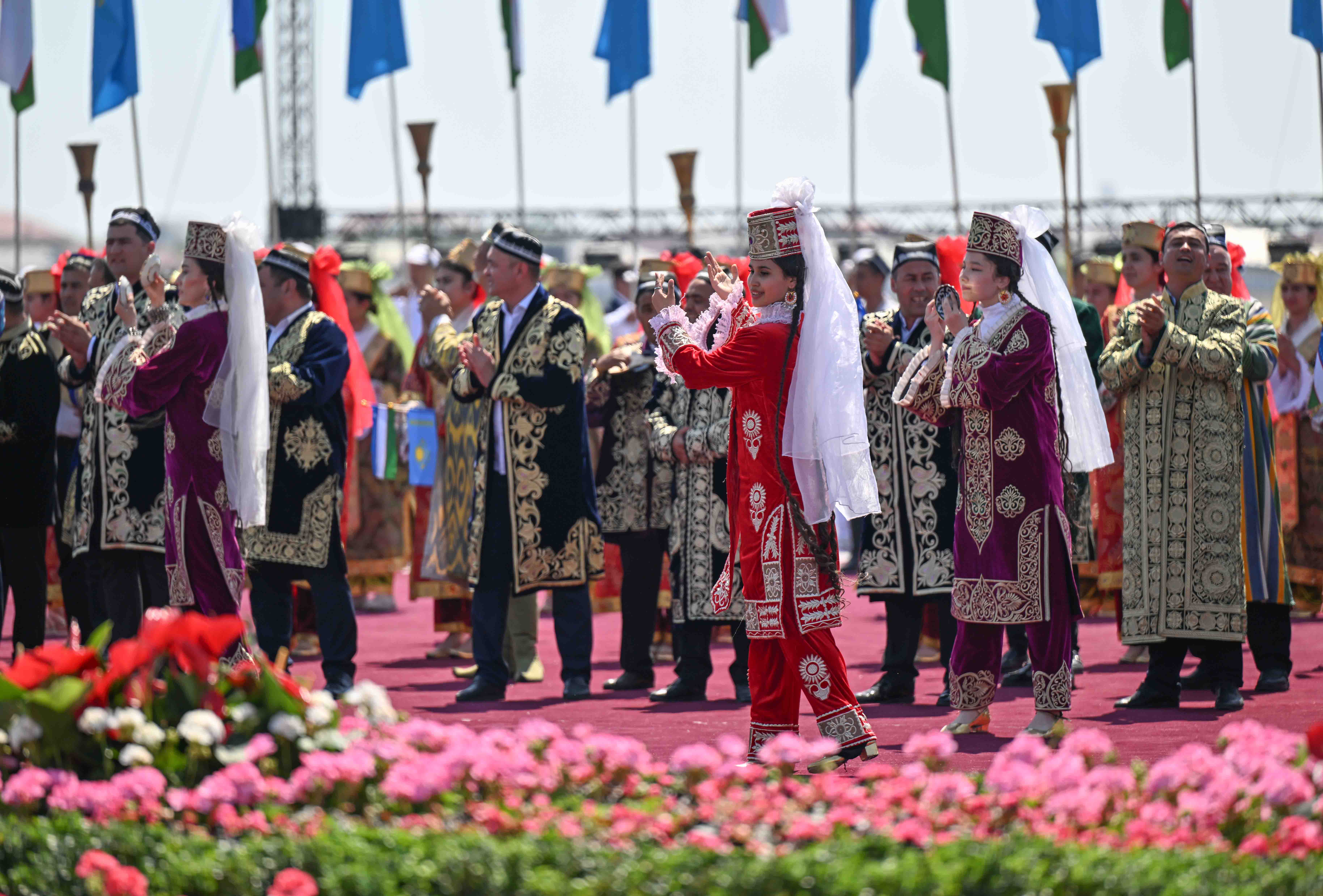 Салтанатты қарсы алу рәсімінде Қазақстан Президентінің құрметіне ұлттық ән мен би орындалды.