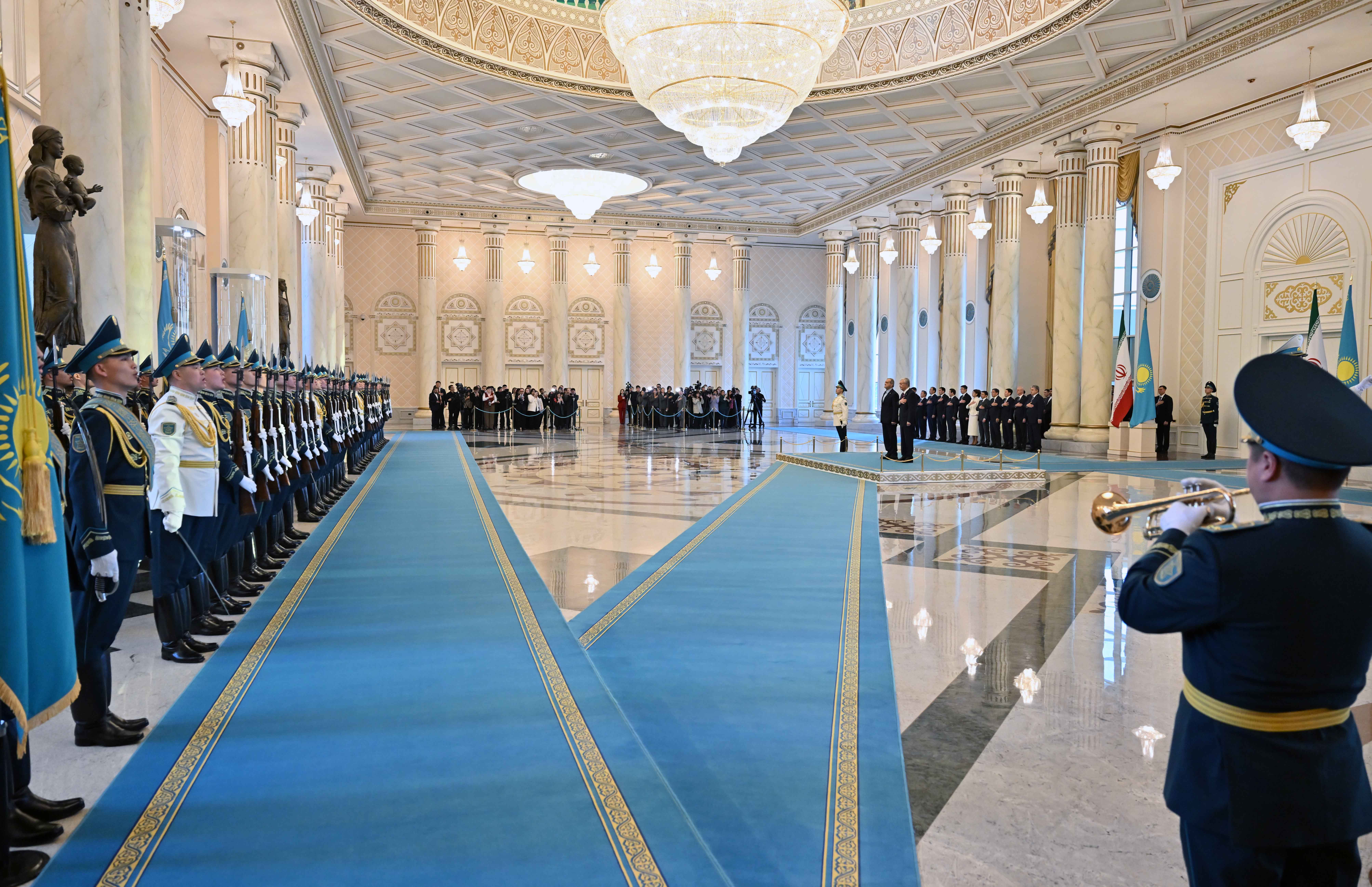 Ақордада Қазақстанға ресми сапармен келген Иран Ислам Республикасының Президенті Масуд Пезешкианды қарсы алу рәсімі өтті.