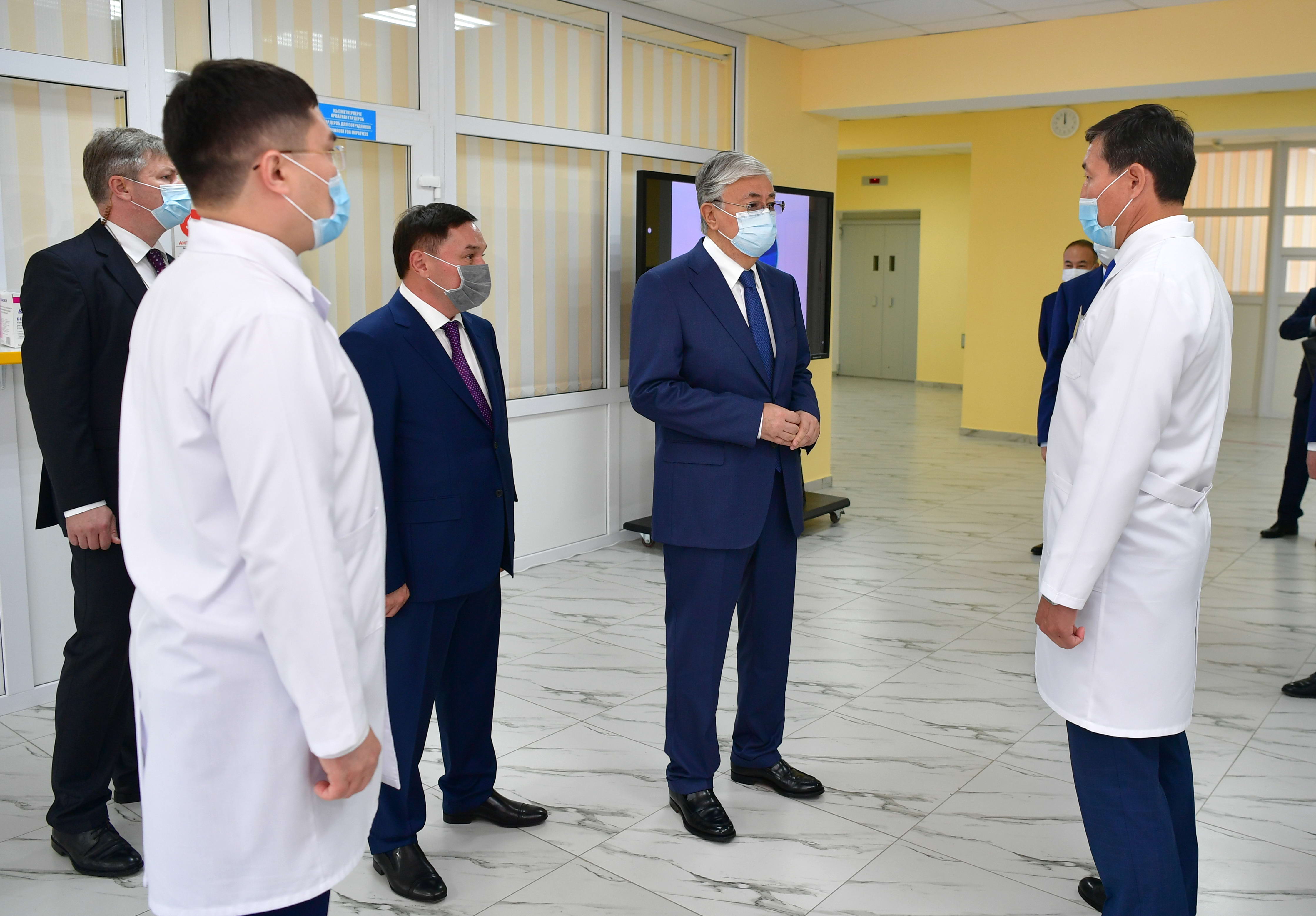 Мемлекет басшысы облыста медицина инфрақұрылымы жақсы қарқынмен дамып, жаңа нысандар бой көтеріп жатқанын атап өтті. Оның айтуынша, жоспарлы түрде ем алатын азаматтарға, жүрек-қан тамырлары дертімен және қатерлі ісікпен ауыратын науқастарға көрсетілетін медициналық қызмет түрлері ковид кезеңіне дейінгі деңгейде болуы тиіс.