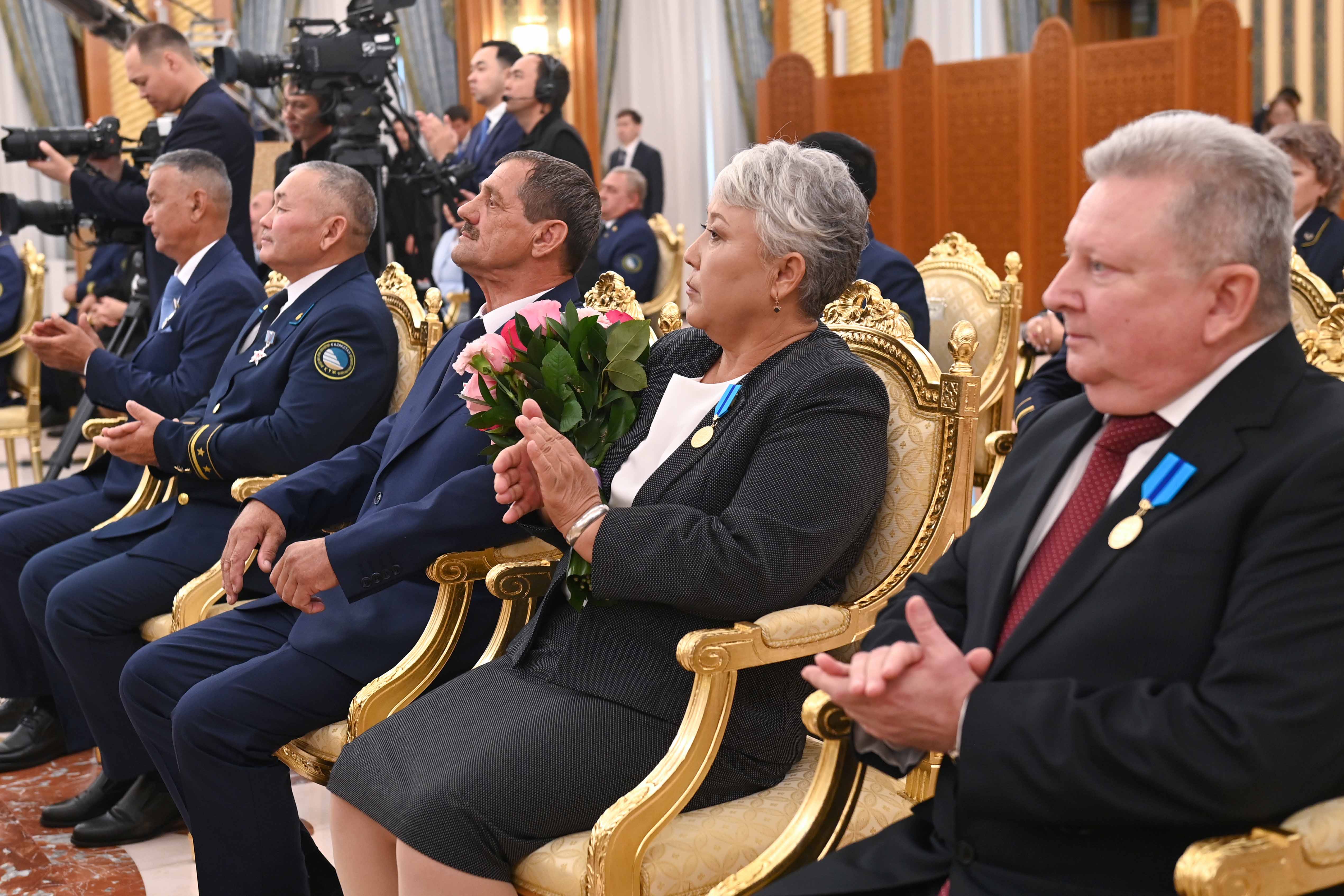 Сондай-ақ былтыр мемлекеттік наградалар жүйесіне 9 жаңа құрметті атақ енгізілді. Соның бірі – «Қазақстанның көлік саласының еңбек сіңірген қайраткері». Бүгін бұл құрметті атақ еңбек ардагерлері – Борис Исинамановқа, Владимир Аверкинге, Қанат Шайминге және Андрей Горватқа берілді.