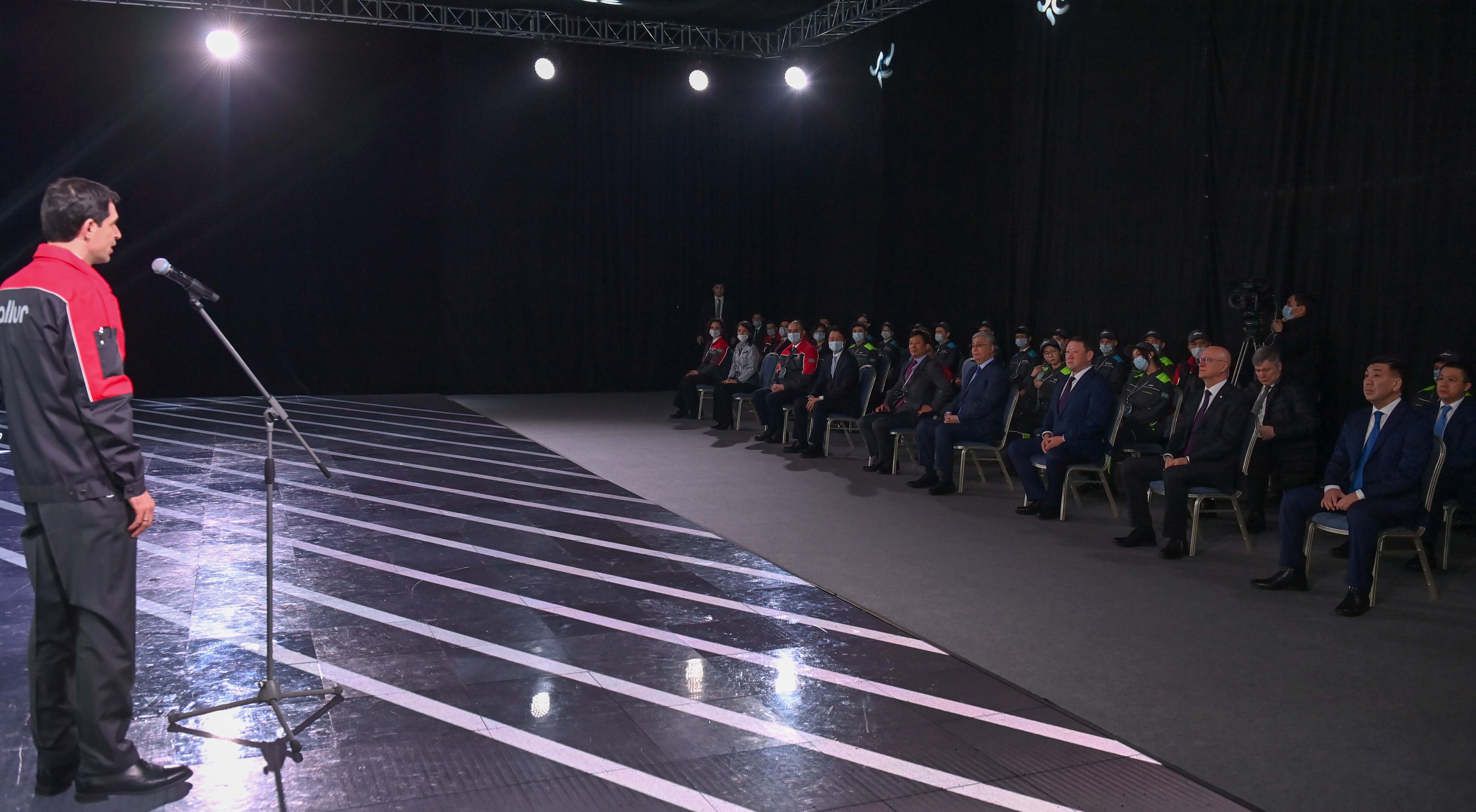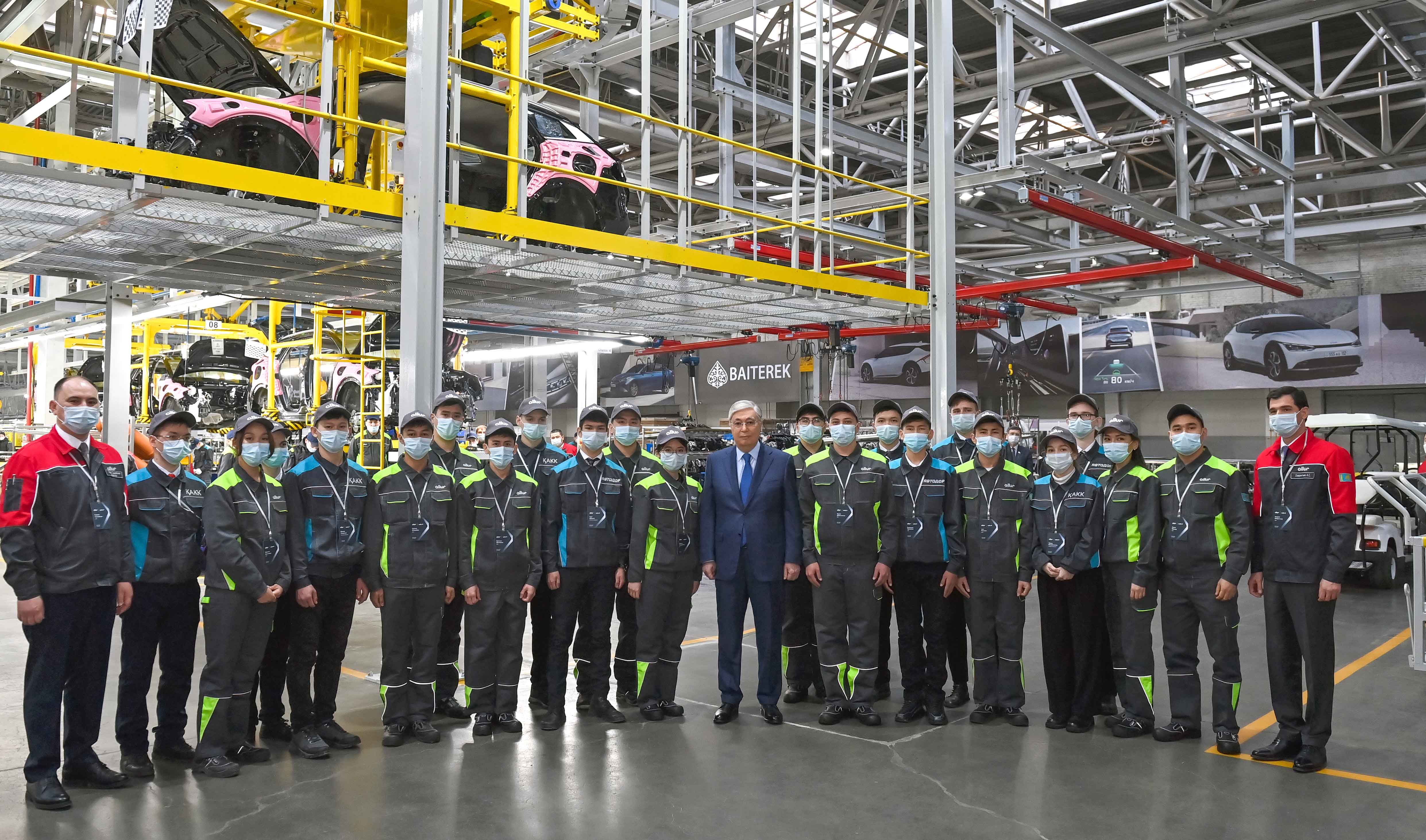 Президент зауытты аралау барысында жас жұмысшылармен әңгімелесіп, оларға қолдау білдірді.