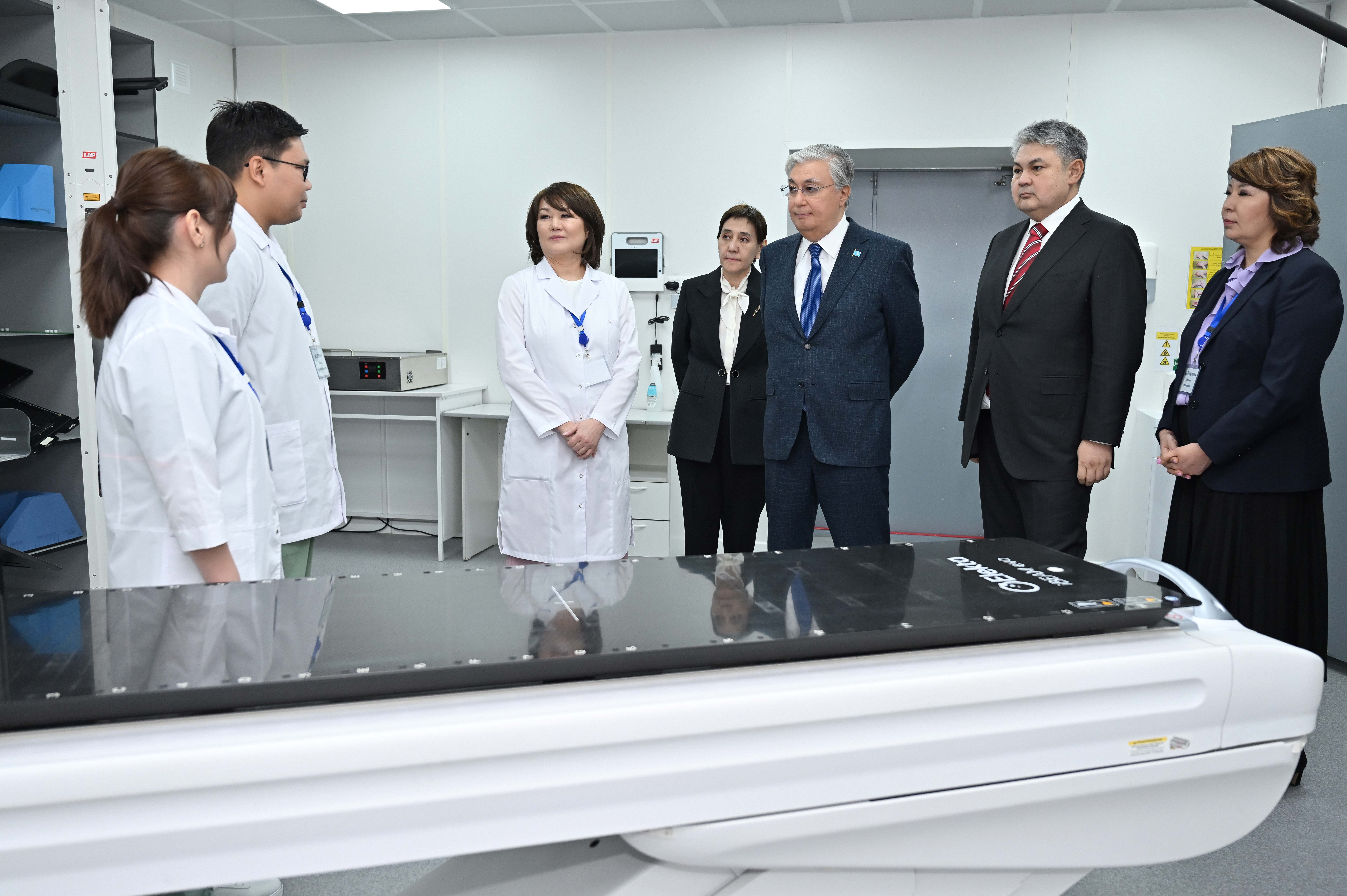 Қасым-Жомарт Тоқаев Шығыс Қазақстан облысына жұмыс сапары барысында Өскемен қаласындағы көпбейінді Онкология және хирургия орталығының базасында ашылған Сәулелік терапия және диагностика орталығына барды.