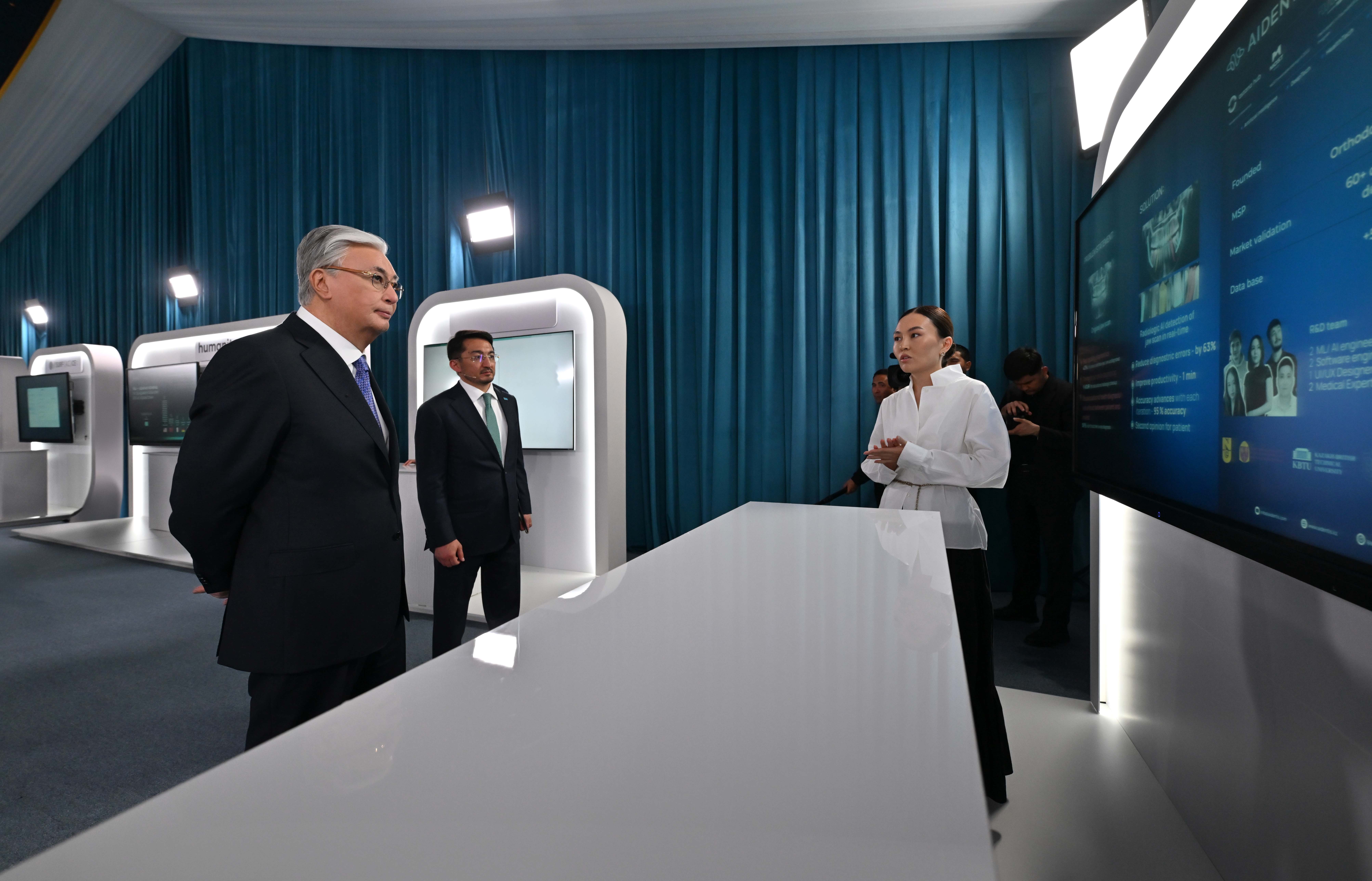 Президент Қасым-Жомарт Тоқаевқа Ұлттық суперкомпьютер орталығында MedTech, EdTech, GovTech және өнеркәсіп салаларындағы отандық IT-шешімдер таныстырылды.