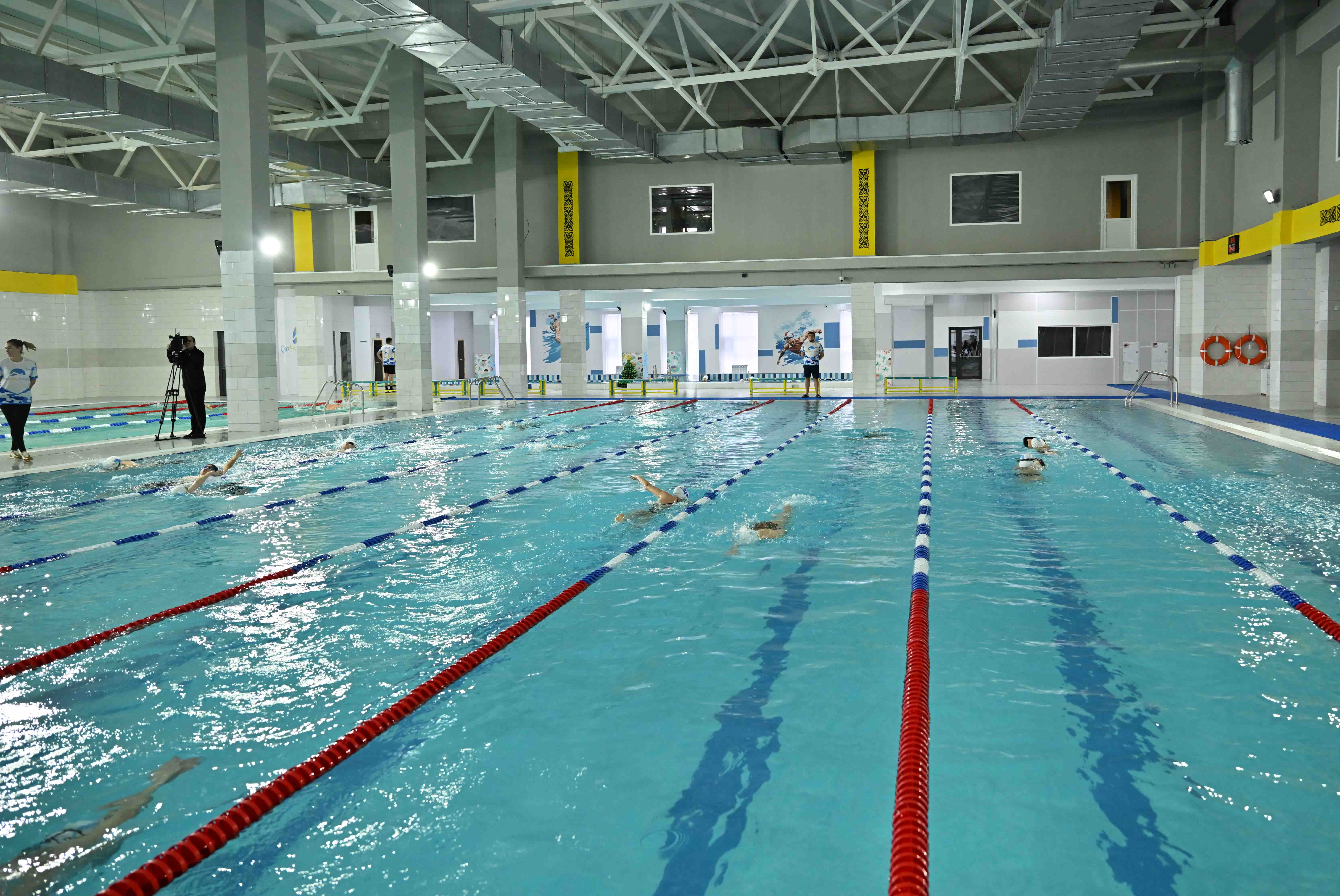 Бұдан бөлек, нысан жүзуге қажетті машықтарды шыңдап, бұлшық еттерді ширататын арнаулы жаттығу құралдарымен жабдықталған.