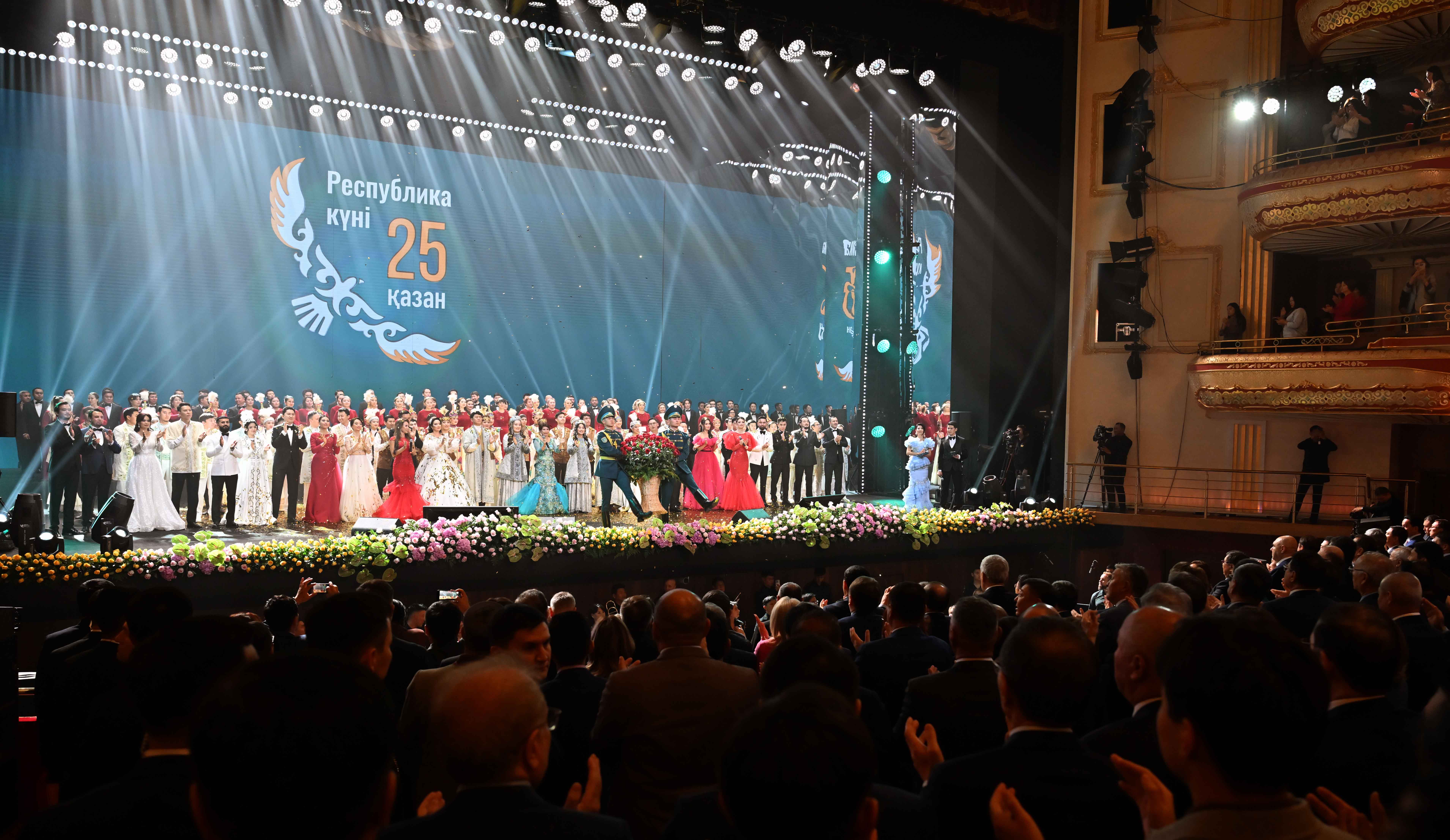 Президент Қасым-Жомарт Тоқаев Республика күніне арналған «Қастерлі Отан – Қазақстан» атты мерекелік концертке барды. «Астана Опера» театрында өткен салтанатты кеште елімізге танымал мәдениет қайраткерлері мен түрлі шығармашылық ұжымдар өнер көрсетті.