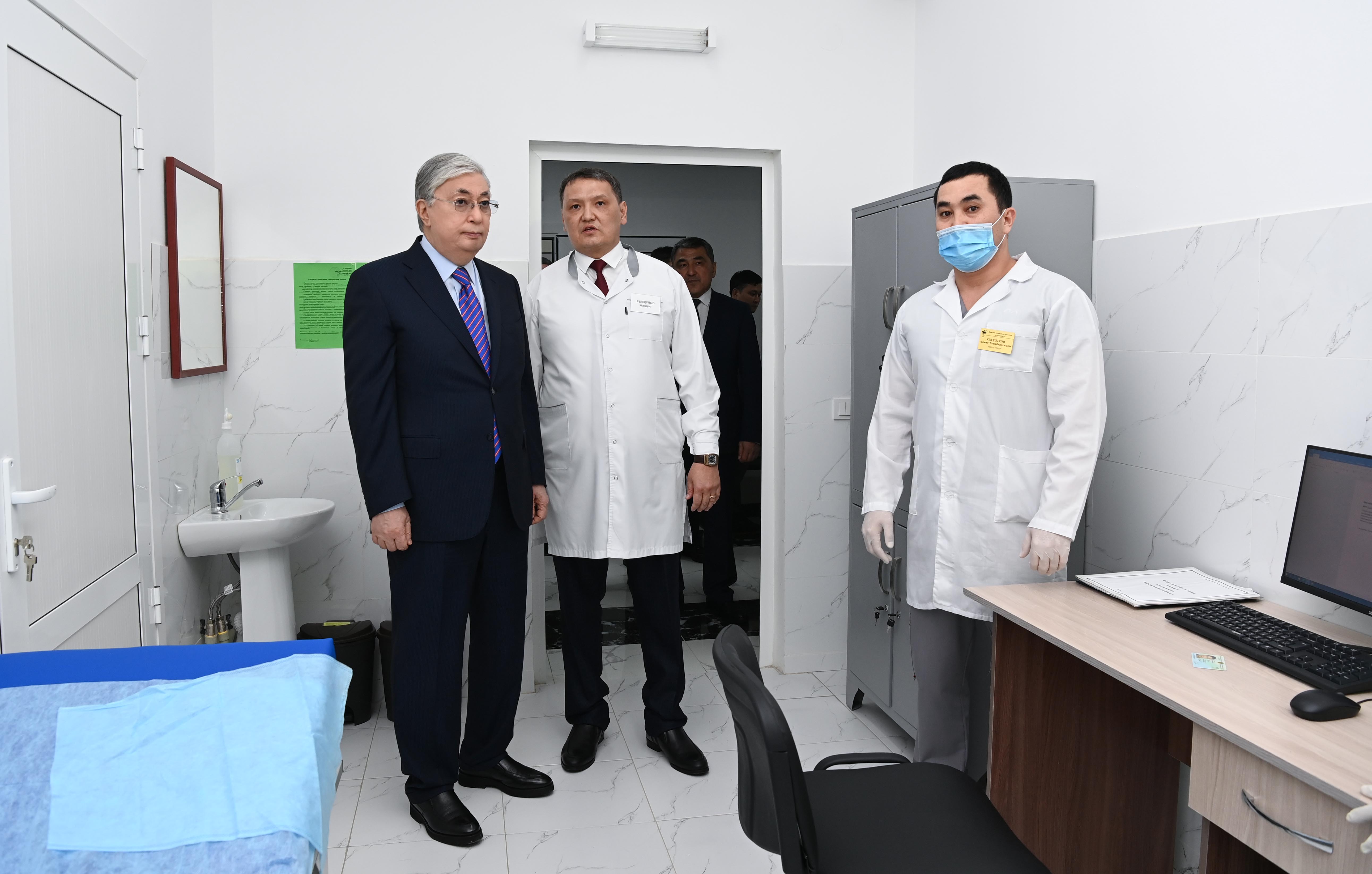 Президент Байзақ ауданы Сарыкемер ауылындағы жаңа емхананың жұмысымен танысты. Қасым-Жомарт Тоқаевқа таяуда салынған медициналық мекемеде 125 мың адам тіркеуде тұрғаны жөнінде баяндалды.