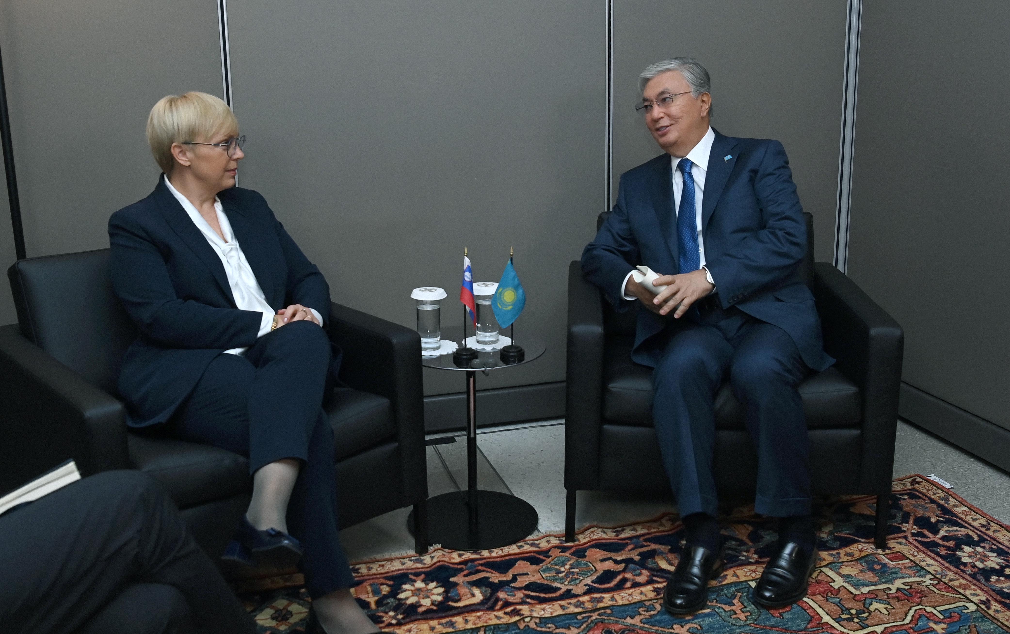 Қасым-Жомарт Тоқаев БҰҰ Бас Ассамблеясының 78-сессиясы аясында Словения Президенті Наташа Пирц-Мусармен кездесті.