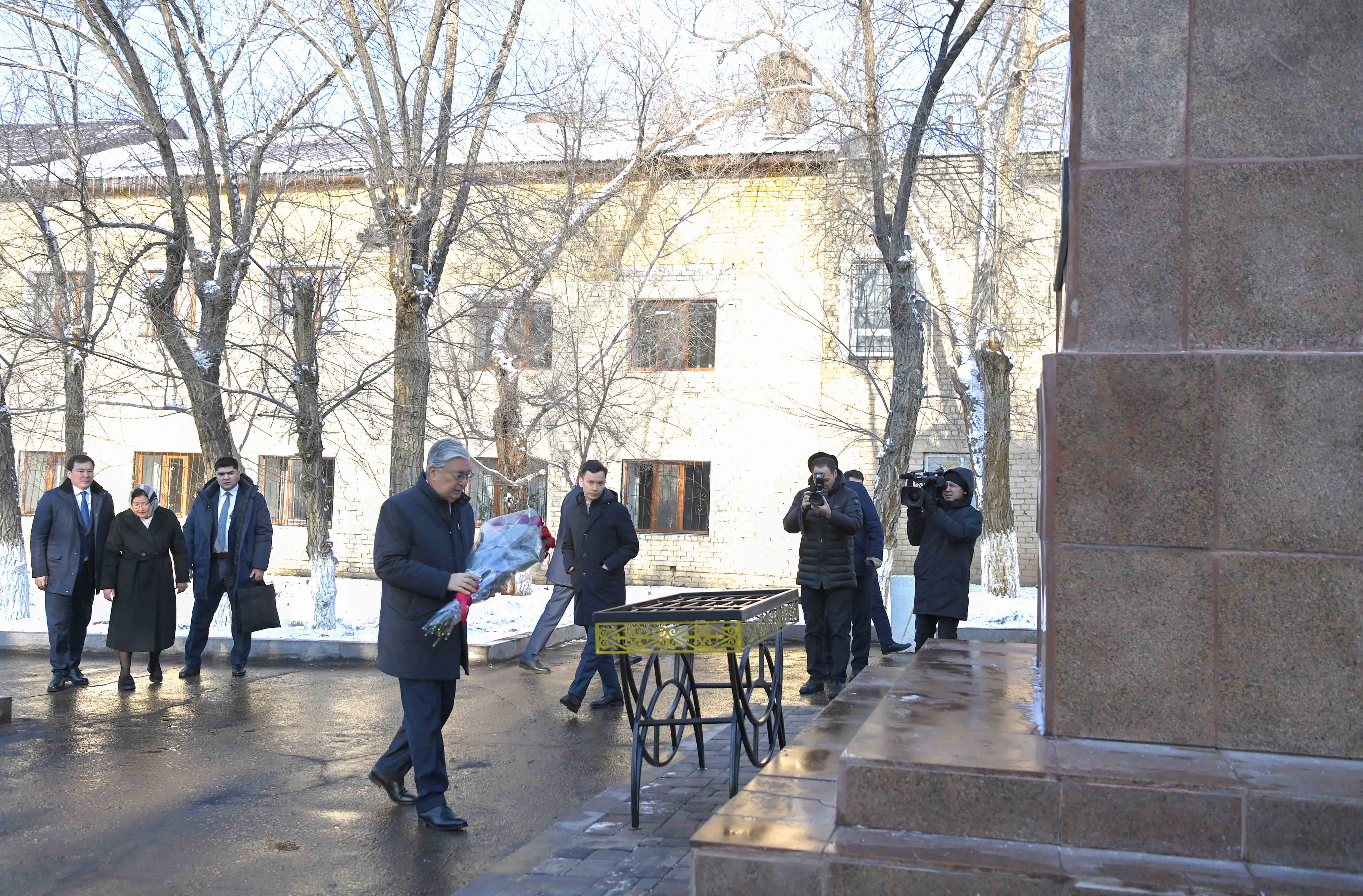 Мемлекет басшысы, ең алдымен, Тахауи Ахтанов пен Қуандық Шаңғытбаевтың ескерткіштеріне гүл шоғын қойды.