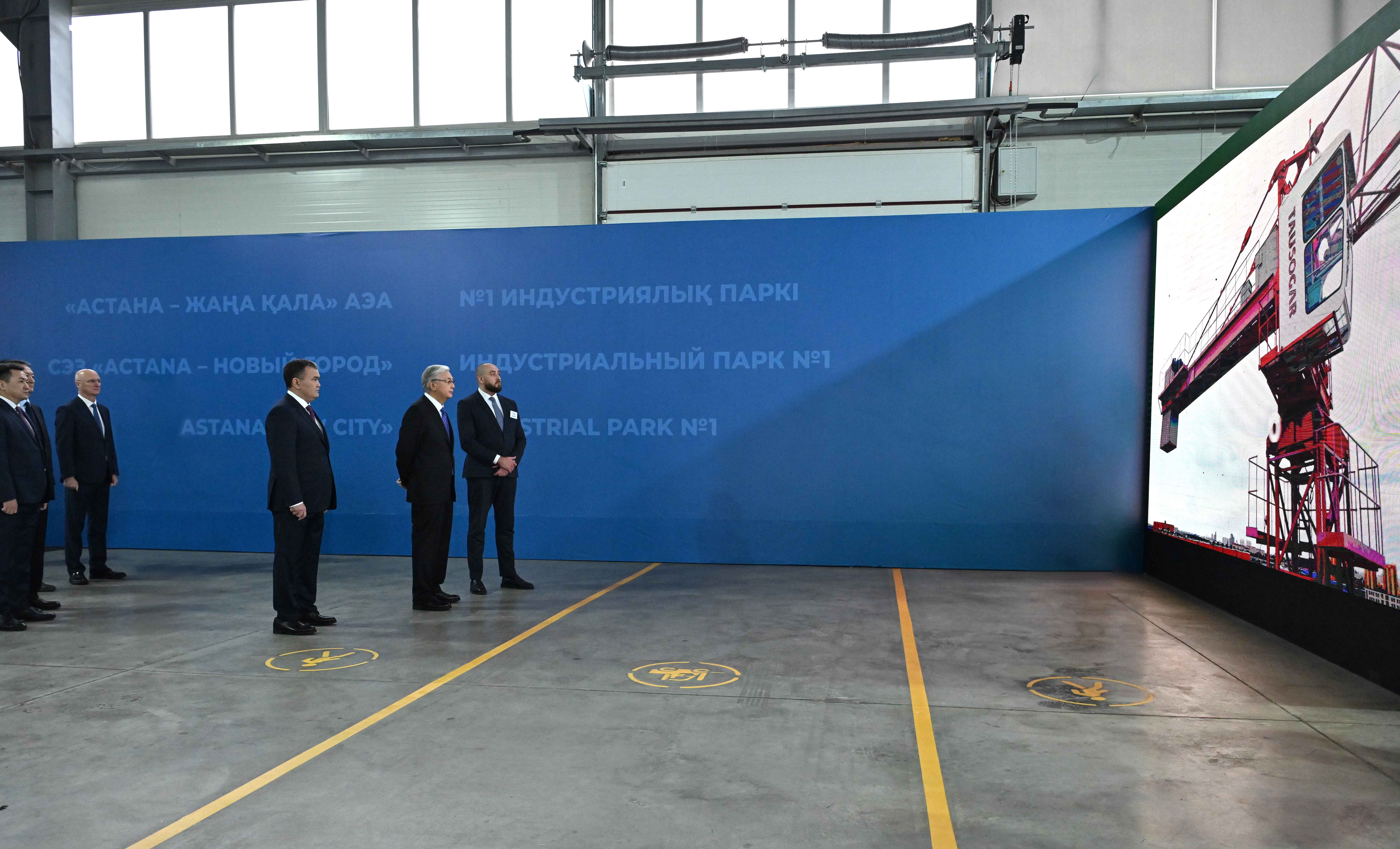 Елорда нысандарын аралау кезінде Қасым-Жомарт Тоқаев Tausogar зауытына барды. №1 Индустриалдық паркте орналасқан кәсіпорын құрылыс саласын заманауи жүк көтергіш машиналармен және механизмдермен қамтамасыз етеді. Президент елдегі ірі құрылыс компанияларына қажетті мұнара крандары мен эскалаторлар өндірісімен танысты. Қазір Tausogar зауытында жоғары білікті 44 маман еңбек етеді. Өндіріс орны жылына 200 лифт, 70 эскалатор және 70 мұнара кранын шығара алады. Мемлекет басшысы еңбек ұжымымен әңгімелесу барысында кәсіпорынның ел инфрақұрылымын дамытуға қосқан үлесін атап өтіп, оның алдағы уақытта бәсекеге қабілеттілігі арта түсетініне сенім білдірді.