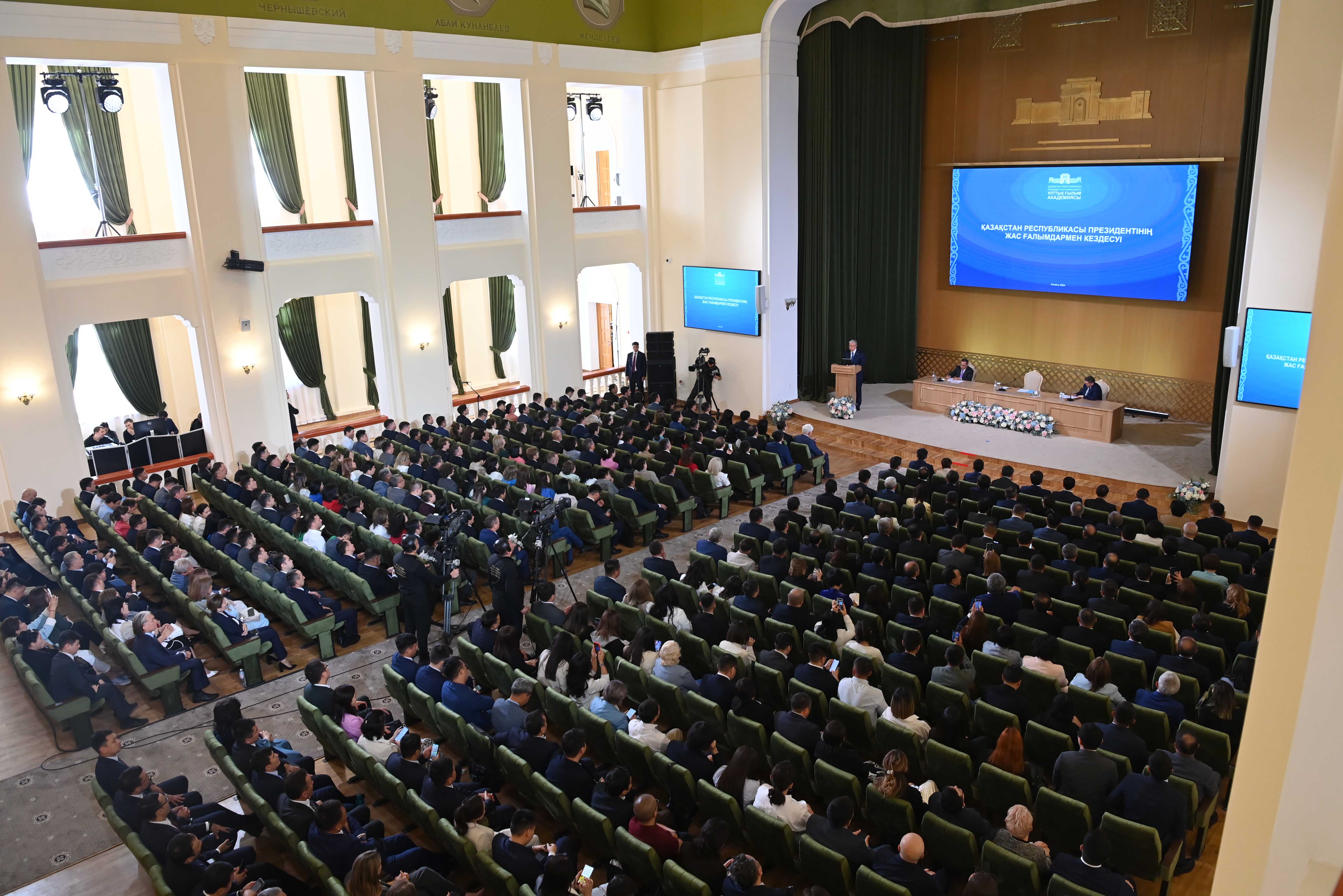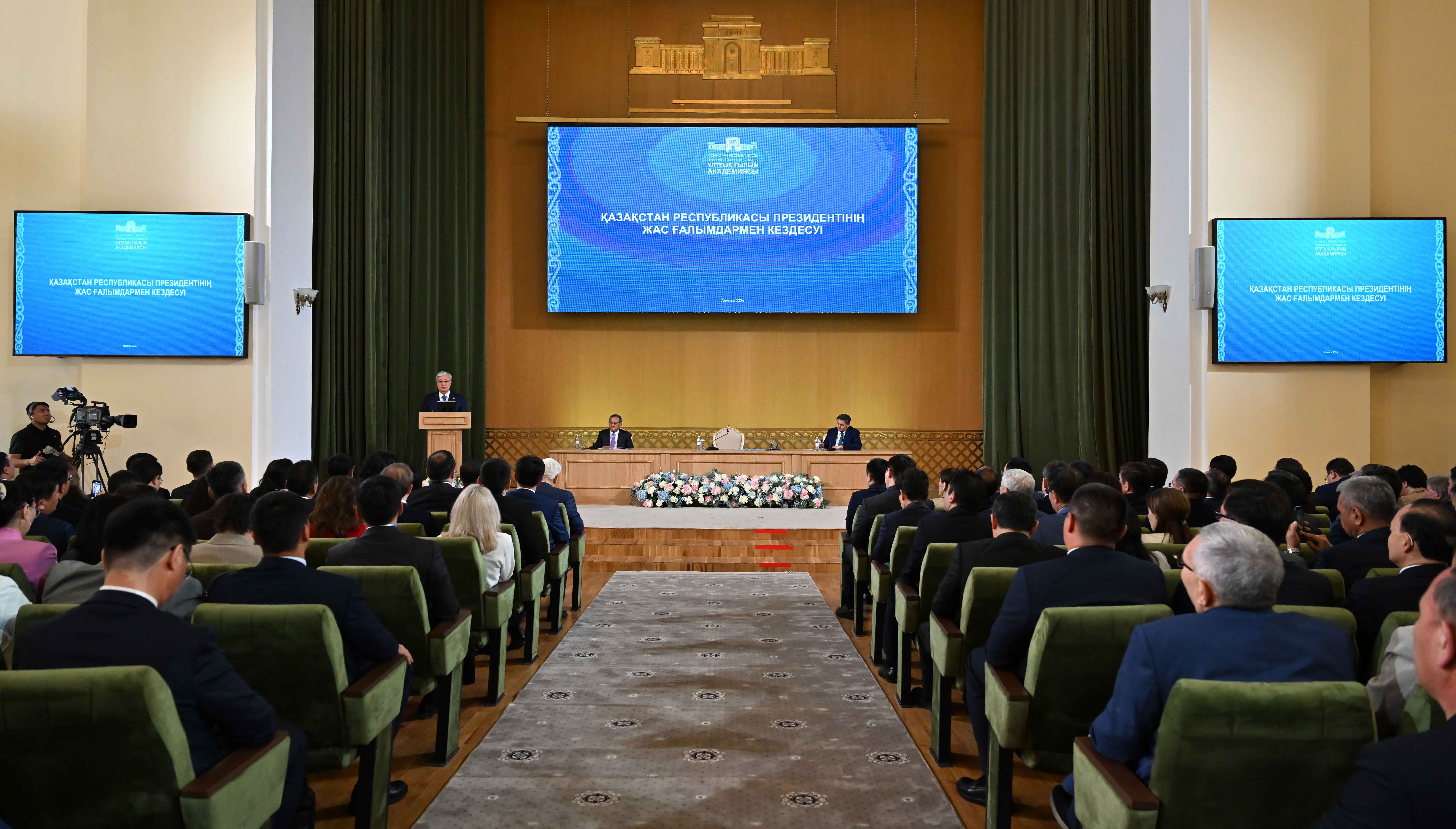 Бұдан кейін, Мемлекет басшысы «Ғылым ордасының» акт залында жас ғалымдармен кездесті.