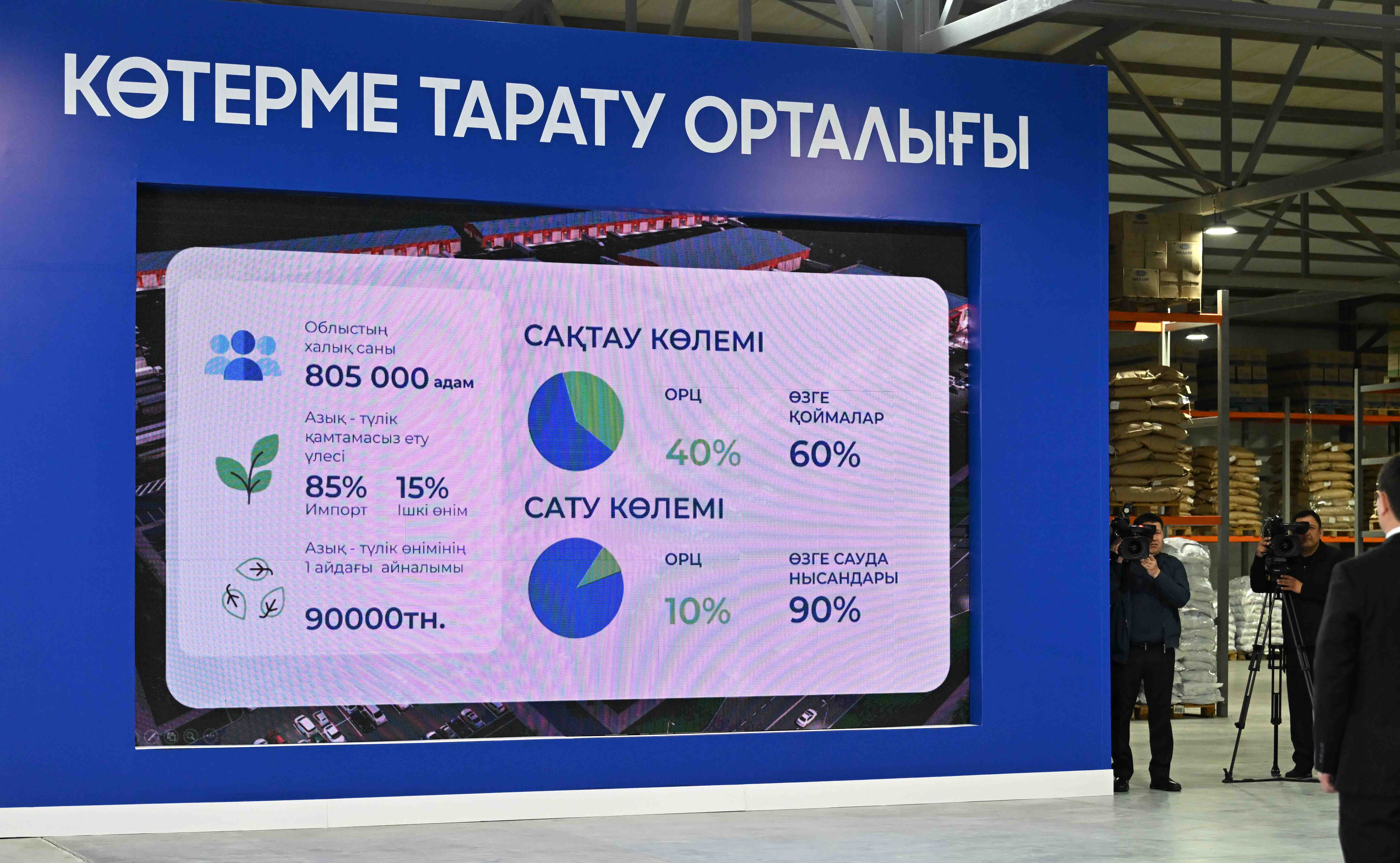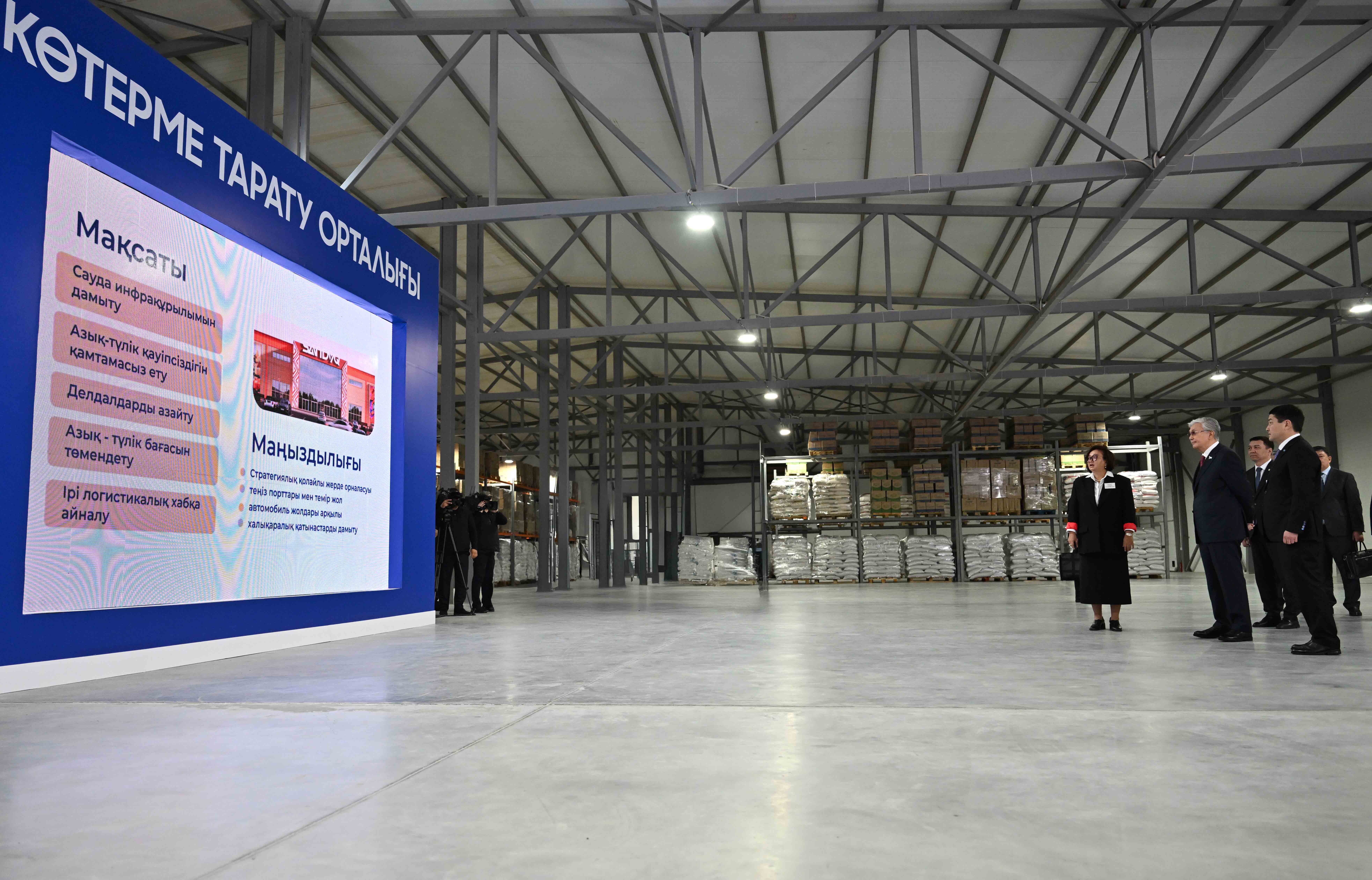 Мемлекет басшысына азық-түлік қауіпсіздігін сақтайтын мұндай нысанның аймақта алғаш рет салынғаны жөнінде баяндалды. Аталған орталық өңірді азық-түлікпен қамтамасыз ету, тұтынушылармен арадағы делдалдарды азайту және өнім бағасын төмендету мақсатында бой көтерген.