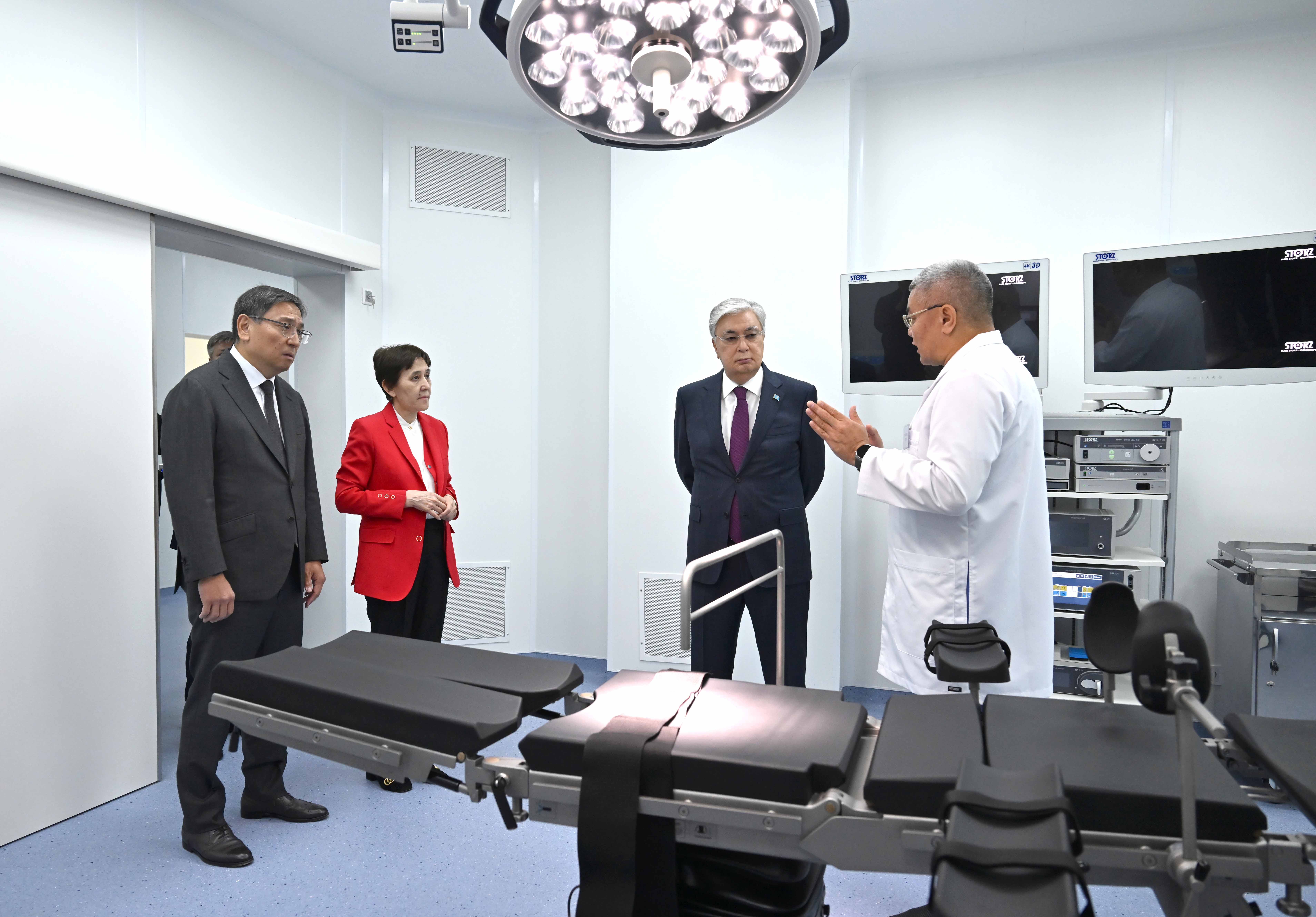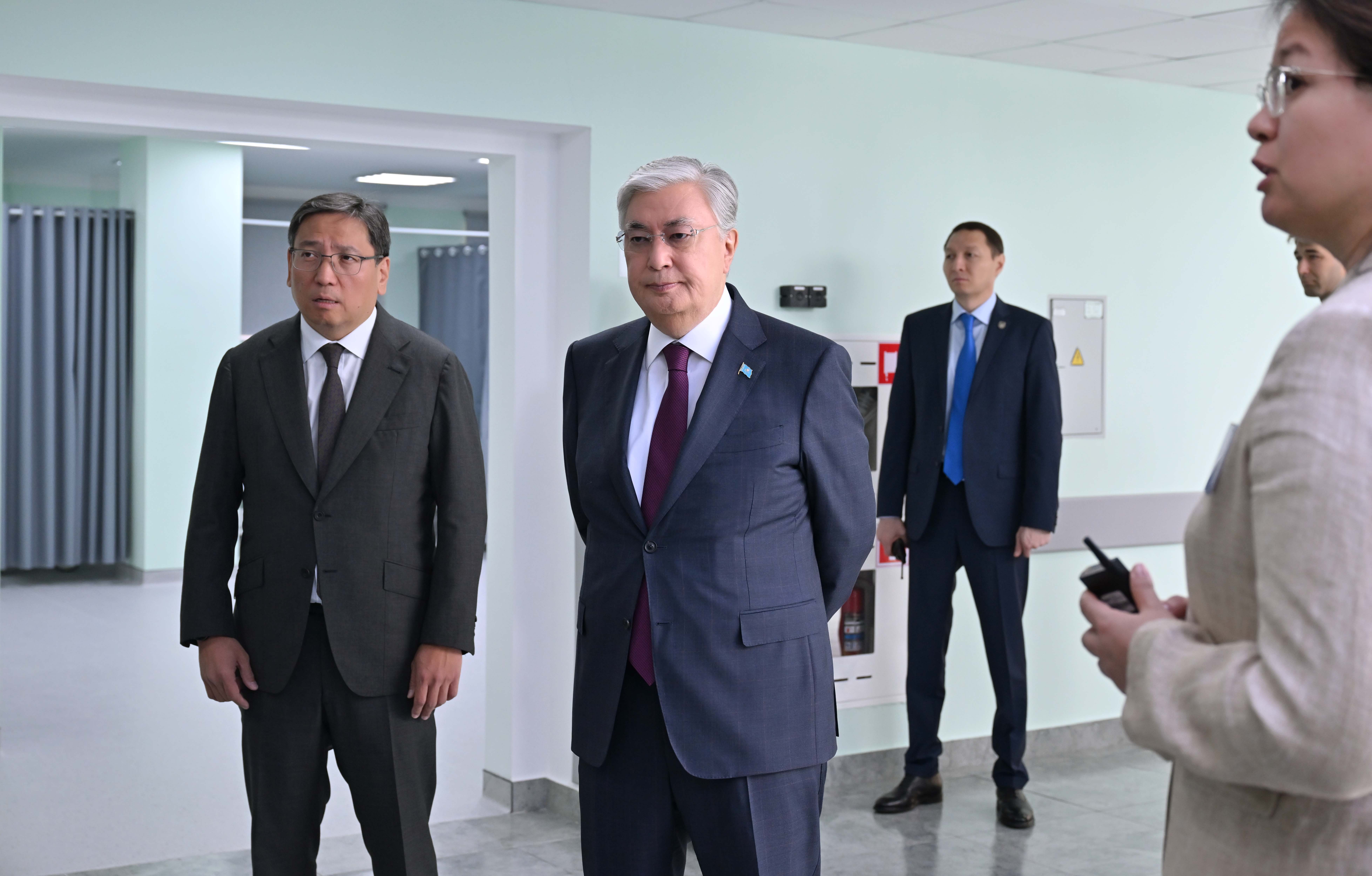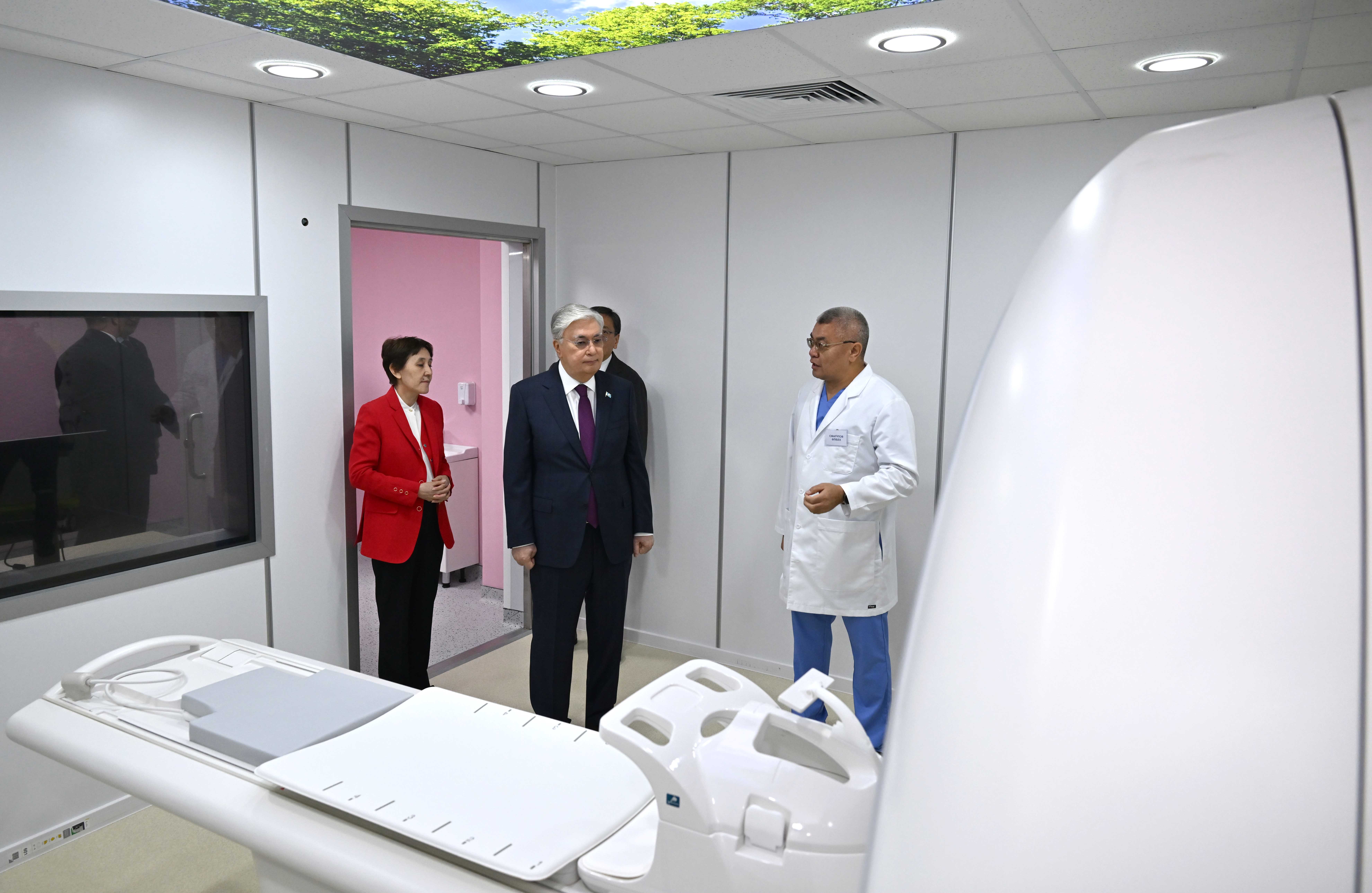 Президентке орталықтың заманауи медициналық аппараттармен жабдықталған диагностика кабинеттері, нәрестелерге арналған қарқынды терапия бөлімшесі және операция бөлмелері таныстырылды.