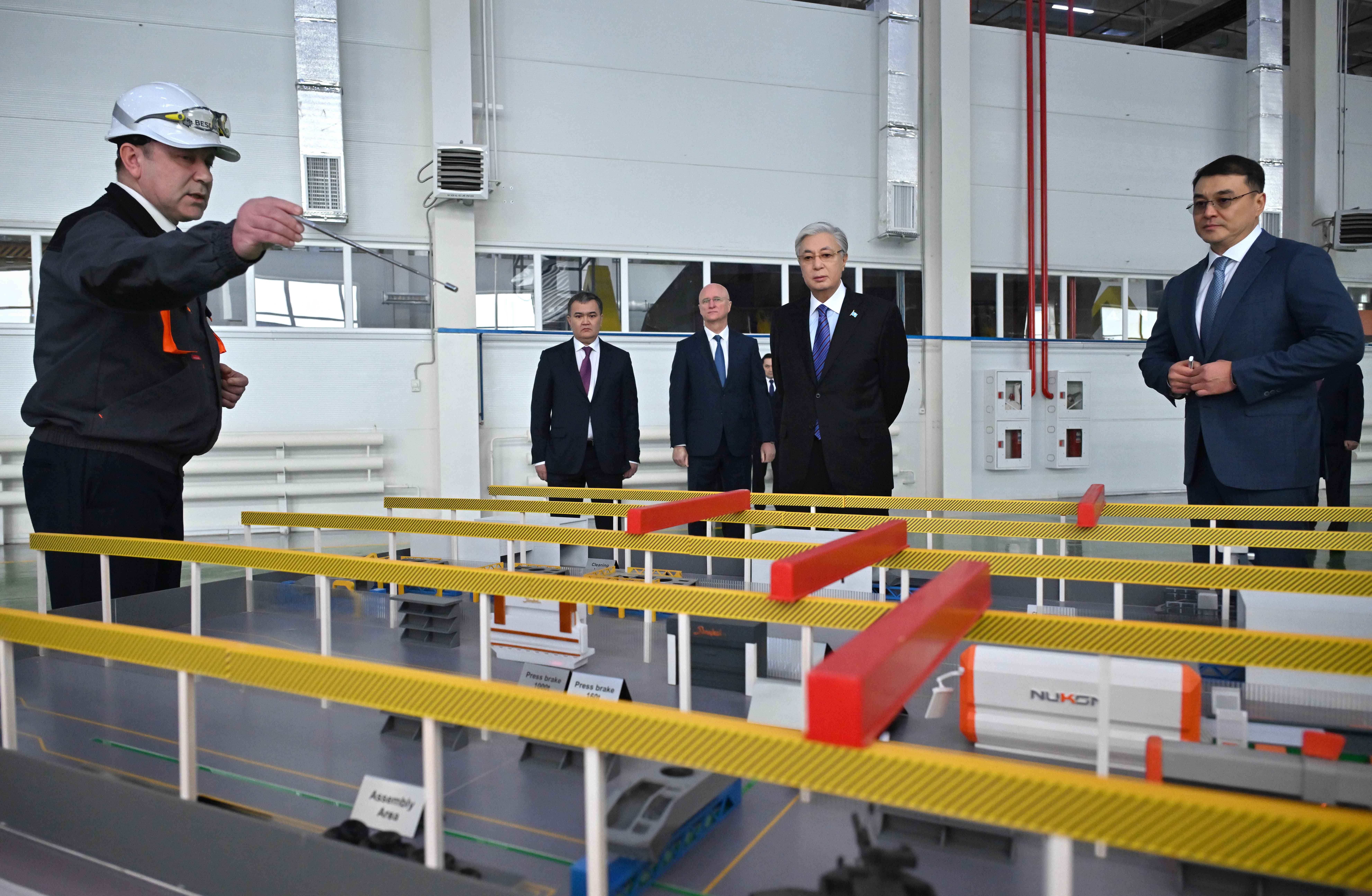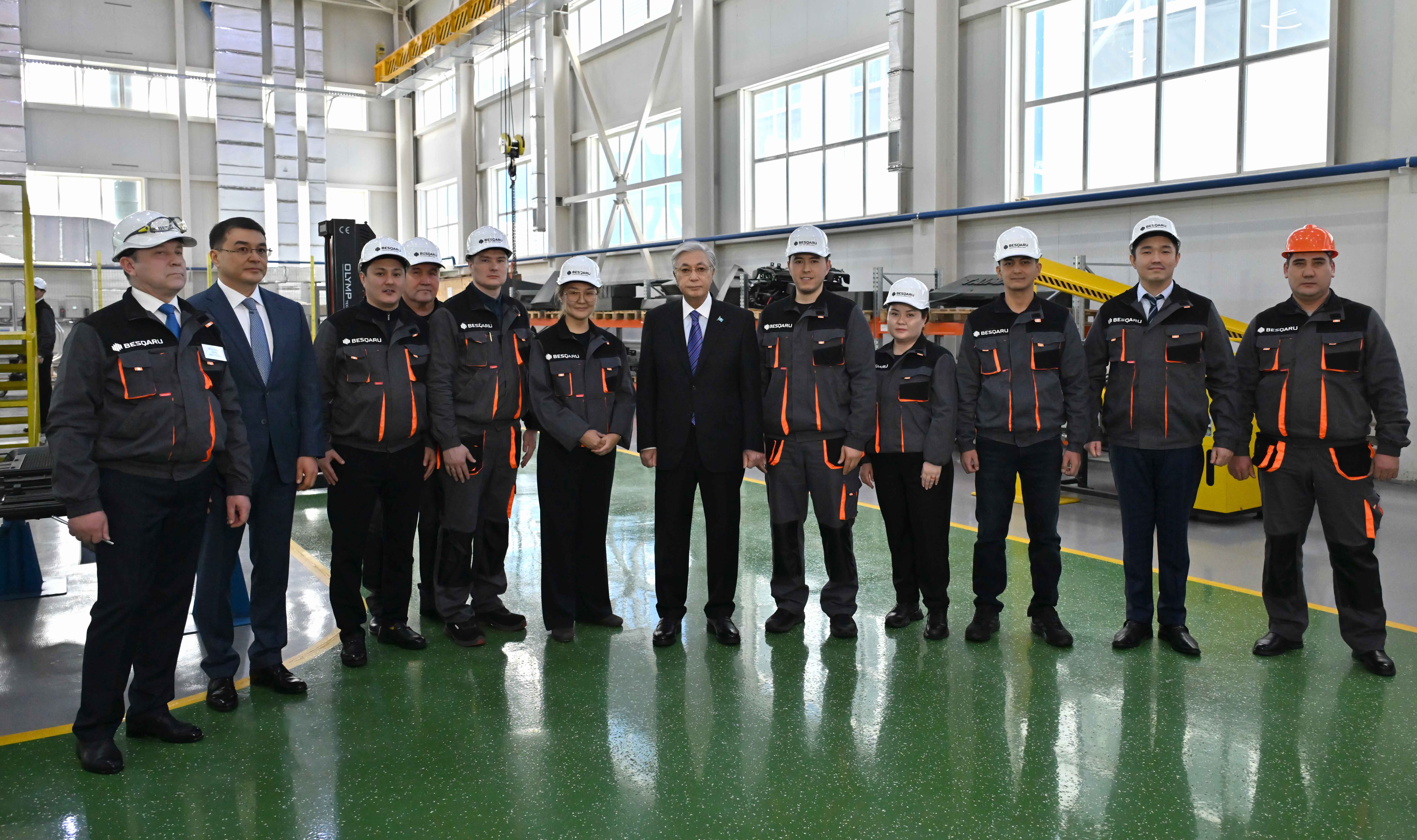 Мемлекет басшысы шынжыр табанды және дөңгелекті бронды машиналар шығаратын, сондай-ақ оларға техникалық қызмет көрсететін Besqaru зауытына барды. Қасым-Жомарт Тоқаев цехтардағы құрастыру жұмыстарын аралап көріп, қорғаныс өнеркәсібі кешеніне қарасты кәсіпорынның технологиялық процестерімен және өндірістік мүмкіндіктерімен танысты. Компания жылына 200 бронды техника құрастырады. Олардың қатарында суды кешіп өте алатын, дөңгелекті Taimas8x8, Aibar 4x4 бронды машиналары, сондай-ақ Tulpar шынжыр табанды техникасы бар.Besqaru компаниясы өз өнімін Қорғаныс министрлігі мен басқа да күштік құрылымдарға арнап шығарады. Өндіріс алаңы биыл ақпан айында іске қосылды. Жалпы құны 13,5 миллиард теңге болатын жоба аясында 134 жұмыс орны ашылды. Мемлекет басшысы зауыт қызметкерлерімен әңгімелесіп, олардың еңбегі өнімді болуына тілектестік білдірді.