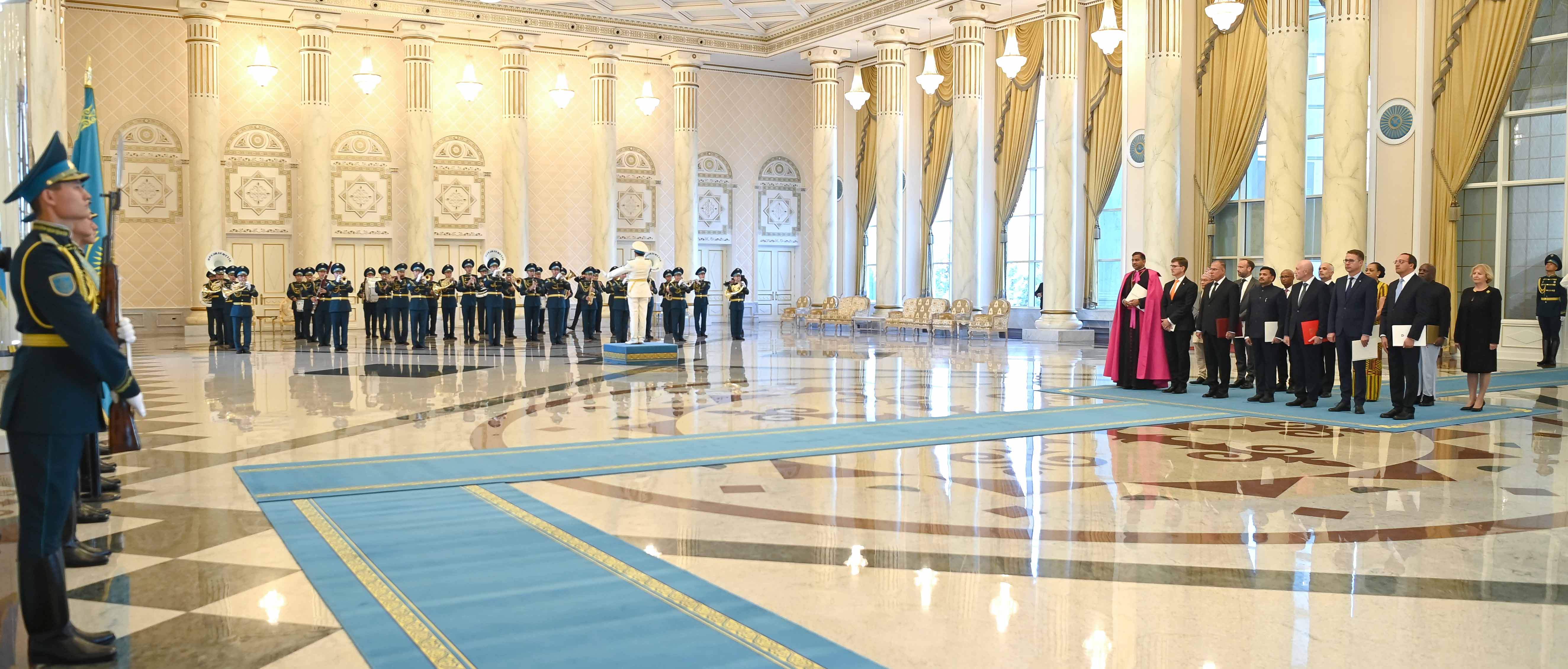 Сенім грамоталарын Швейцария Конфедерациясының елшісі Салман Бал, Литва Республикасының елшісі Эгидиюс Навикас, Чех Республикасының елшісі Павол Шепеляк, Үндістан Республикасының елшісі Нагендра Прасад, Иордания Хашимит Корольдігінің елшісі Хамза Махмуд Юсеф Әл-Омари, Нидерланд Корольдігінің елшісі Николаас Якоб Схермерс, Қасиетті Тақтың Қазақстандағы апостолдық нунциі Джордж Джордж Панамтундил, Словения Республикасының елшісі Дарья Бавдаж Курет, Уганда Республикасының елшісі Мозес Каваалууко Кизиге, Гана Республикасының елшісі Лесли Ача Опоку-Уаре, Шығыс Уругвай Республикасының елшісі Даниель Рубен Кастильос Гомес, Эфиопия Федеративтік Демократиялық Республикасының елшісі Адем Мұхаммед Махмуд, Дания Корольдігінің елшісі Якоб Хеннингсен, Непал Федеративтік Демократиялық Республикасының  елшісі Милан Радж Туладхар тапсырды.