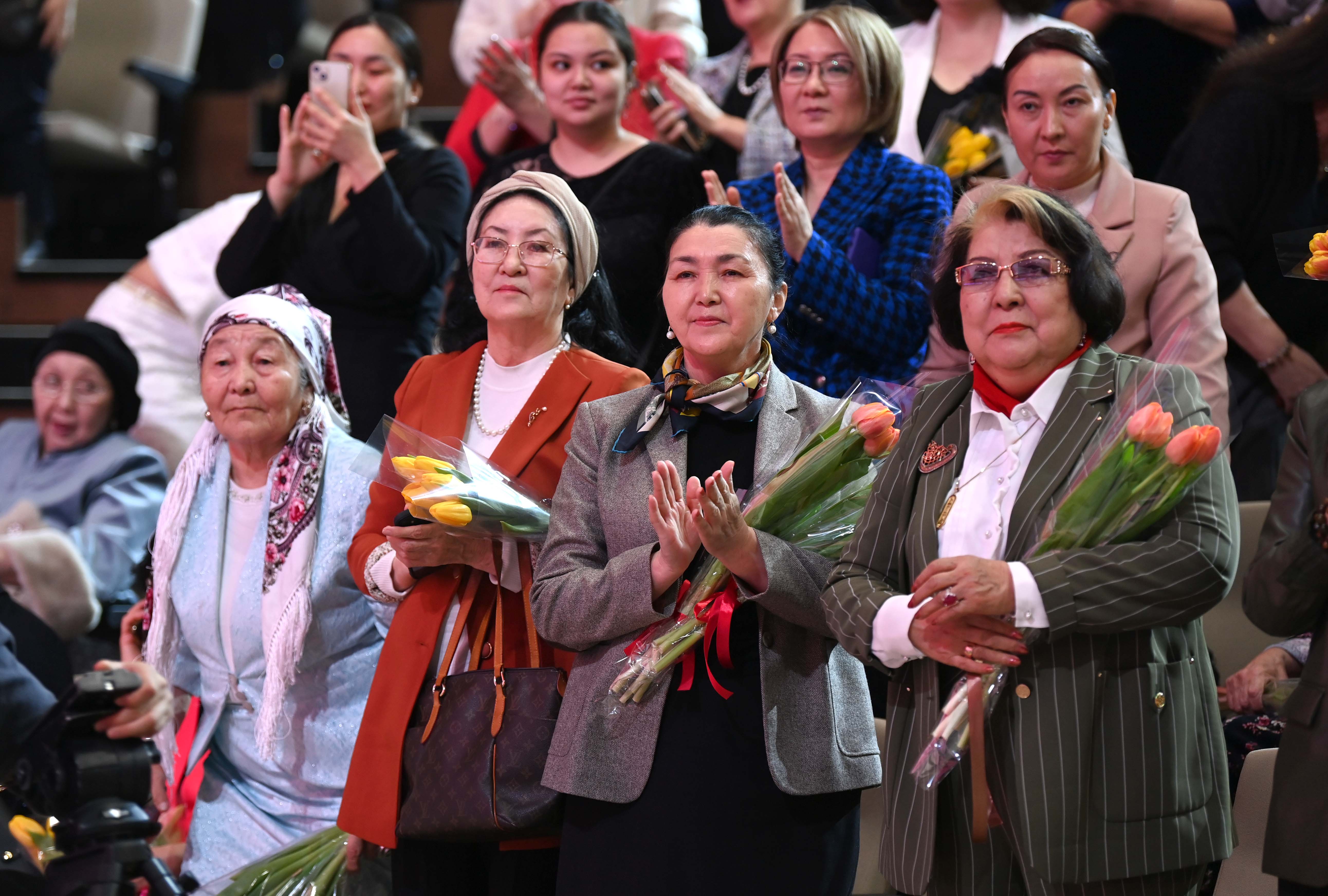 – Қазір қыздарымыз әлемнің ең үздік университеттерінде білім алып жатыр. Жаһандық компанияларда жұмыс істейді. Сан түрлі кәсіпті меңгерген әйелдер қоғамның түрлі саласында табысты еңбек етіп жүр. Олардың арасында мұғалім, дәрігер, мемлекеттік қызметші, тәрбиеші, тігінші және басқа да мамандық иелері бар. Халықаралық жарыстарда көк туымызды биікке көтерген спортшы аруларымыз да аз емес. Қаншама қыз-келіншектер бизнеспен айналысып, мыңдаған адамға жұмыс ұсынып отыр. Мен баршаңызды мақтан етемін! Сіздерге шынайы ризашылығымды білдіремін, – деді Мемлекет басшысы.