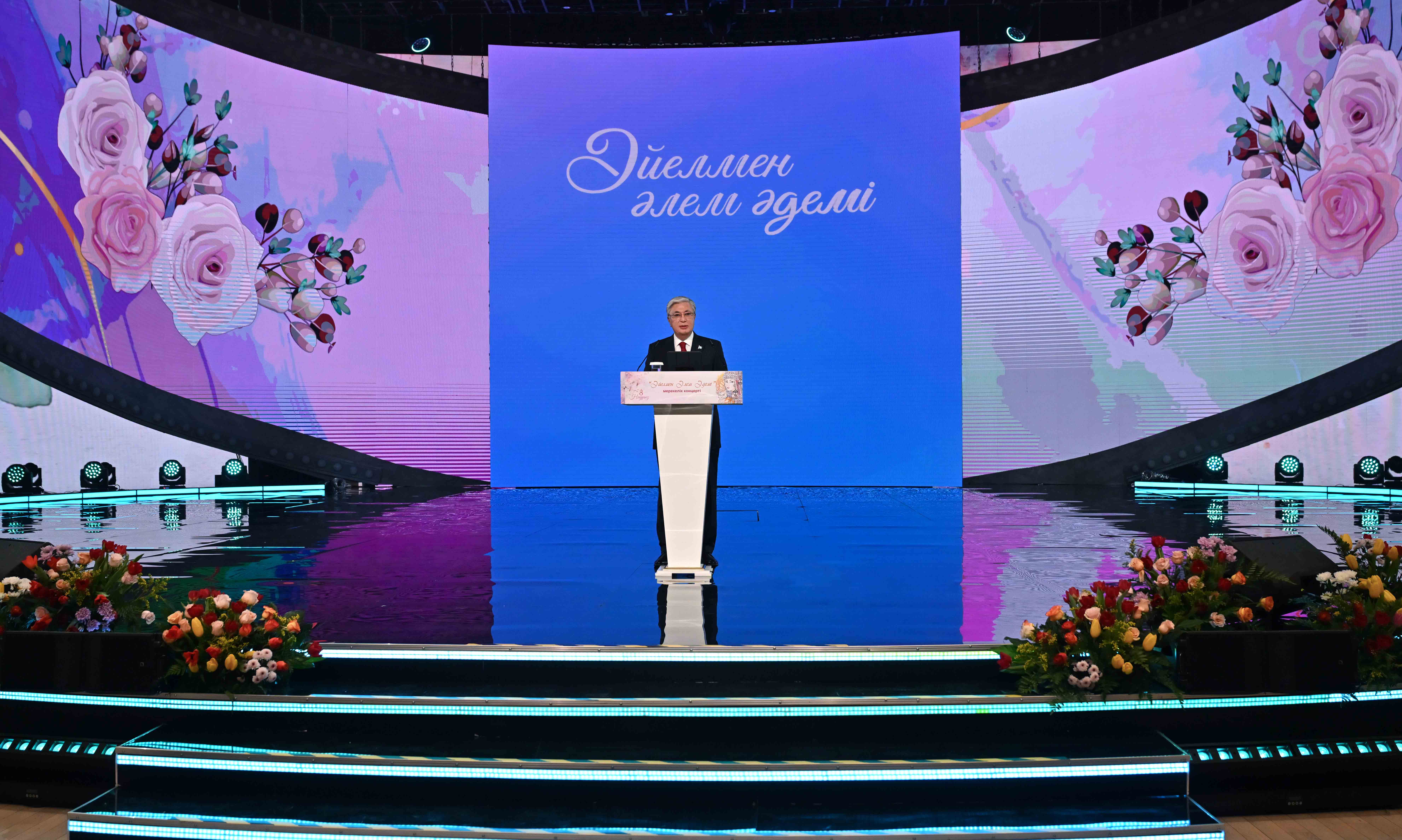 Президент салтанатты жиынға қатысқан әйелдер қауымын мерекемен құттықтап, сөз сөйледі.