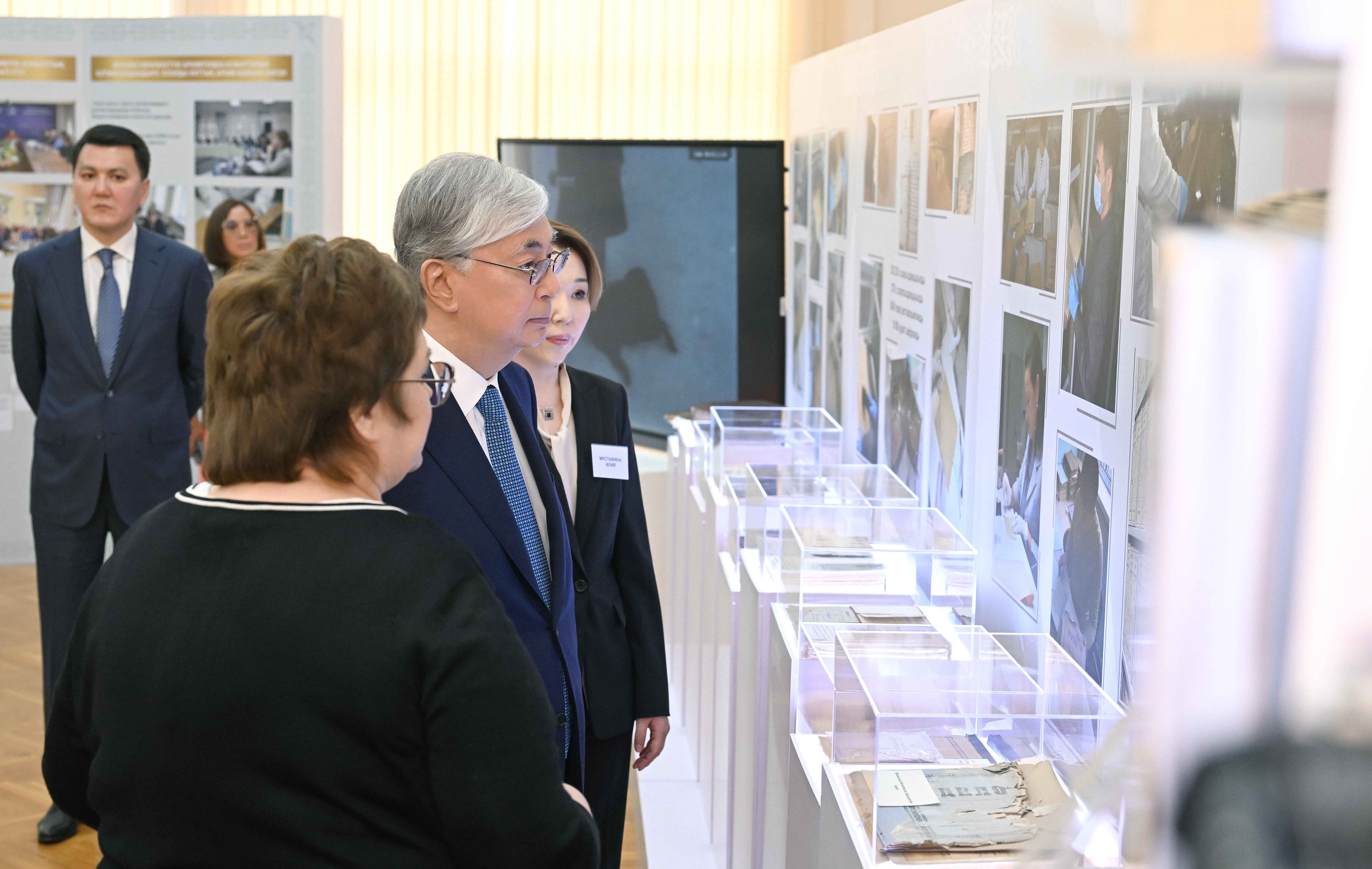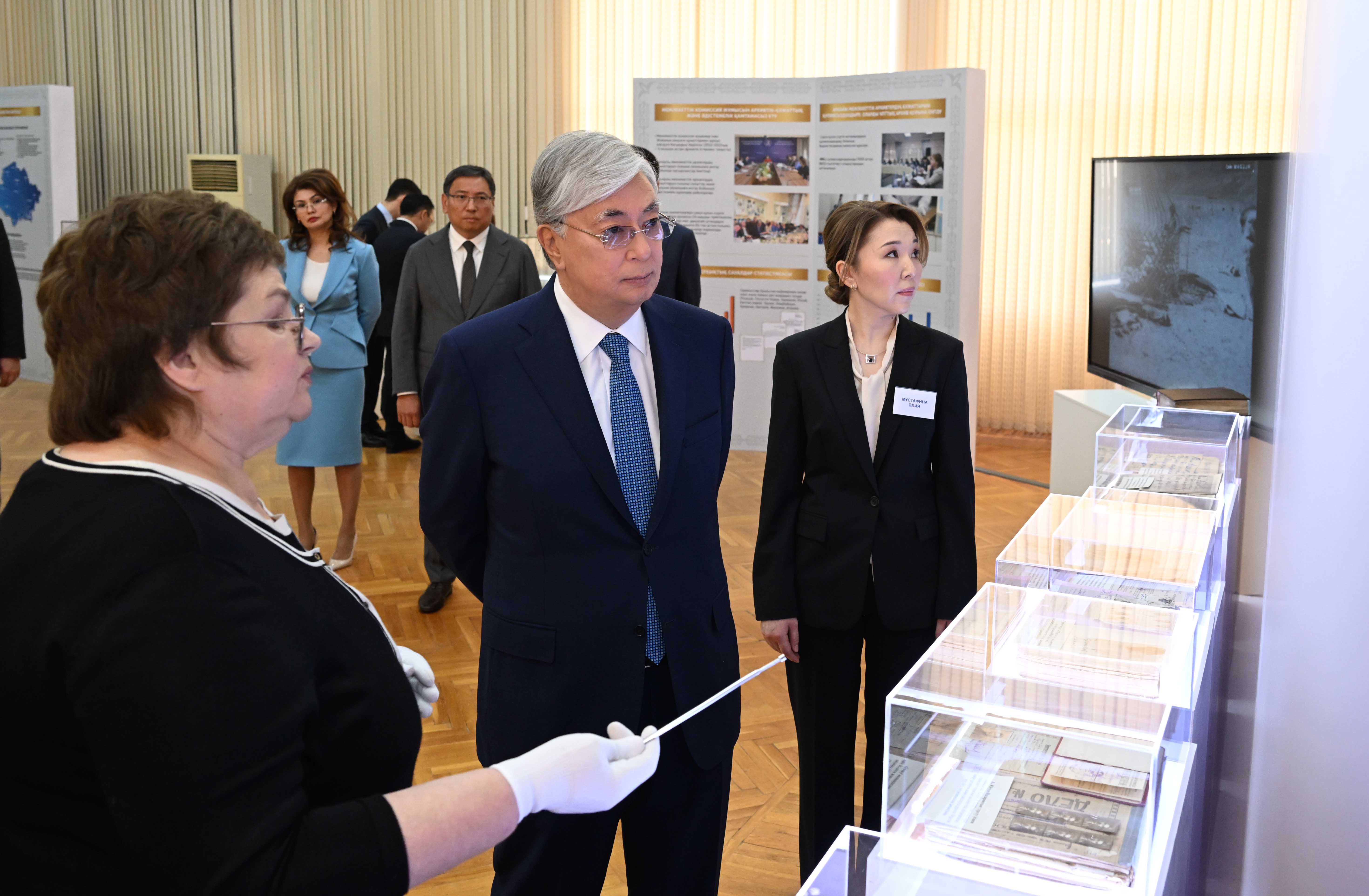 Қасым-Жомарт Тоқаев орталықта құжаттарды сақтау шартымен, мұрағат құжаттарын қалпына келтіру және микрофильмдеу кабинеттерінің жұмысымен танысты. Сонымен қатар Мемлекет басшысына өткен ғасырдағы саяси қуғын-сүргін тарихына қатысты материалдар бойынша жүргізілген жұмыстардың экспозициясы көрсетілді.