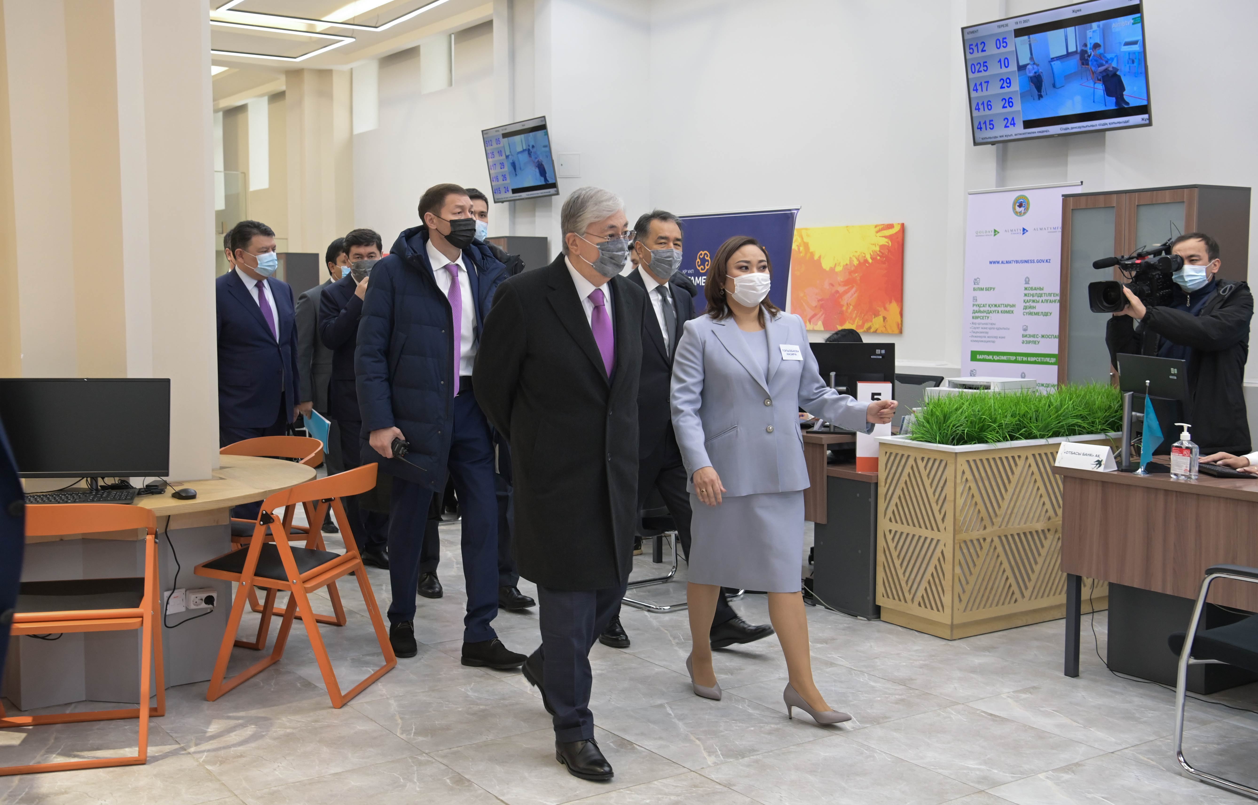 Президент қызмет көрсету залын аралап көріп, орталықтың күнделікті атқарып жатқан жұмыстарымен танысты. Мемлекет басшысына мекеменің республика бойынша әзірге жалғыз әлеуметтік орын екені және осы тәжірибені ел көлемінде қолданысқа енгізу қарастырылып жатқаны жөнінде мәлімет берілді.