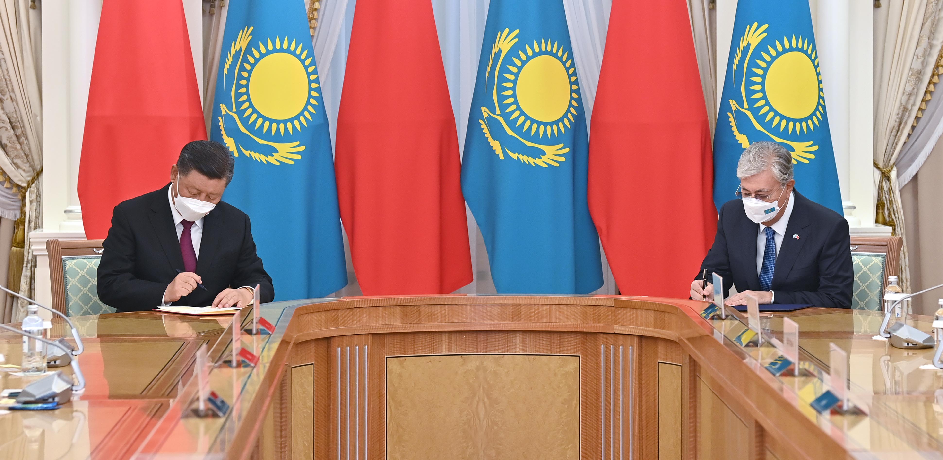 Келіссөздерден кейін екі мемлекеттің басшылары Қазақстан Республикасы мен Қытай Халық Республикасы арасындағы дипломатиялық қатынастардың орнатылғанына 30 жыл толуына орай бірлескен мәлімдемеге қол қойды.