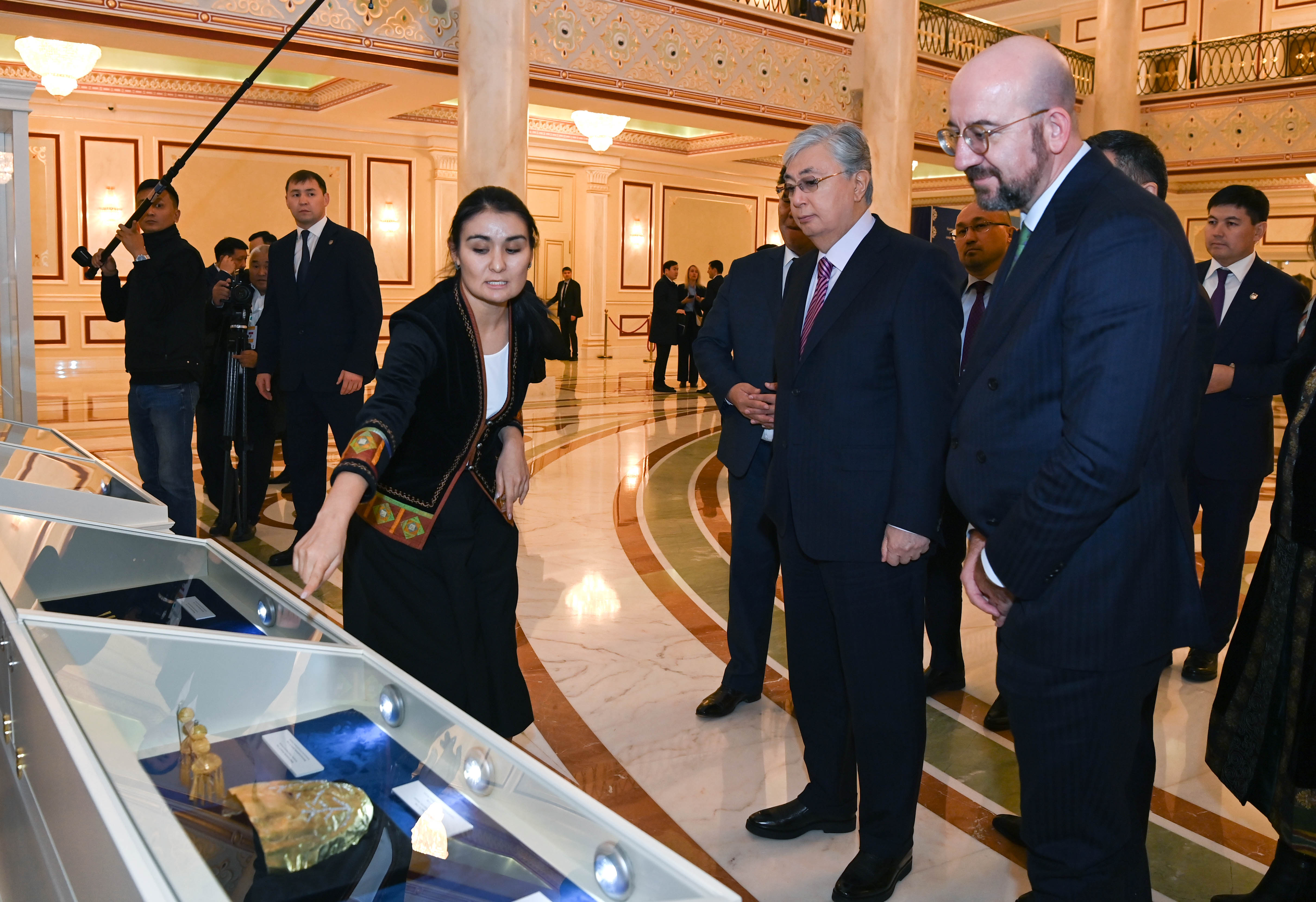 Мемлекет басшысы Қасым-Жомарт Тоқаев Қырғызстан Президенті Садыр Жапаровпен және Еуропалық Кеңес Президенті Шарль Мишельмен бірге Қырғызстанның Қазақстандағы мәдениет күндерінің ресми ашылу шарасына қатысты.
