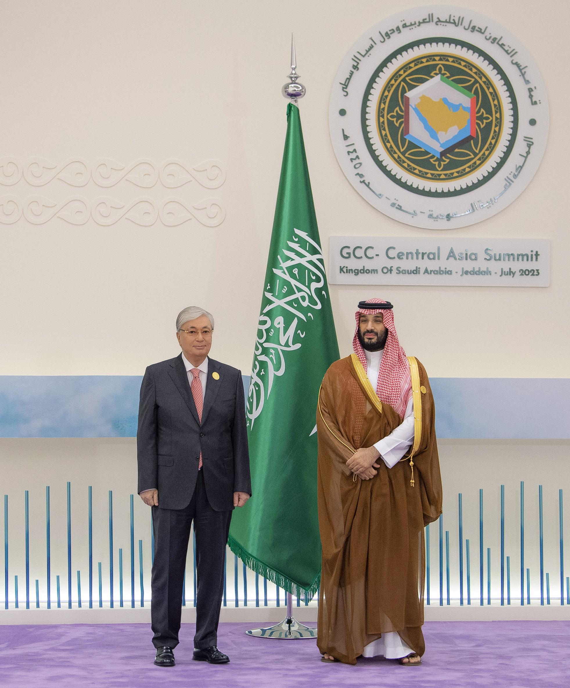 Сонымен қатар «Орталық Азия + Шығанақтағы араб мемлекеттерінің ынтымақтастық кеңесінің» бірінші саммитіне Сауд Арабиясының Тақ мұрагері, Премьер-министрі Мұхаммед бен Салман бен Әбделазиз Әл Сауд, Бахрейн Королінің гуманитарлық жұмыс және жастар ісі жөніндегі өкілі, Ханзада шейх Насер бен Хамад Әл Халифа, Қатар Әмірі шейх Тәмим бен Хамад Әл Тәни, Кувейттің Тақ мұрагері шейх Мешаль әл-Ахмед әл-Джабер ас-Сабах, БАӘ Вице-президенті, Премьер-министрі, Дубай Әмірлігінің Билеушісі шейх Мұхаммед бен Рашид Әл Мактум, Оман Сұлтанаты Премьер-министрінің орынбасары, Ханзада Асад бен Тариқ Әл Саид, Қырғызстан Президенті Садыр Жапаров, Тәжікстан Президенті Эмомали Рахмон, Түрікменстан Президенті Сердар Бердімұхамедов, Өзбекстан Президенті Шавкат Мирзиёев, Шығанақтағы араб мемлекеттері ынтымақтастық кеңесінің бас хатшысы Жассем Мұхаммед әл-Будауи қатысты.